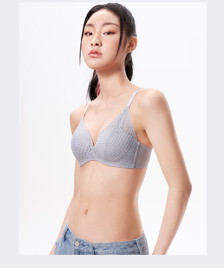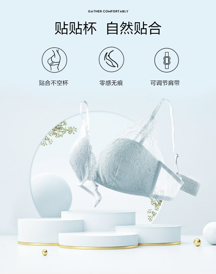 芬狄诗(fandecie)【贴贴杯】内衣女小胸不空杯微聚拢无钢圈舒适收副乳文胸FBW0042 经典款-灰绿色GYG 75B