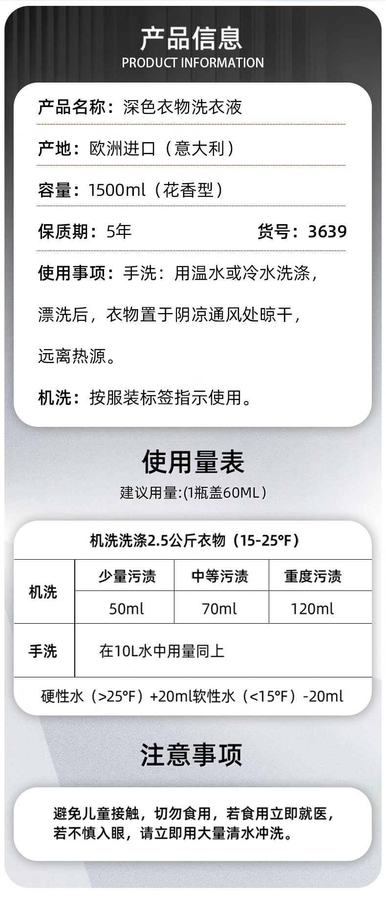 大公鸡管家(CHANTE CLAIR)深色衣物专用 黑色护色洗衣液 深色护色洗衣液1500ml