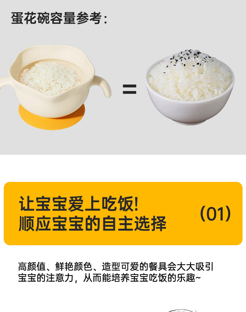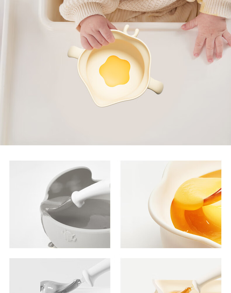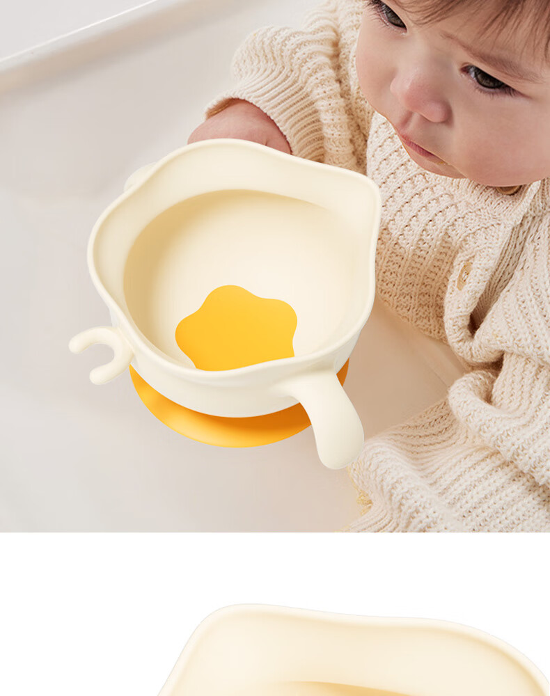 COOKSS婴儿蛋花辅食碗新生儿喂水喂奶训练吃饭硅胶吸盘碗宝宝餐盘
