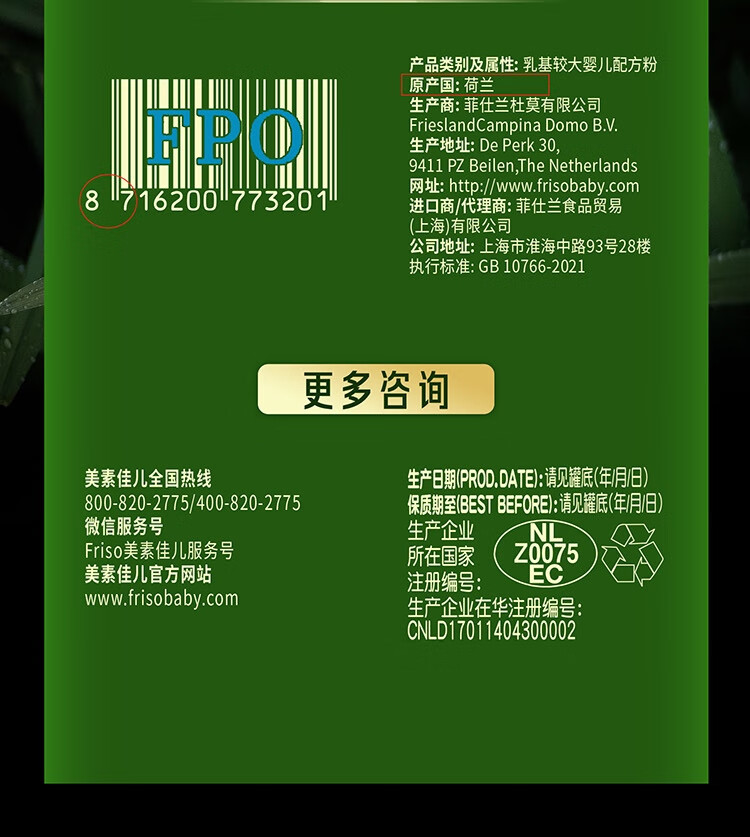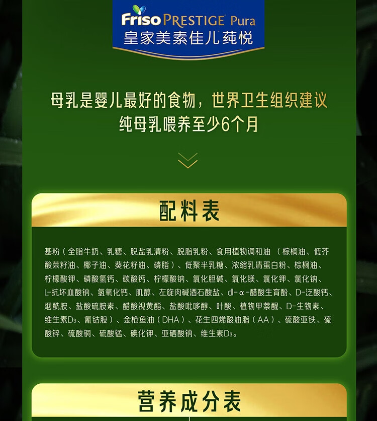 美素佳儿(Friso)皇家莼悦较大婴儿配方奶粉 2段(6-12个月)800克