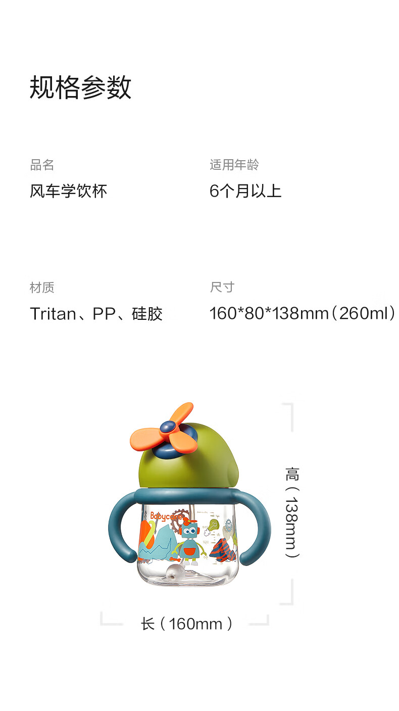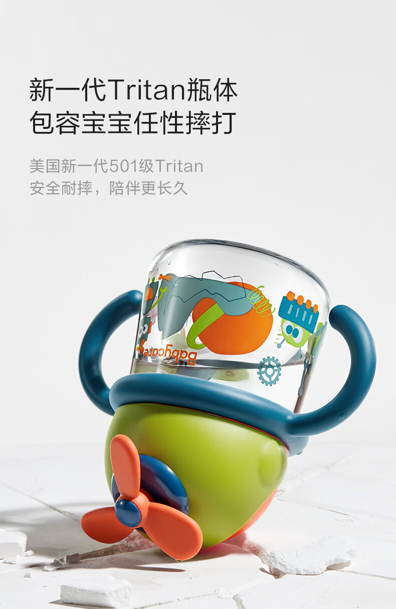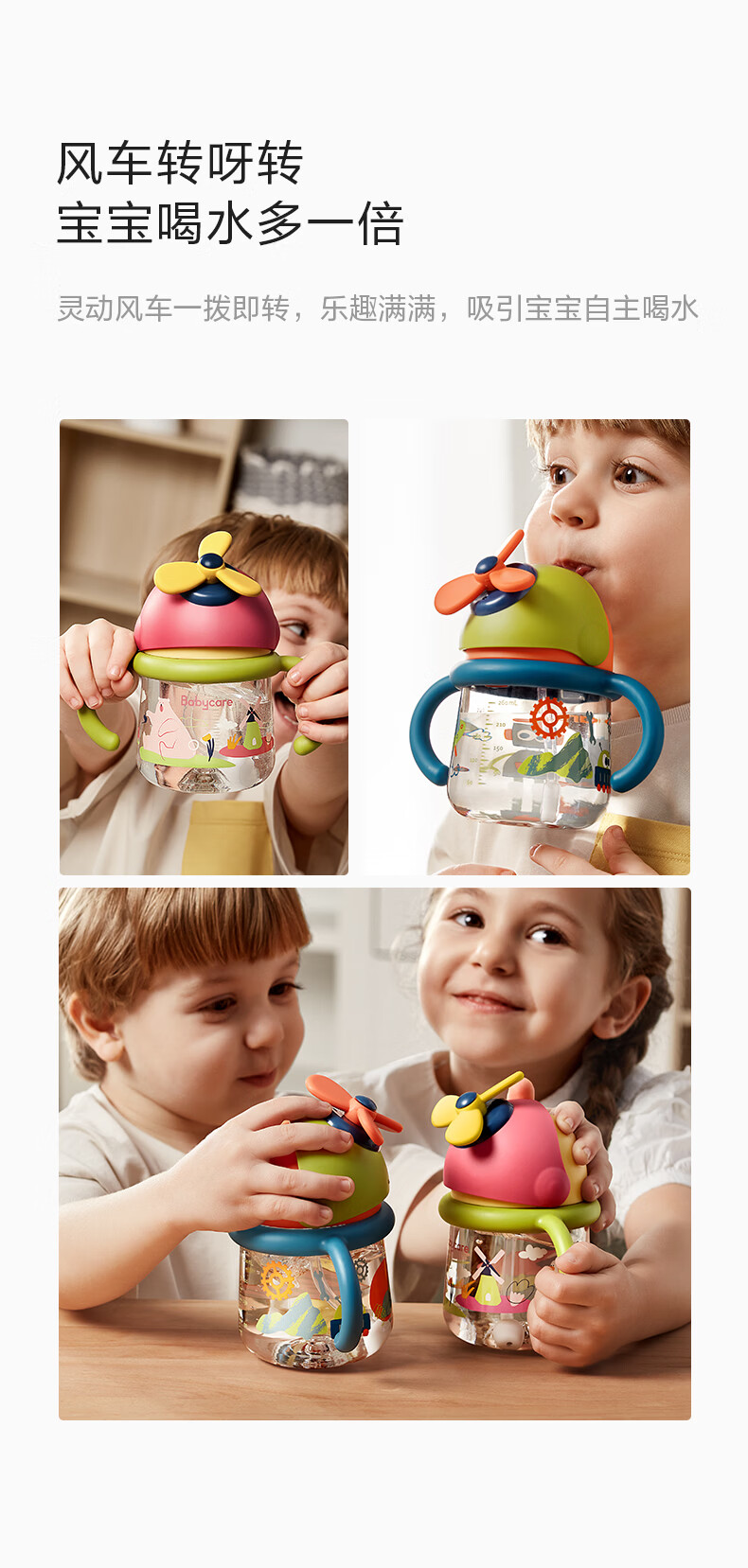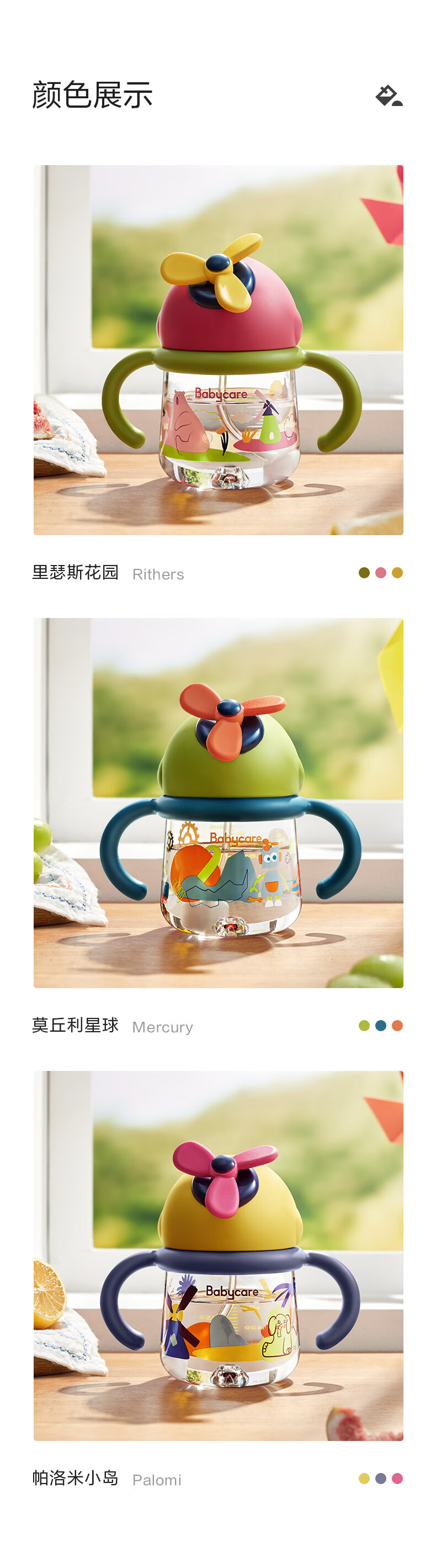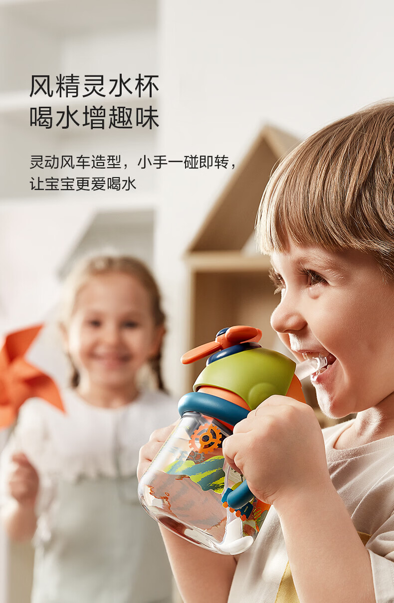 babycare风精灵旋转风车杯 360°安全重力球 学生儿童水杯 【莫丘利星球】260ml