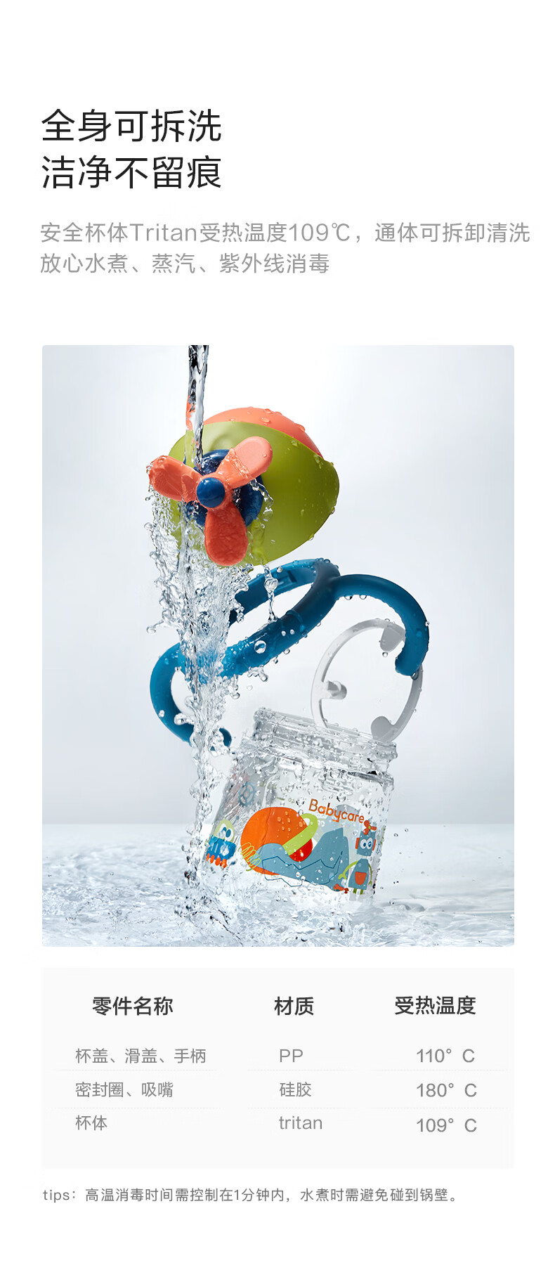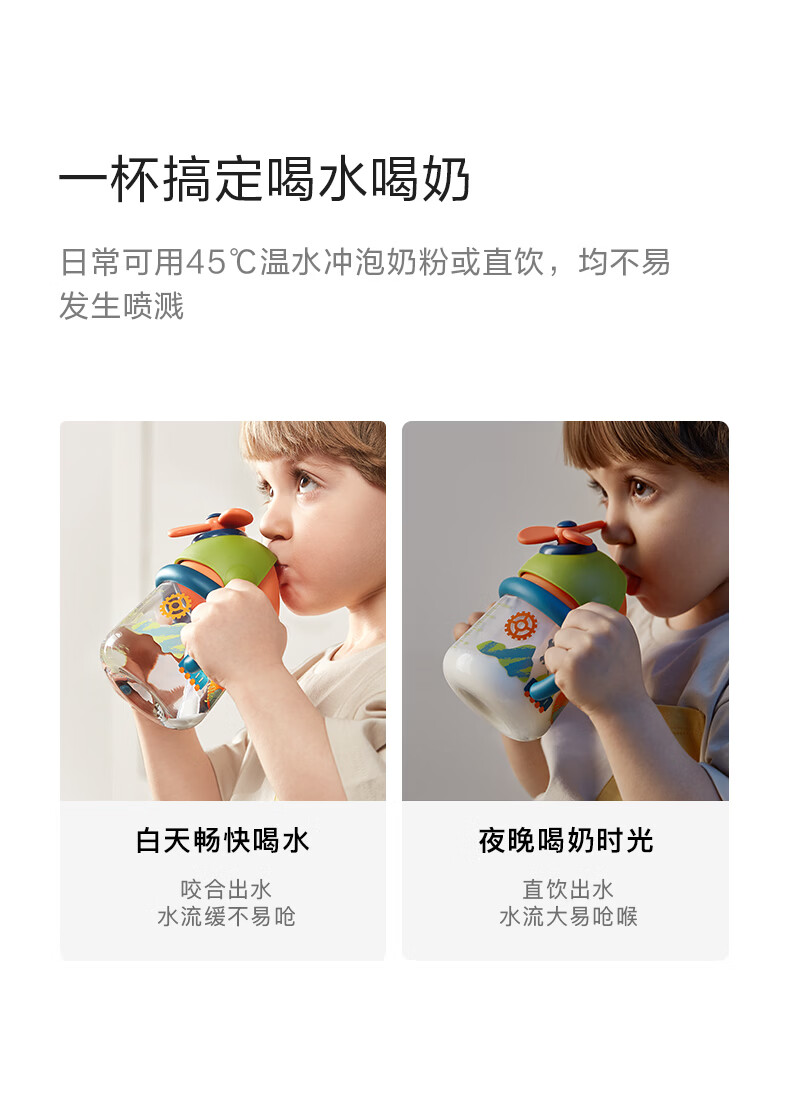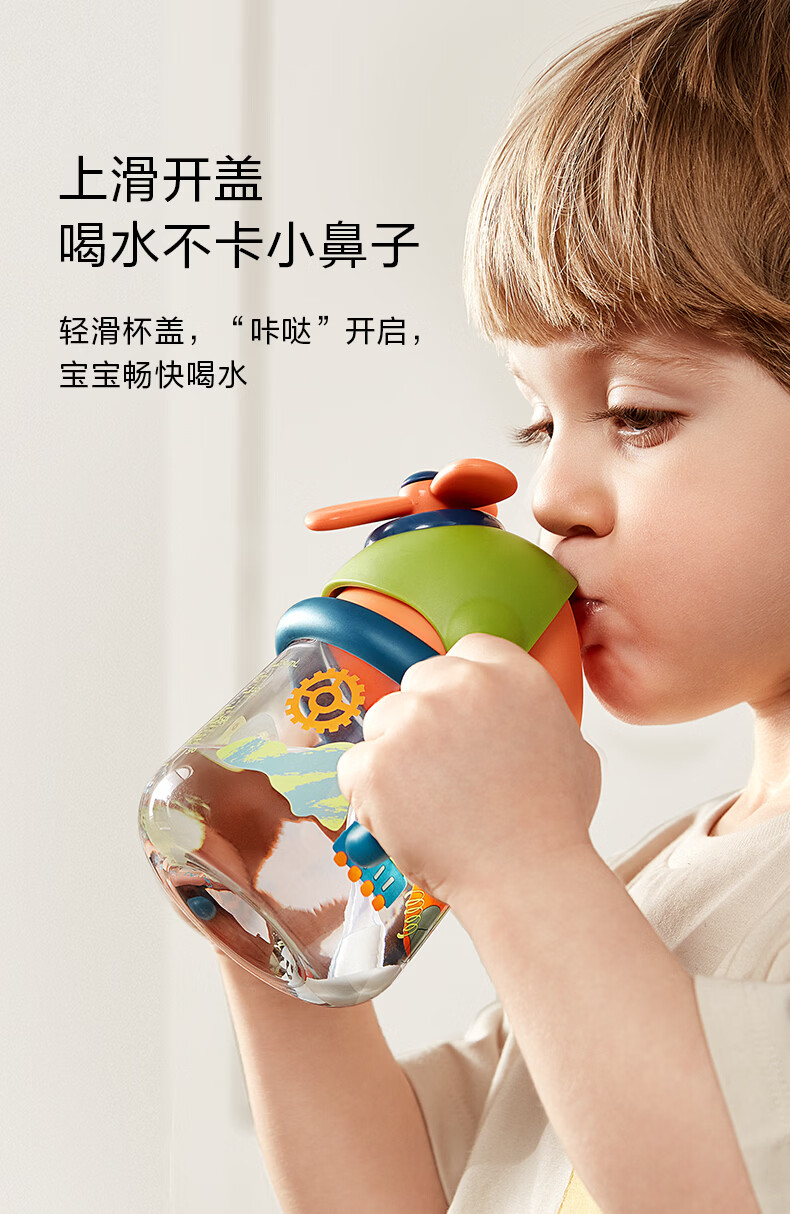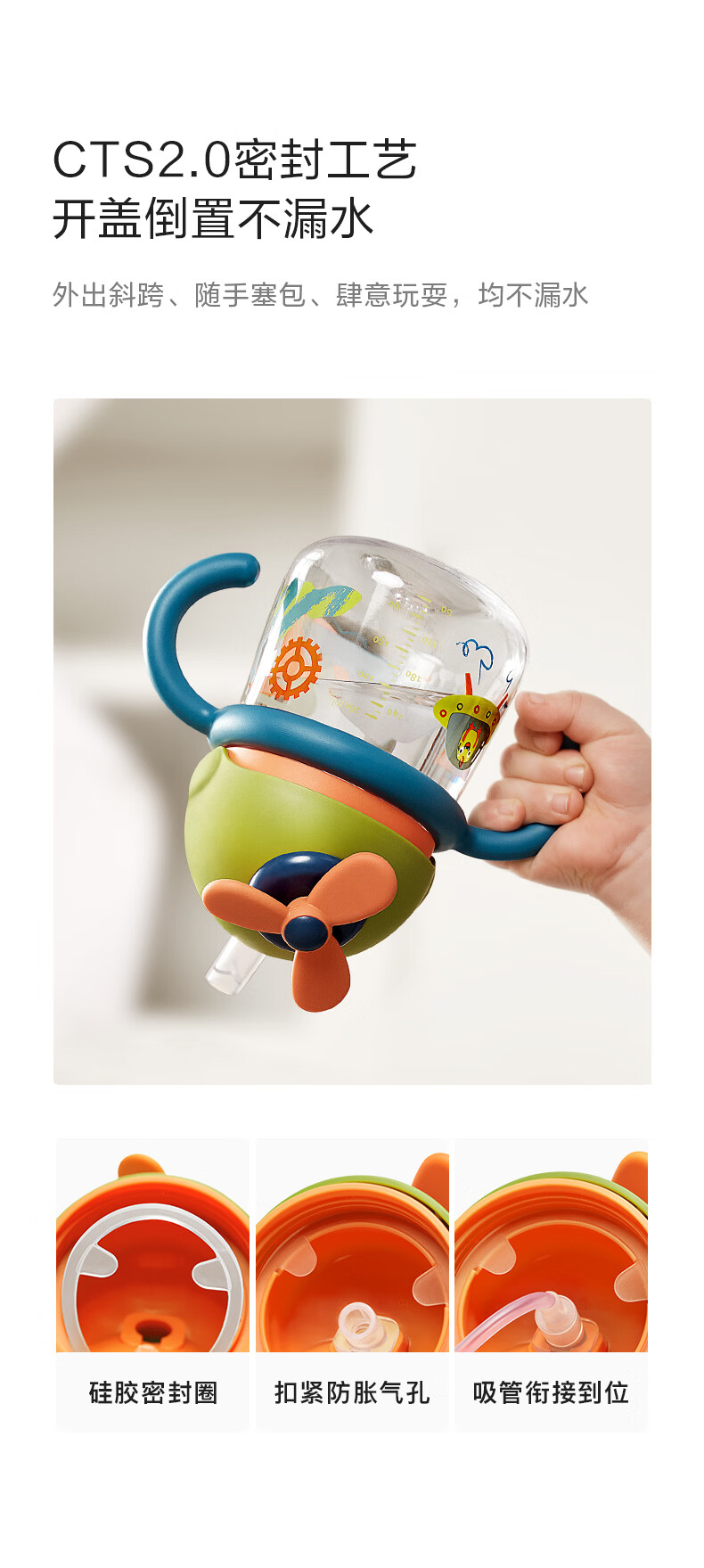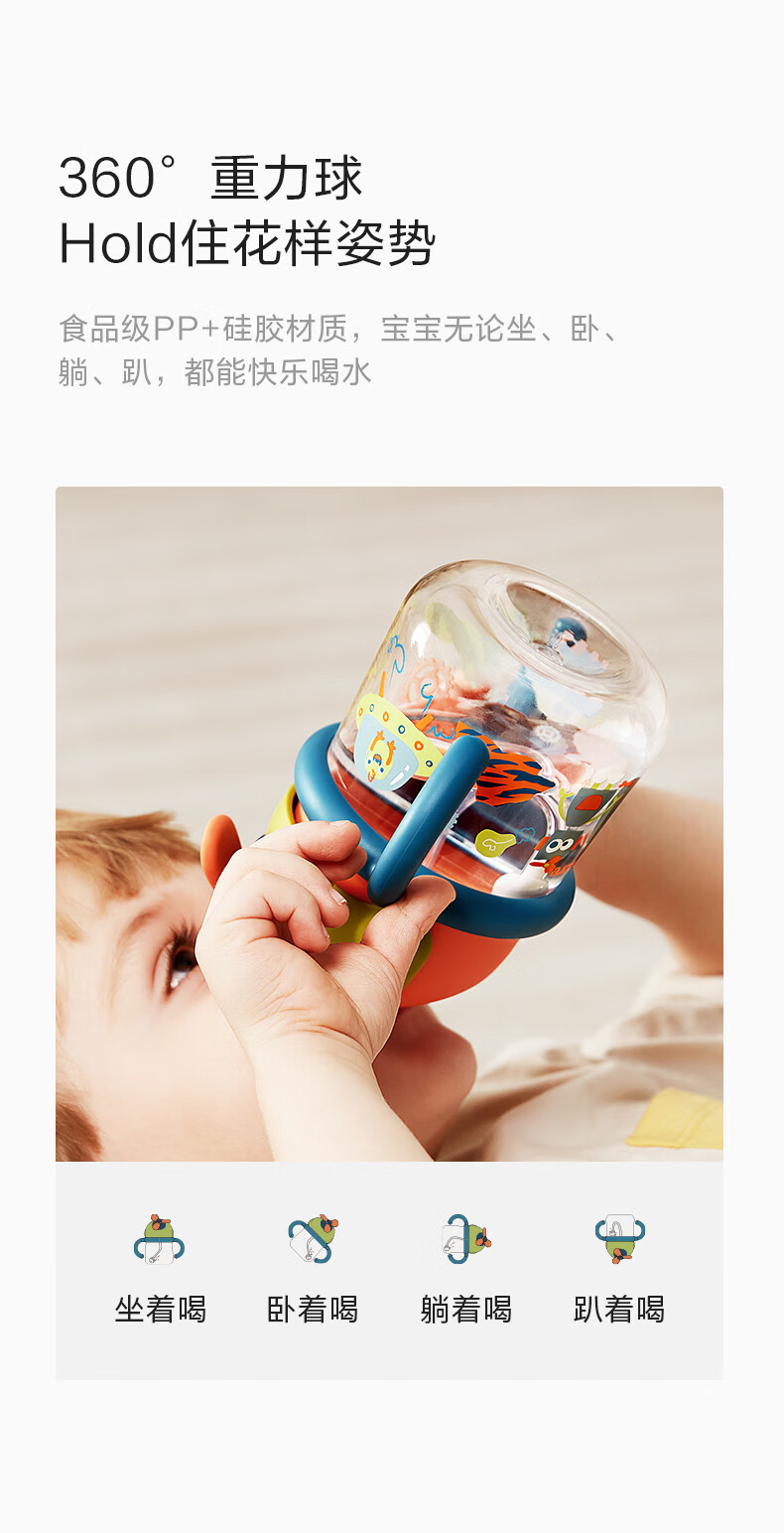 babycare风精灵旋转风车杯 360°安全重力球 学生儿童水杯 【莫丘利星球】260ml