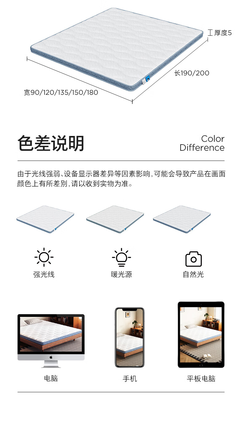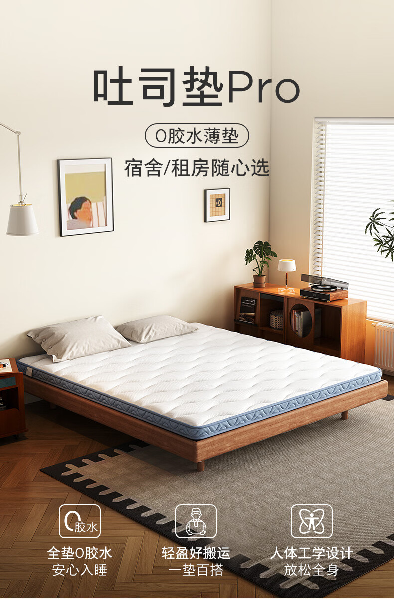 顾家家居乳胶床垫家用宿舍0胶 卧室榻榻米单人 薄款软床垫子5051/5051B 自在垫H5【0胶】 软硬适中1.2mX1.9m