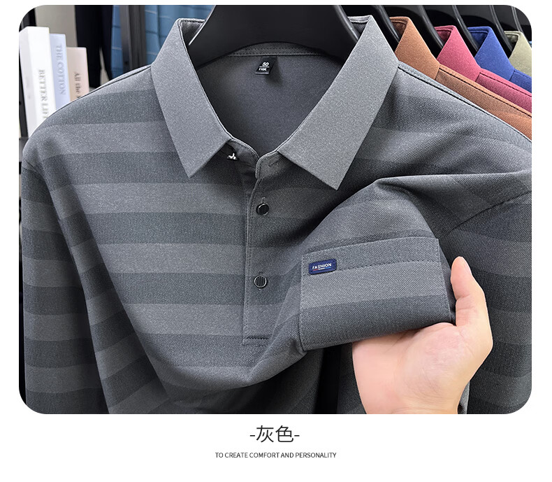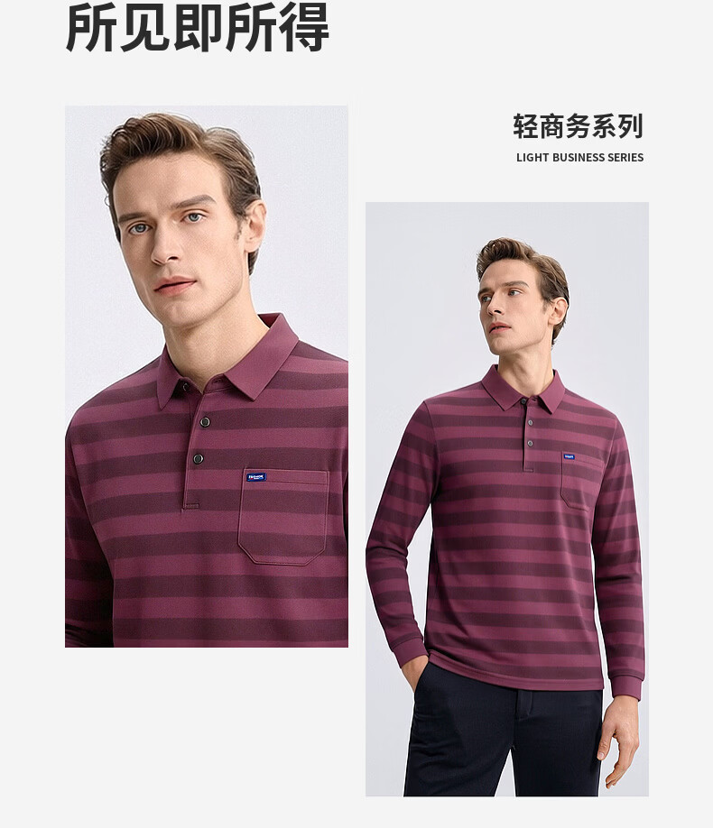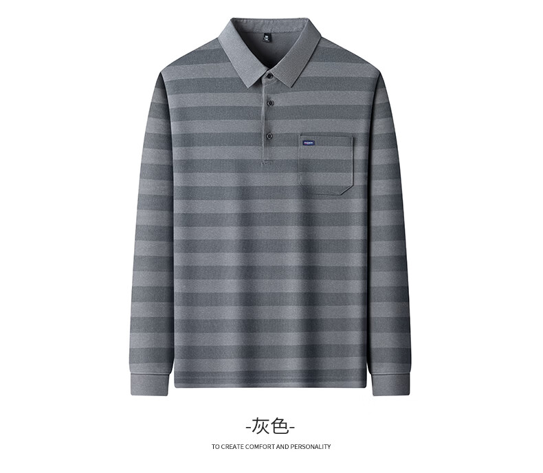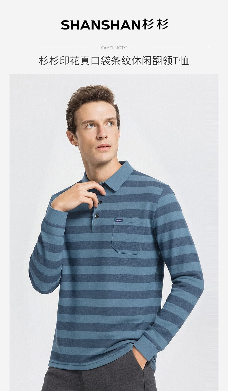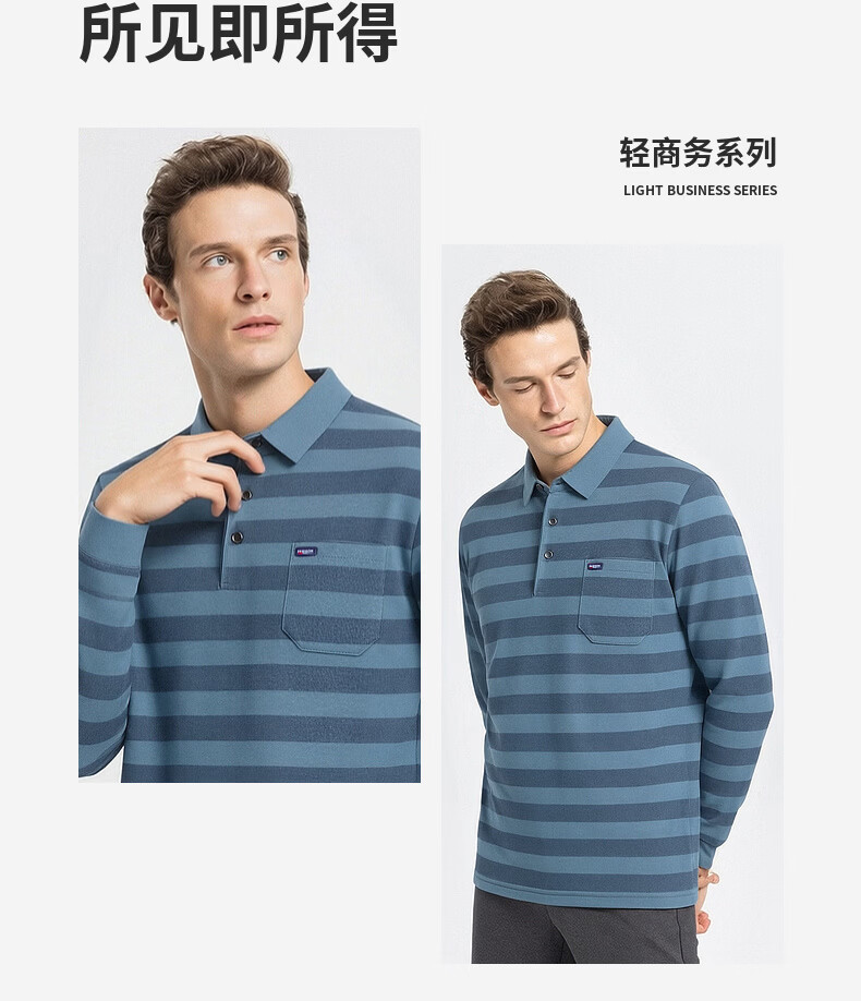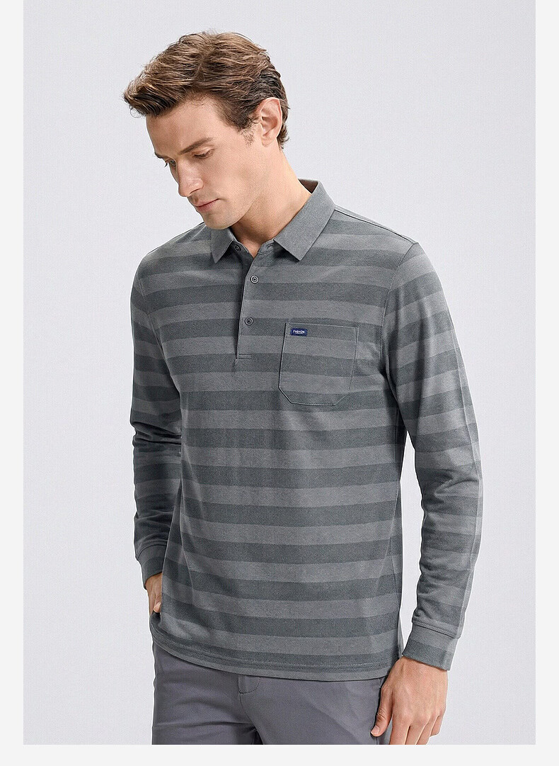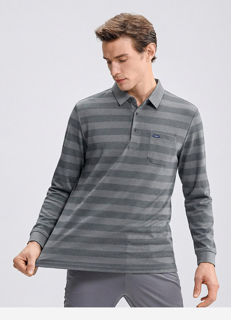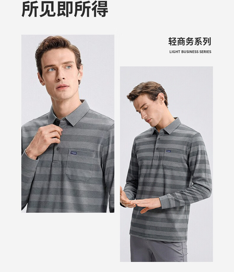 SHANSHAN杉杉【锦氨弹力撞色粗条纹】长袖t恤男翻领POLO衫打底通勤春秋 灰色 M /170