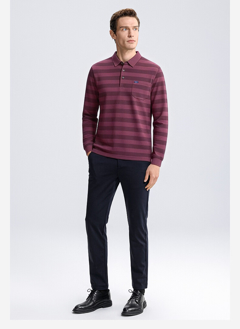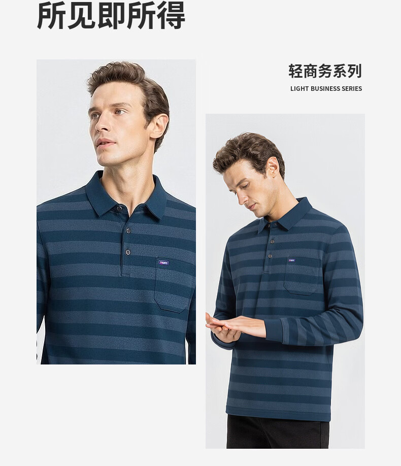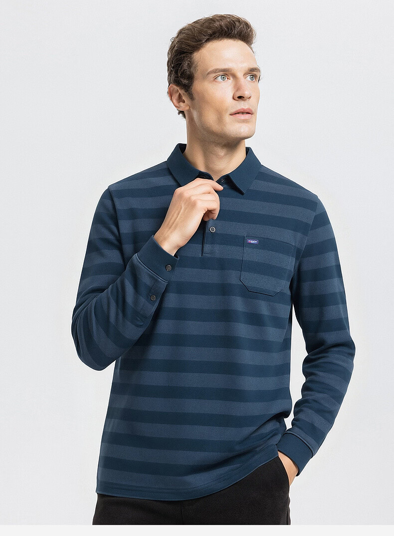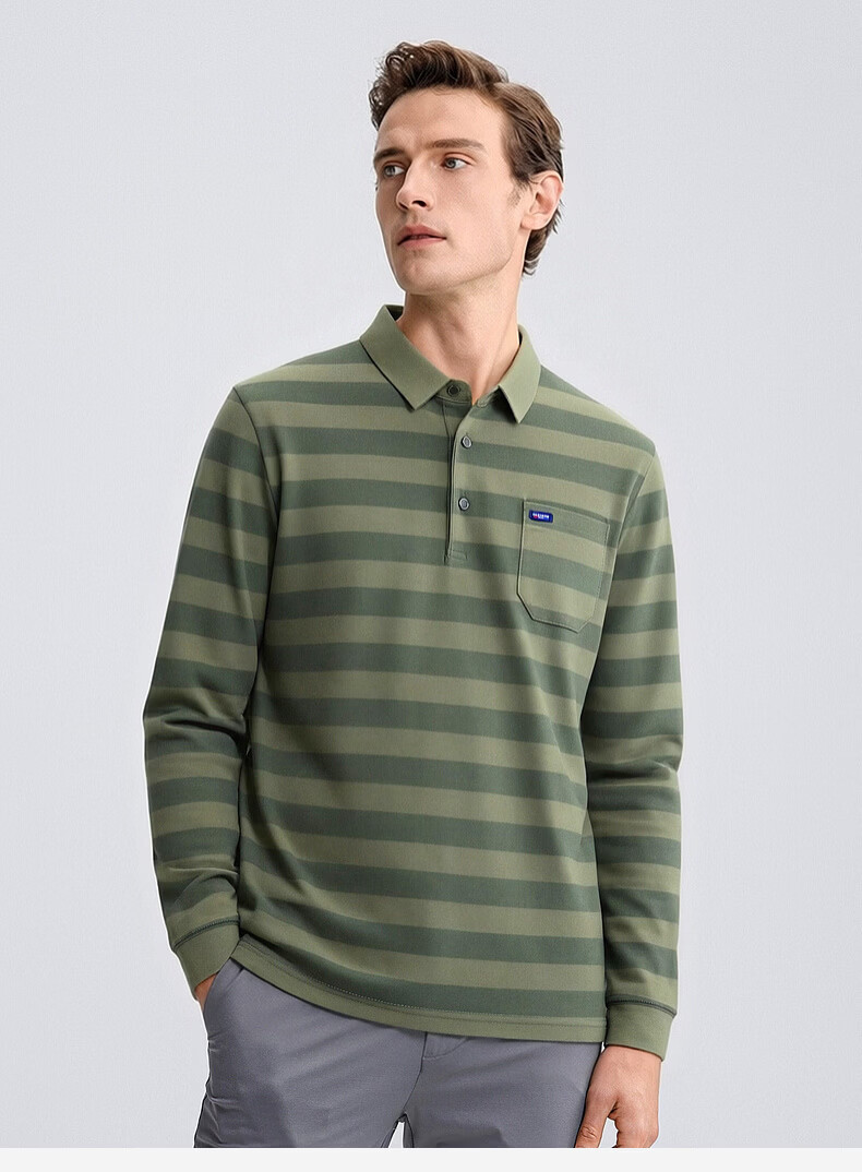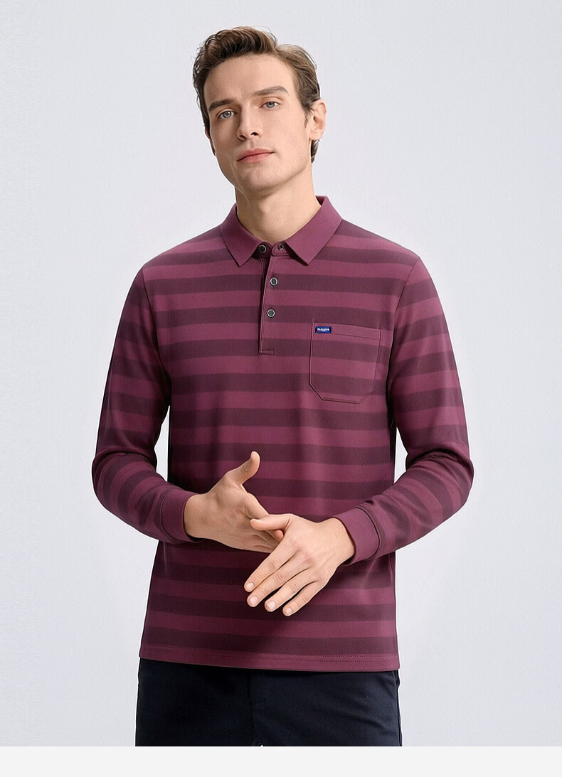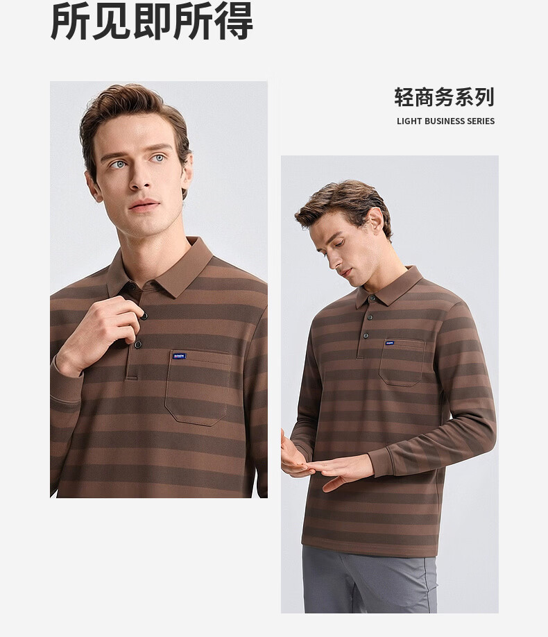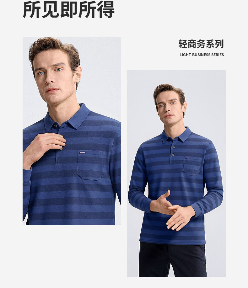 SHANSHAN杉杉【锦氨弹力撞色粗条纹】长袖t恤男翻领POLO衫打底通勤春秋 灰色 M /170