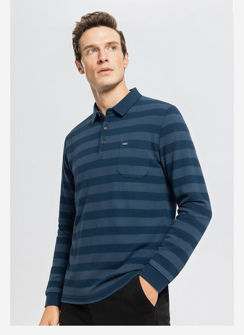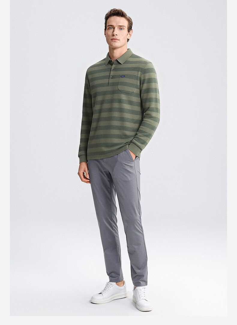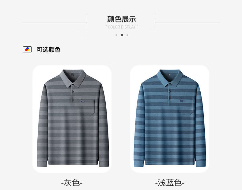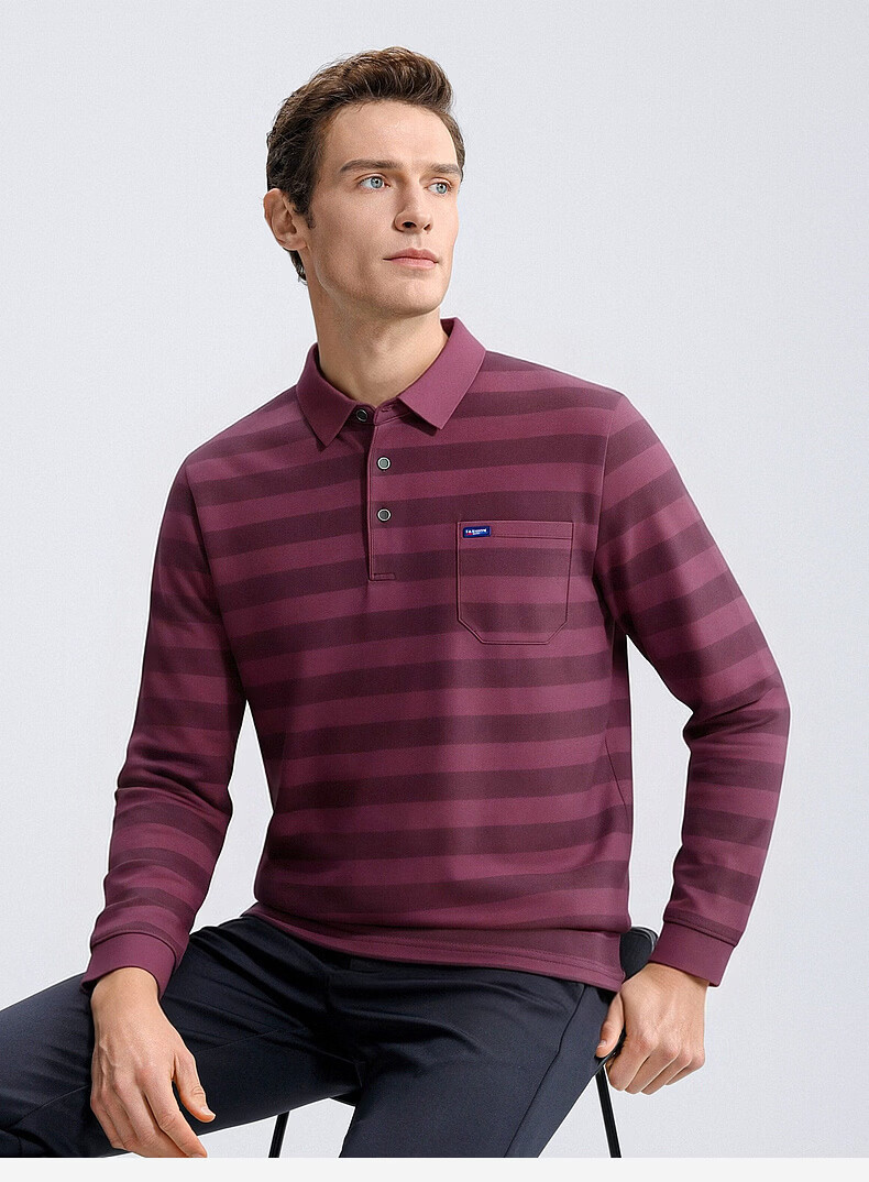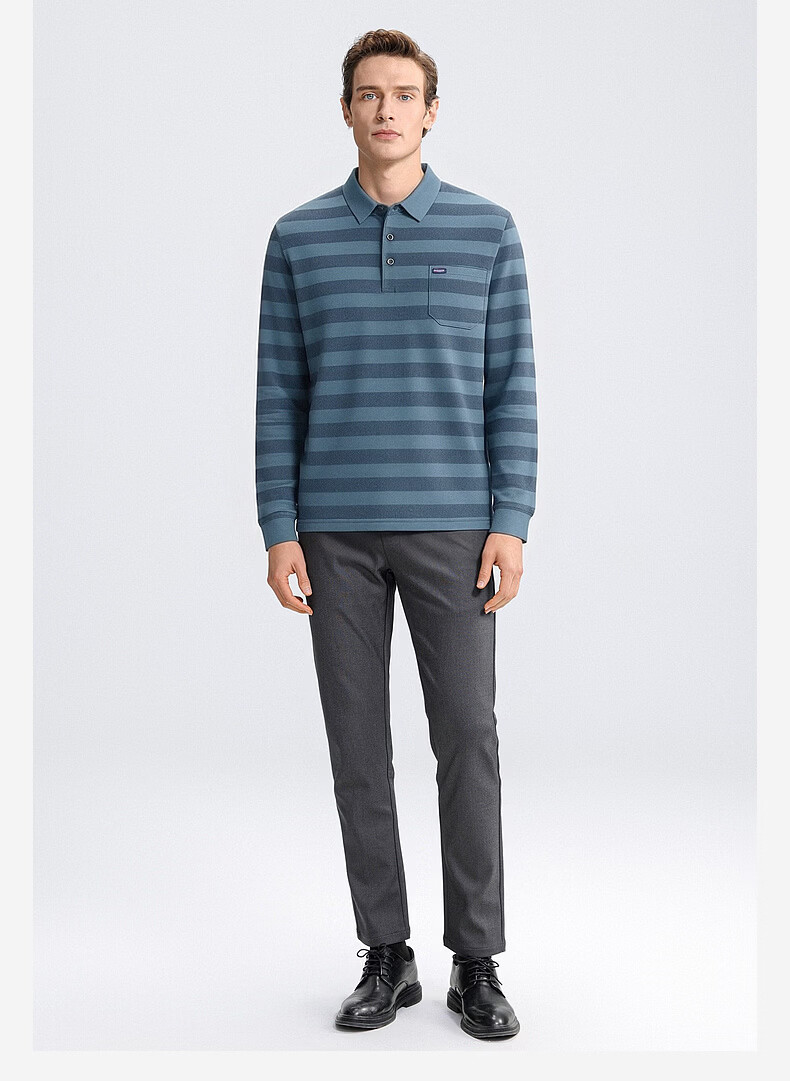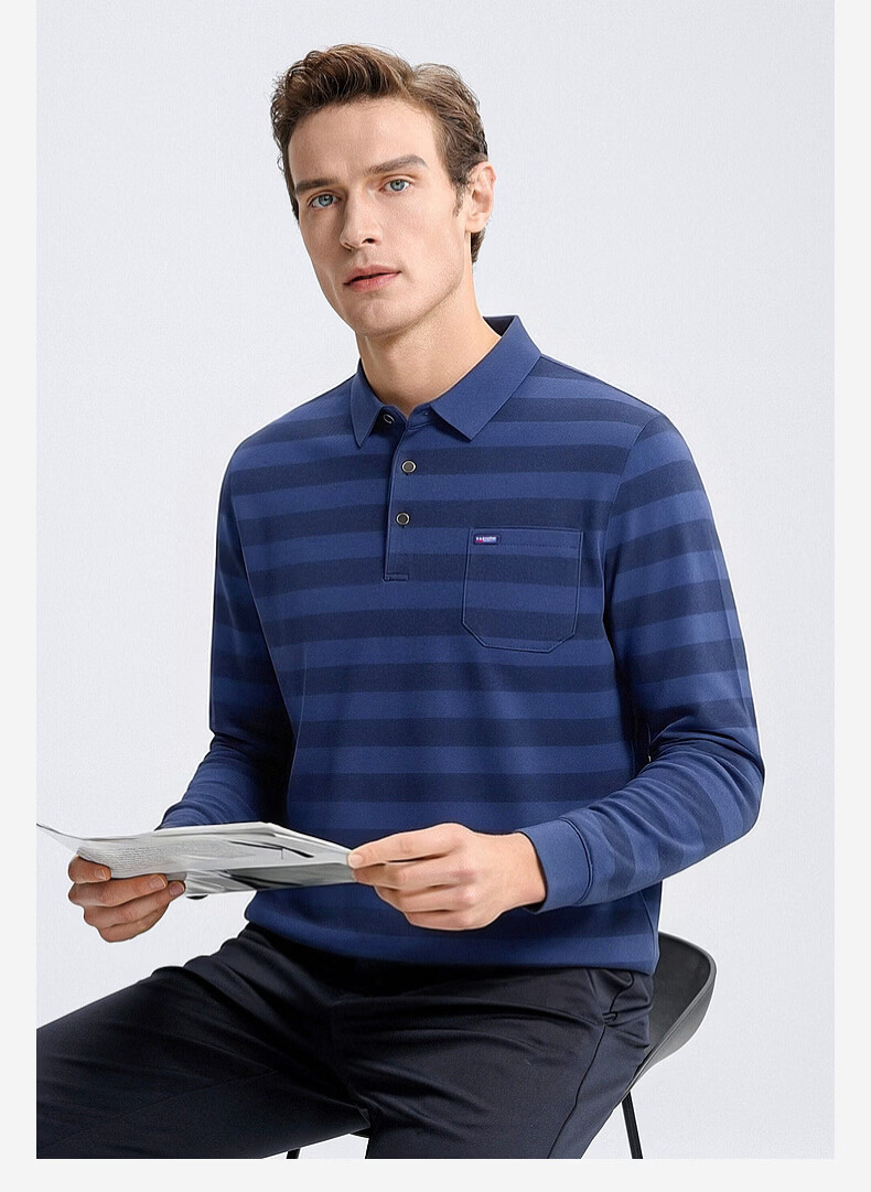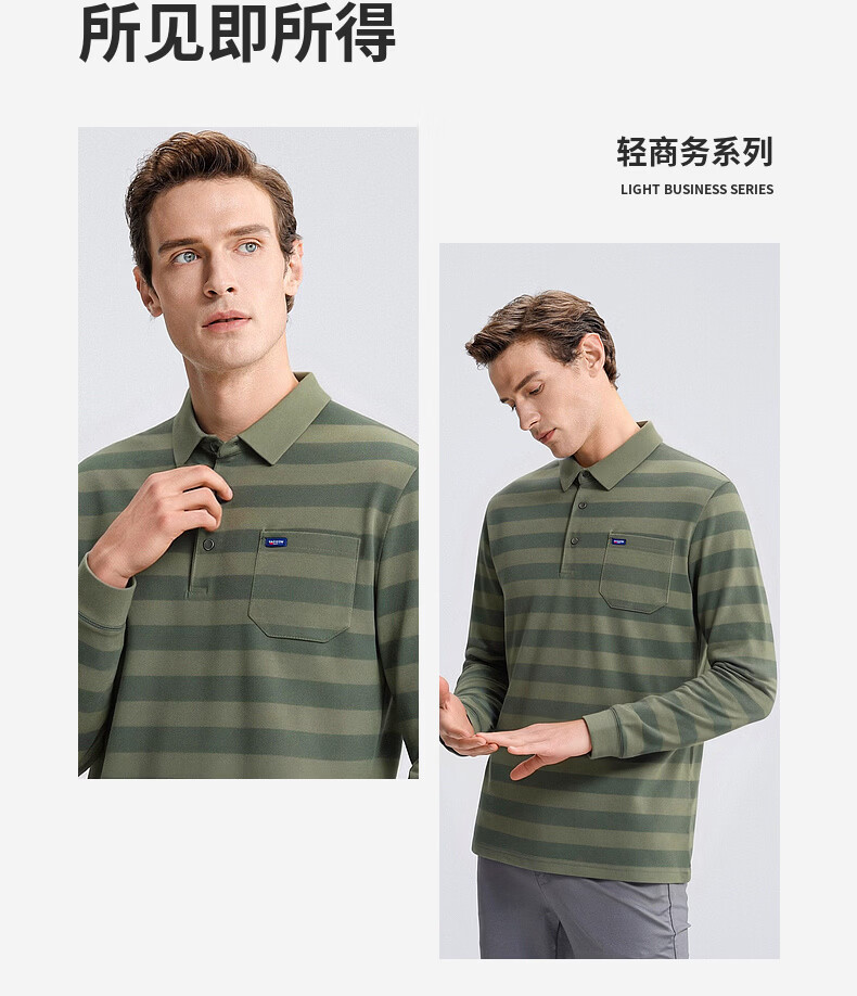 SHANSHAN杉杉【锦氨弹力撞色粗条纹】长袖t恤男翻领POLO衫打底通勤春秋 灰色 M /170