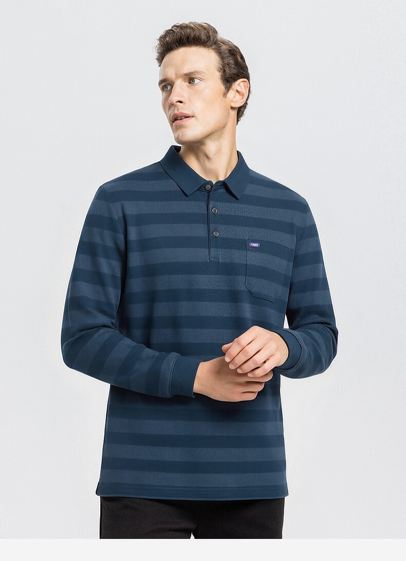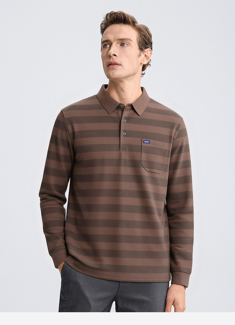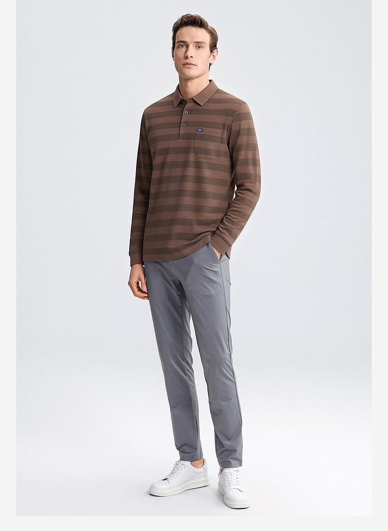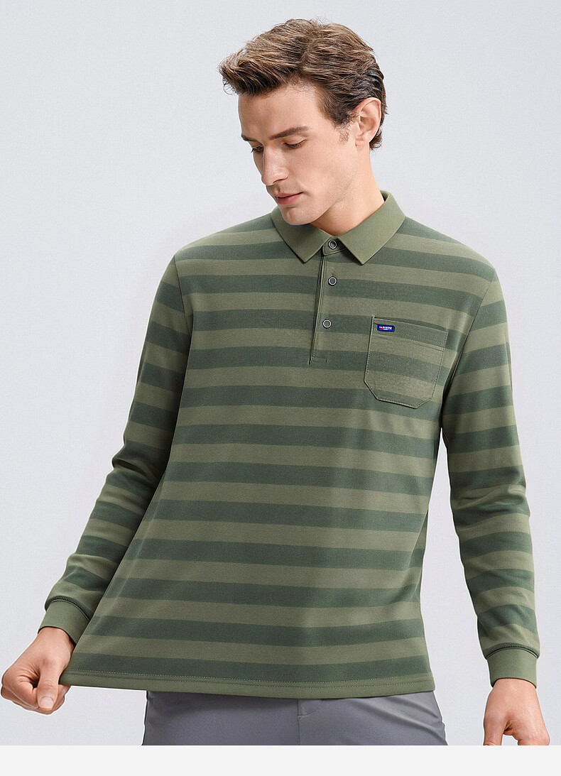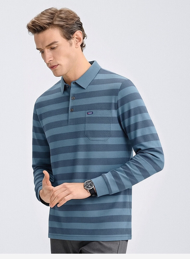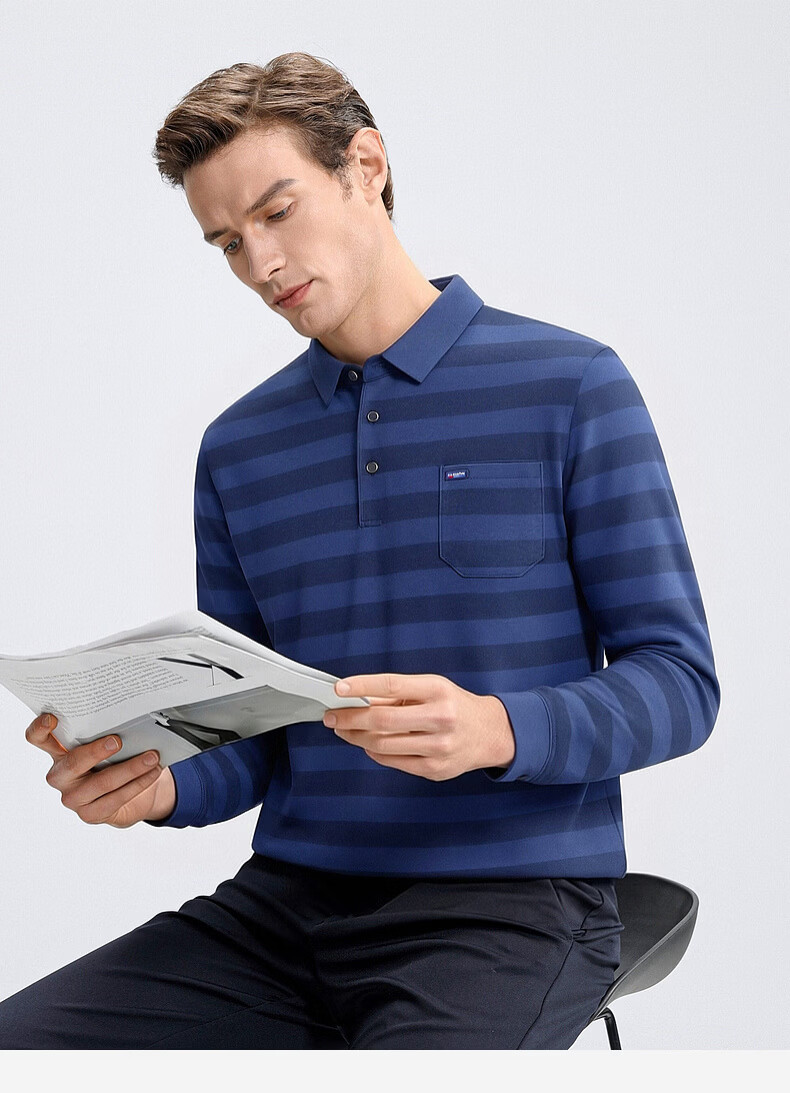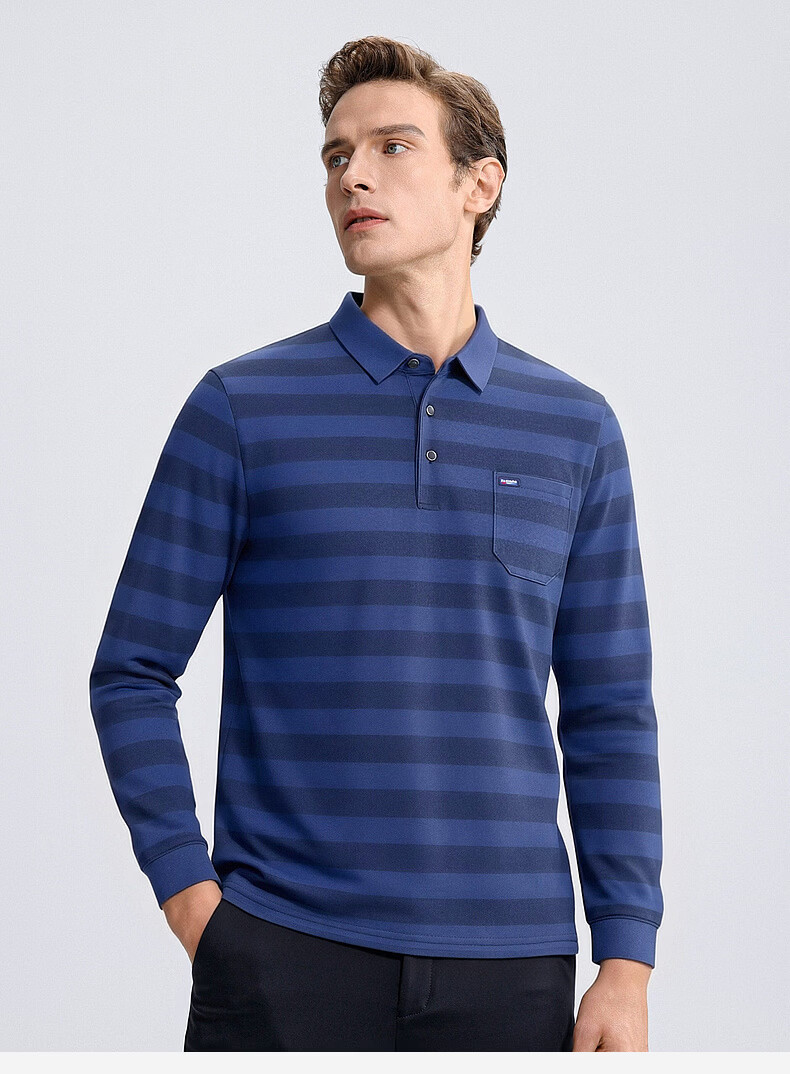 SHANSHAN杉杉【锦氨弹力撞色粗条纹】长袖t恤男翻领POLO衫打底通勤春秋 灰色 M /170