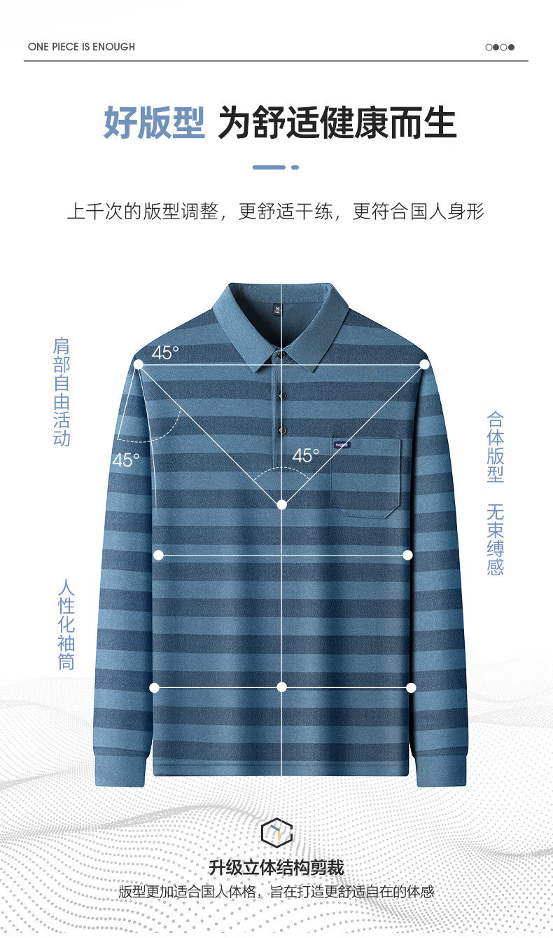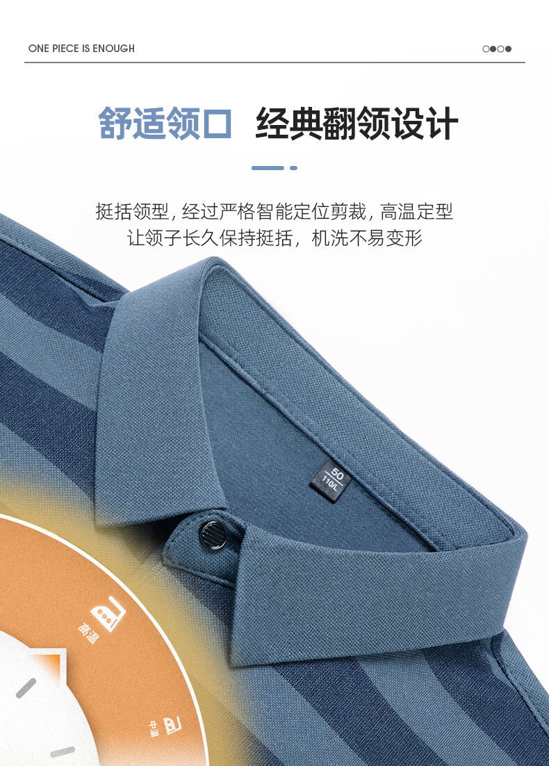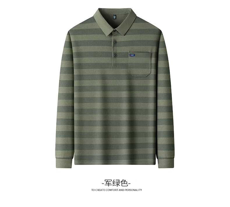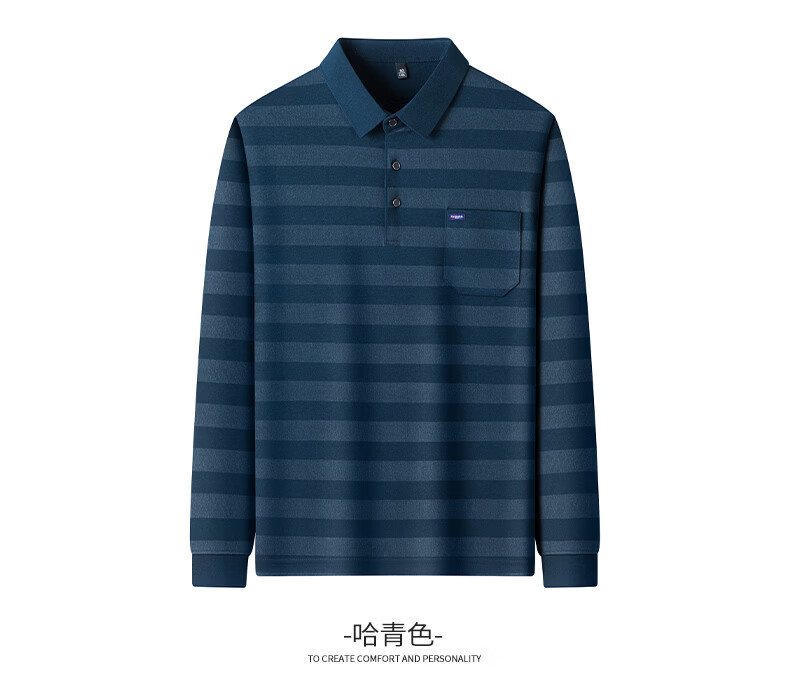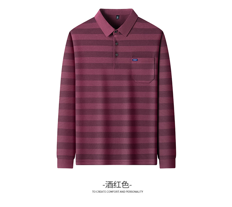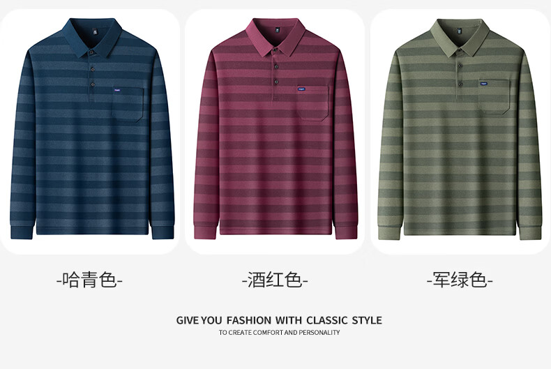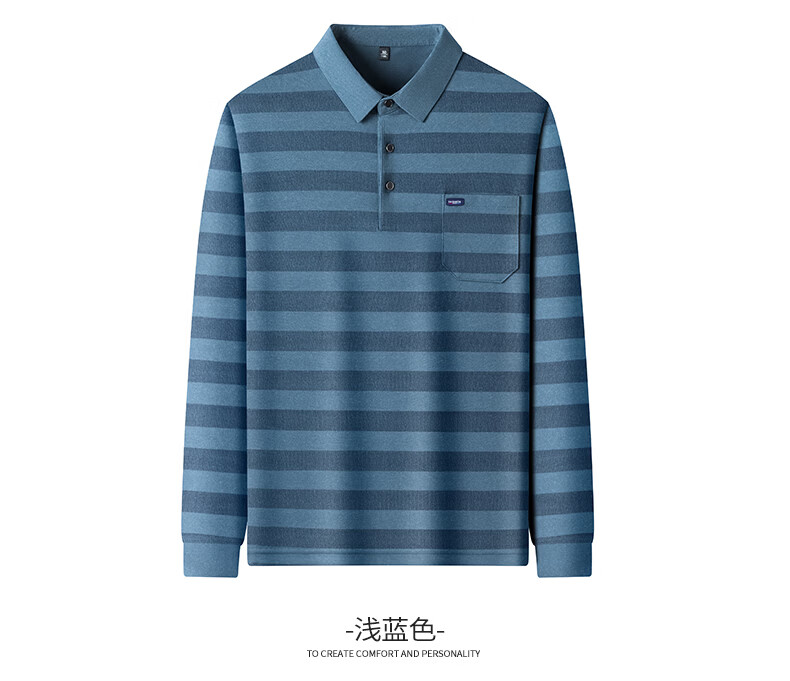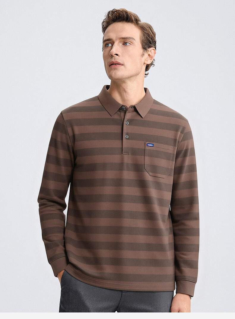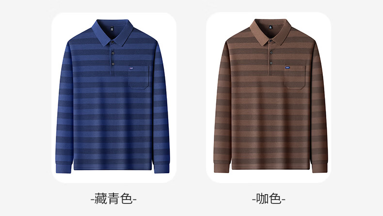 SHANSHAN杉杉【锦氨弹力撞色粗条纹】长袖t恤男翻领POLO衫打底通勤春秋 灰色 M /170
