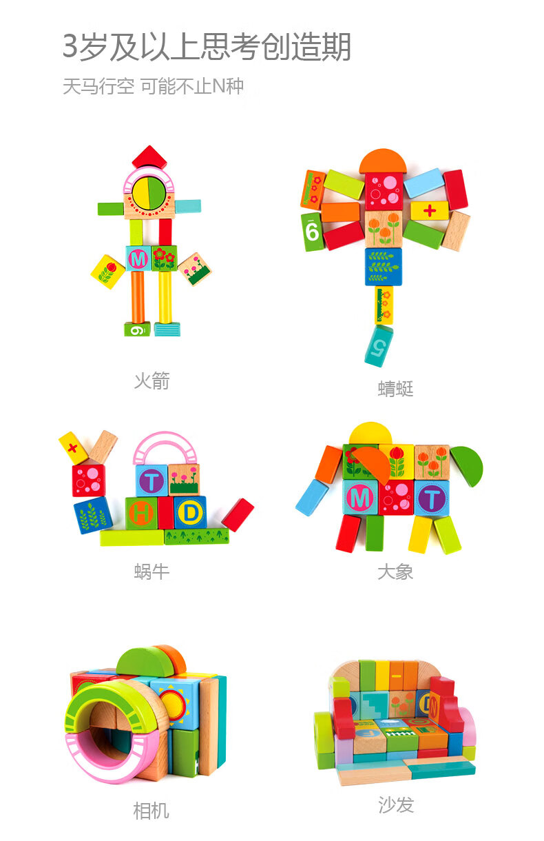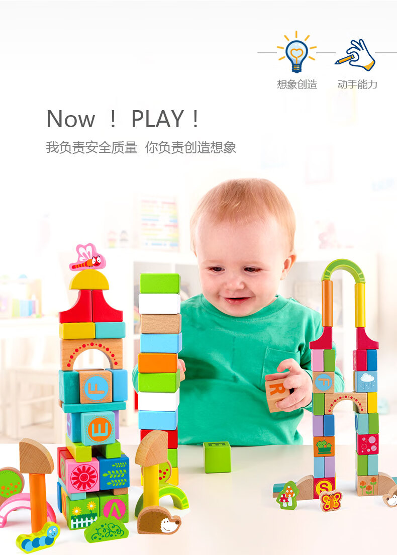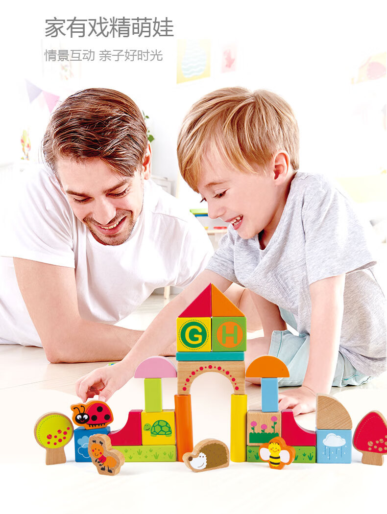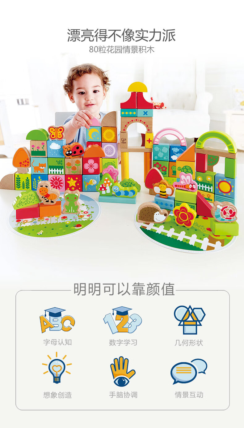 Hape(德国)儿童积木玩具木质大颗粒宝宝花园积木男女孩生日礼物E8312