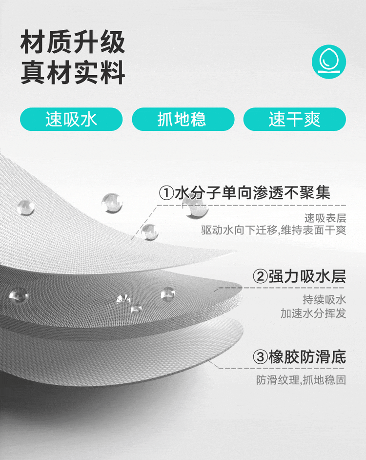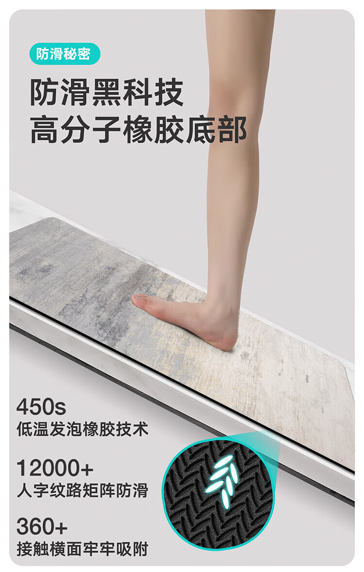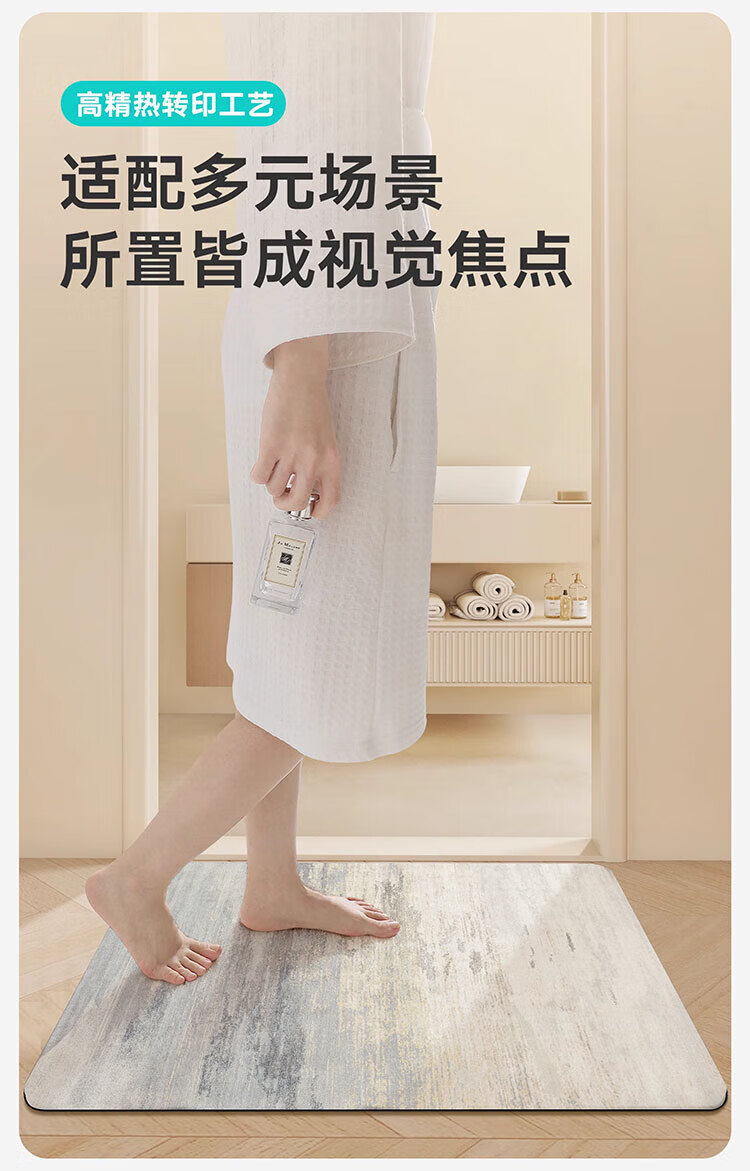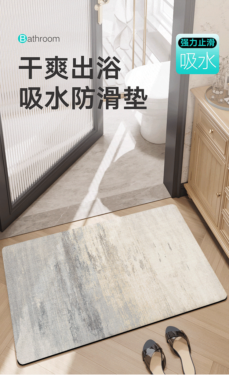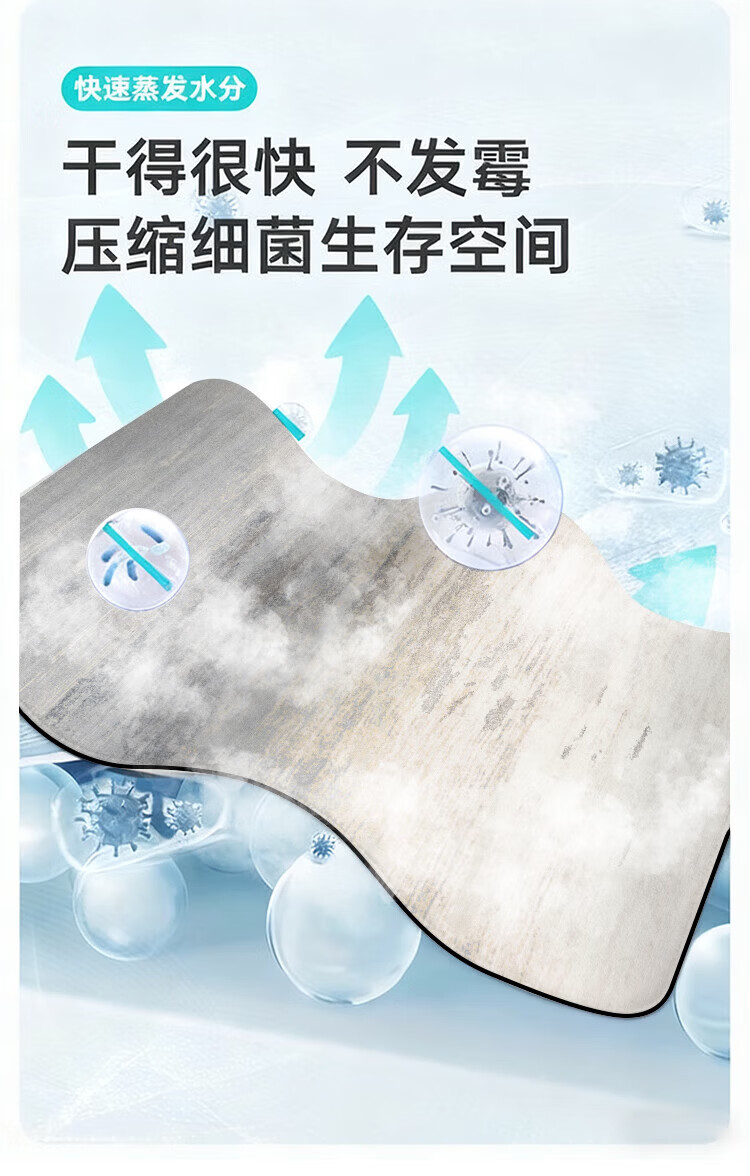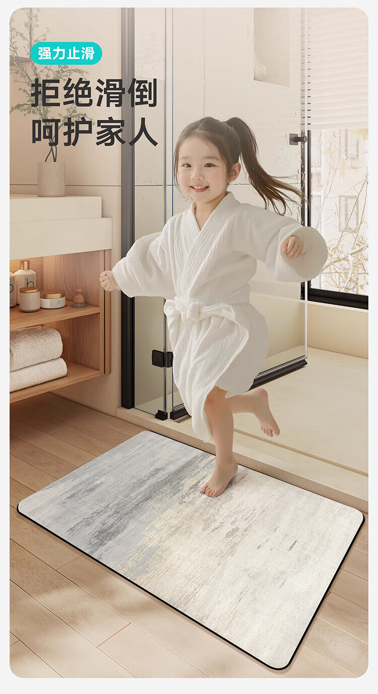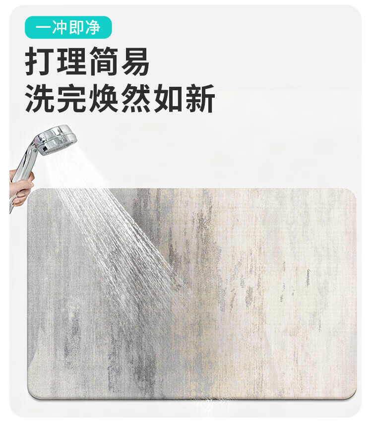 纤苏浴室防滑地垫卫生间淋浴吸水脚垫硅藻泥速干厨房进门防摔家用垫子 K-墨染 50*80cm强效防滑|适用浴室