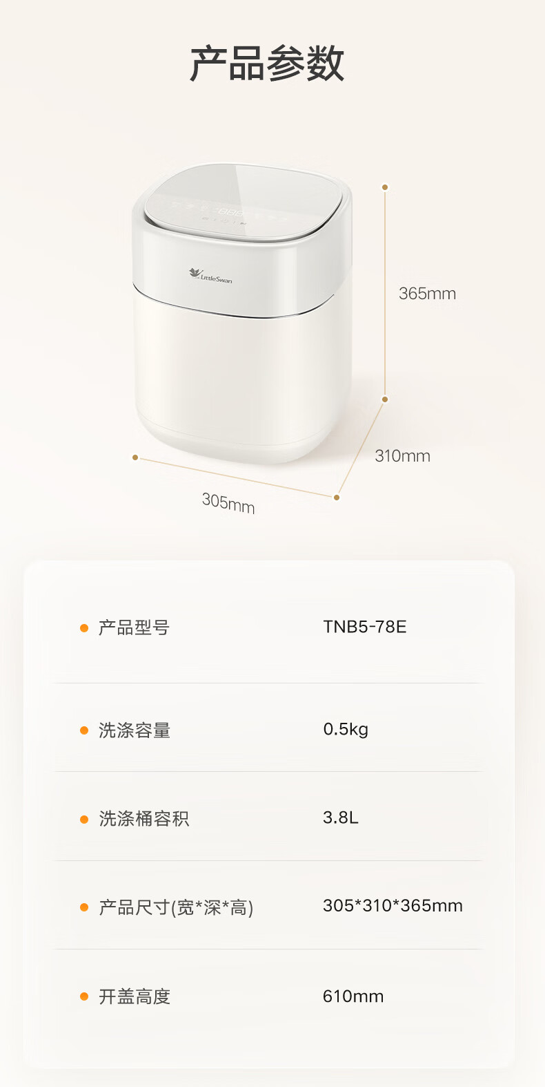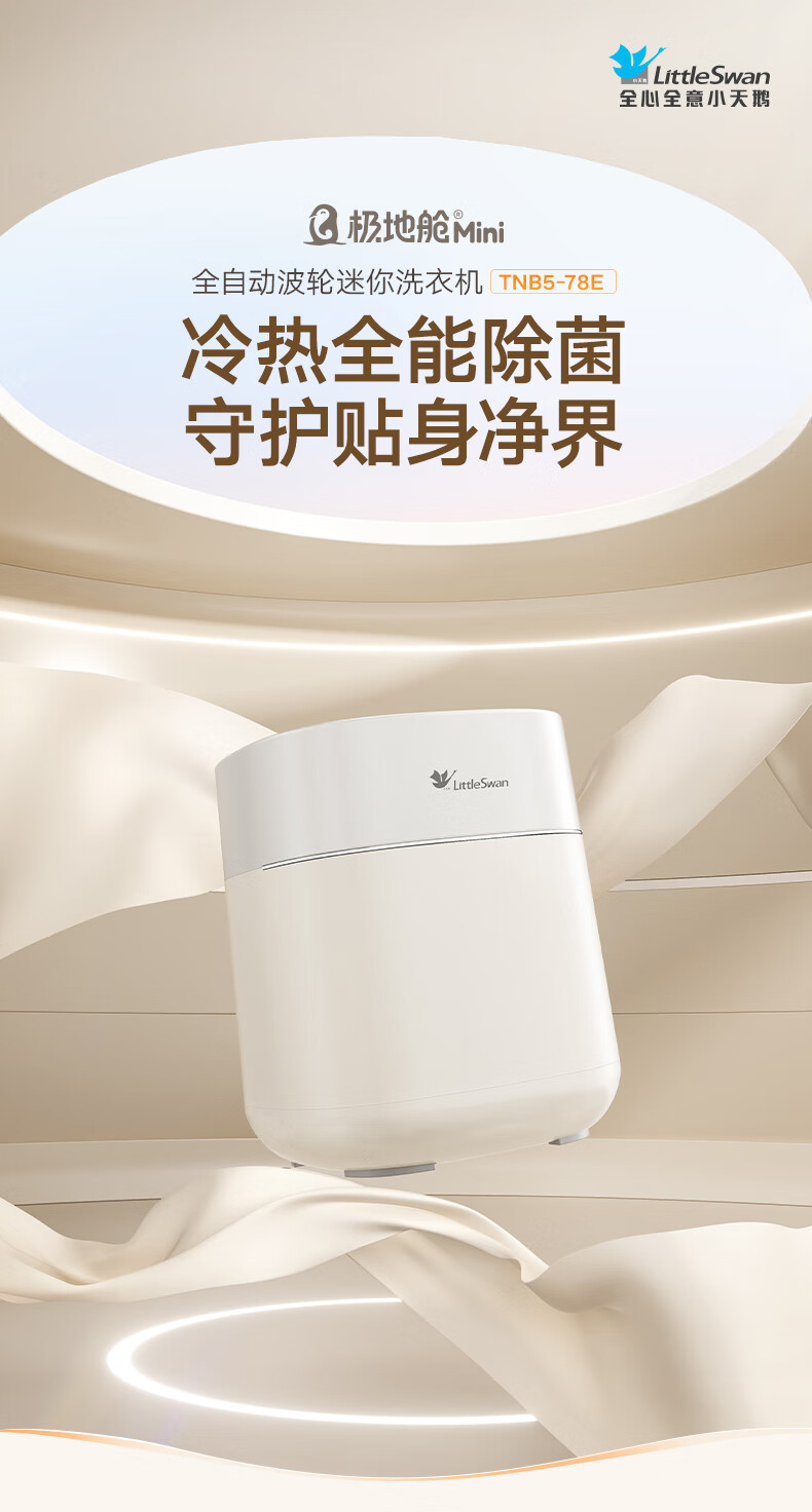 小天鹅(LittleSwan)0.5KG波轮内衣洗衣机全自动极地Mini 1.389洗净比高温煮洗冷热除菌小型迷你洗衣机TNB5-78E