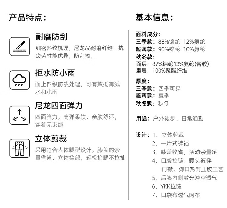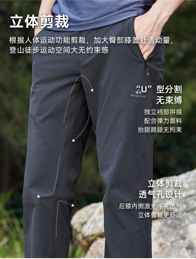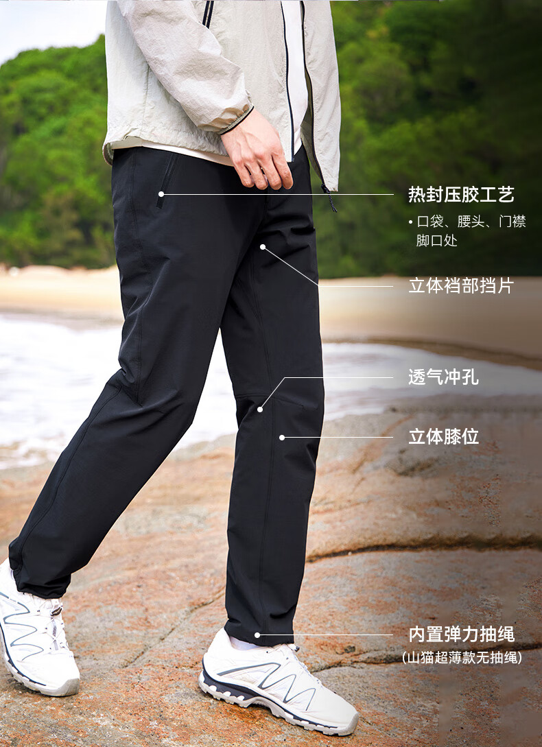拓路者山猫休闲裤男直筒夏季户外运动长裤子徒步防风登山裤男士速干裤 黑色 三季款 2XL