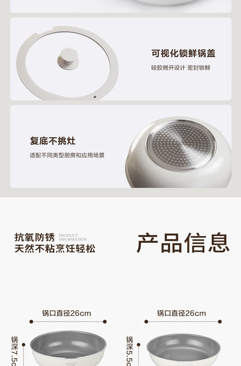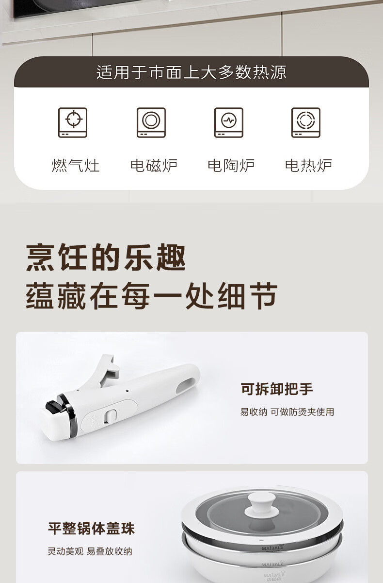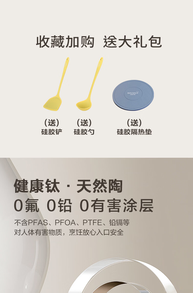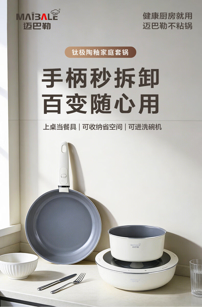 迈巴勒钛极陶釉不粘锅具套装家用炒锅汤锅平底锅煎锅陶瓷涂层健康锅