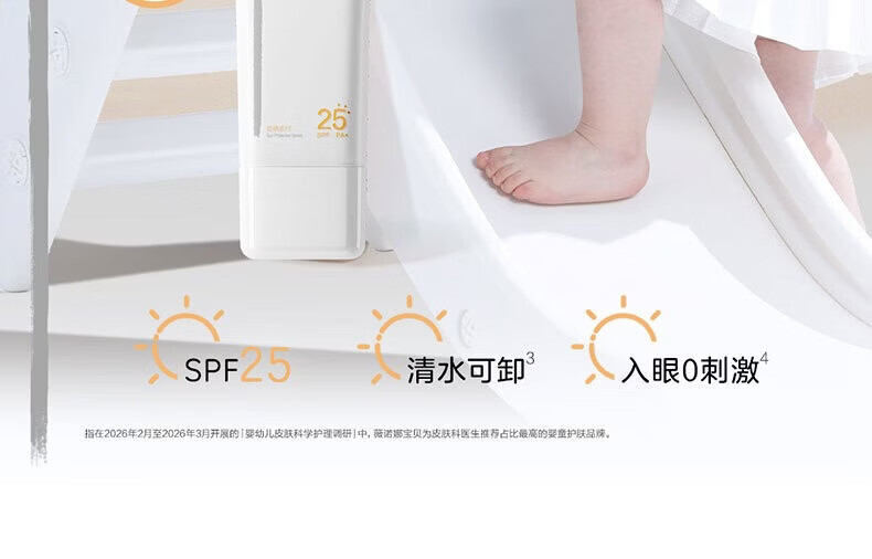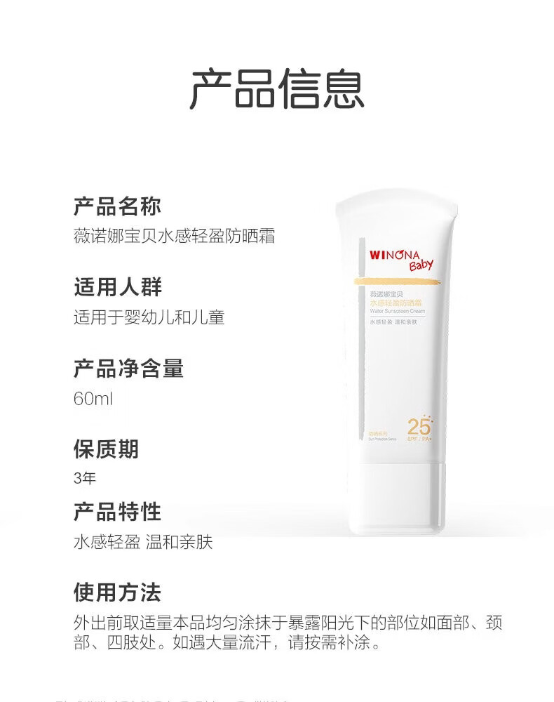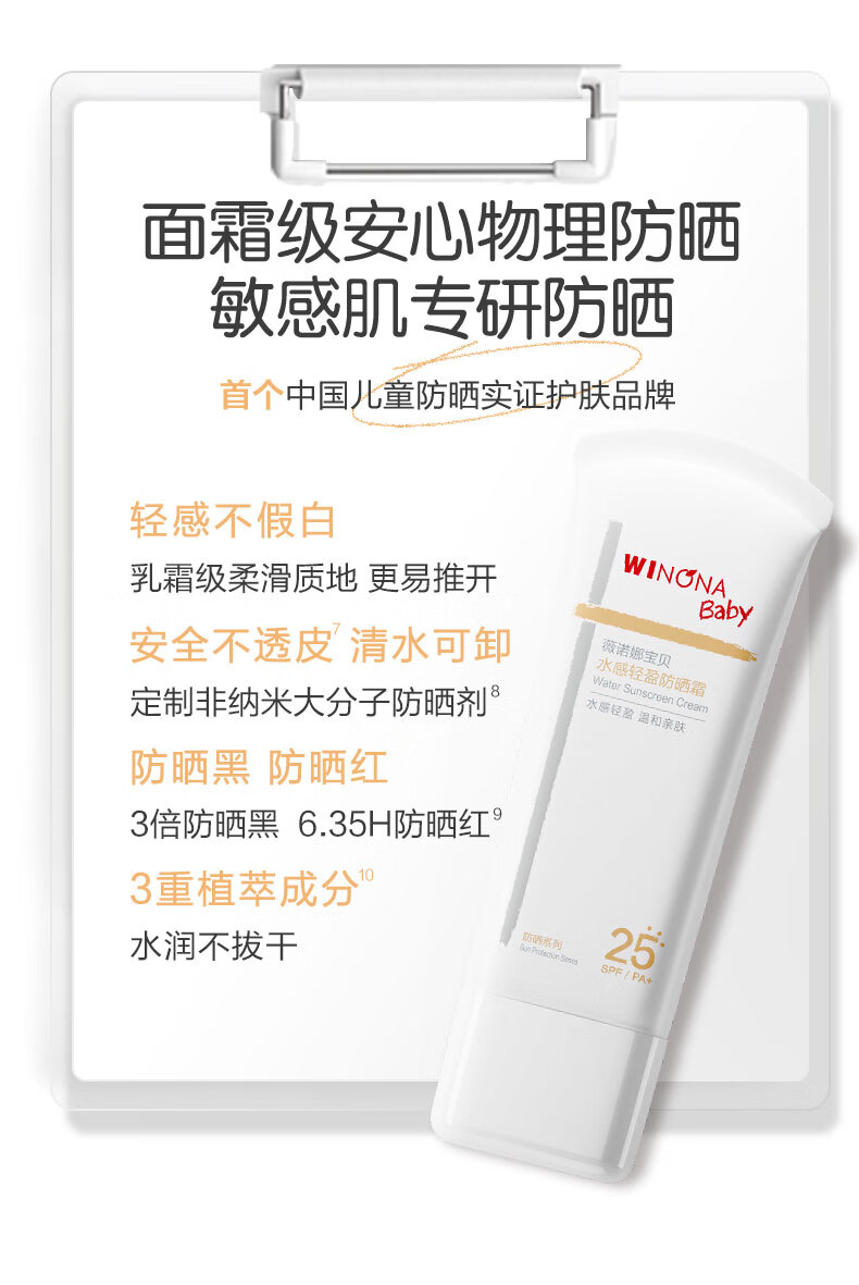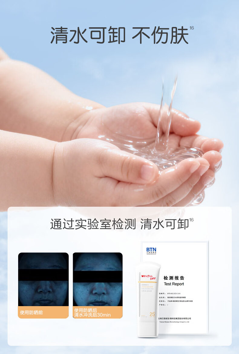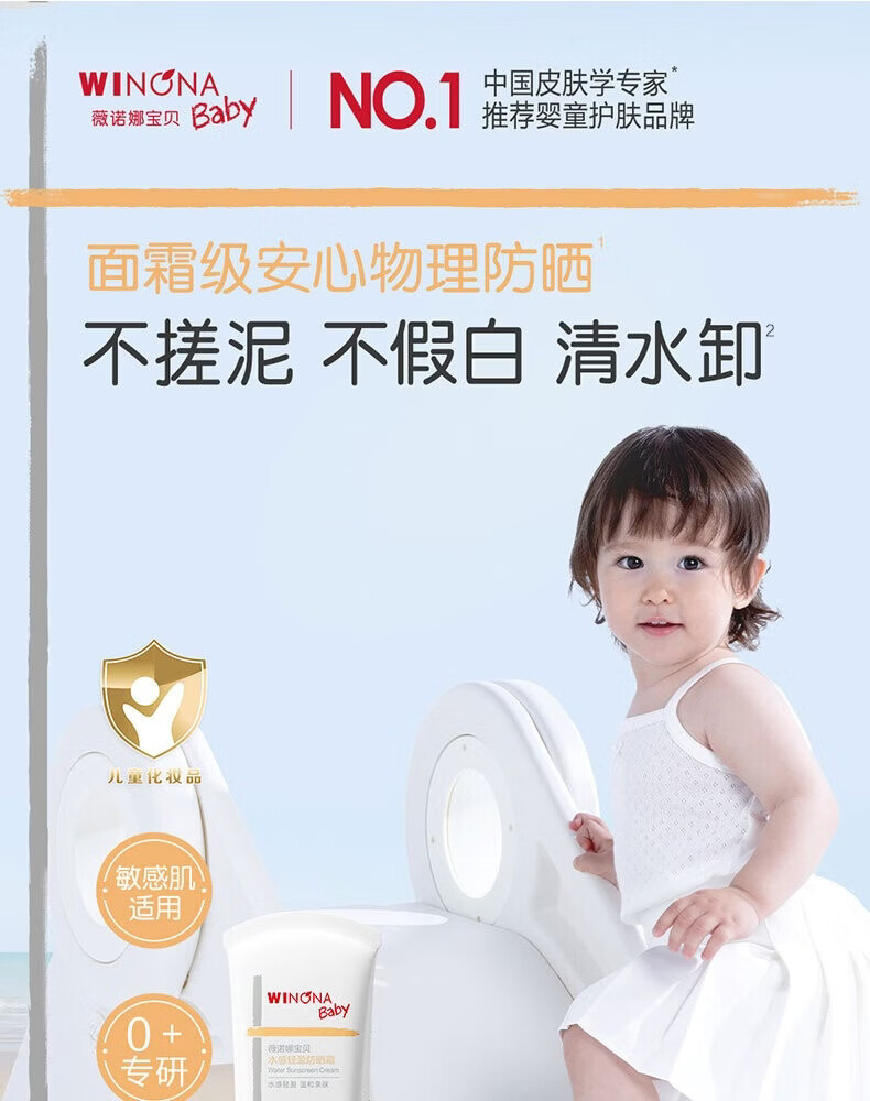 薇诺娜宝贝(WINONA Baby)水感轻盈防晒霜清水可卸婴幼儿专研防晒SPF25PA+安心物理防晒 【清水可卸不伤肤】30g