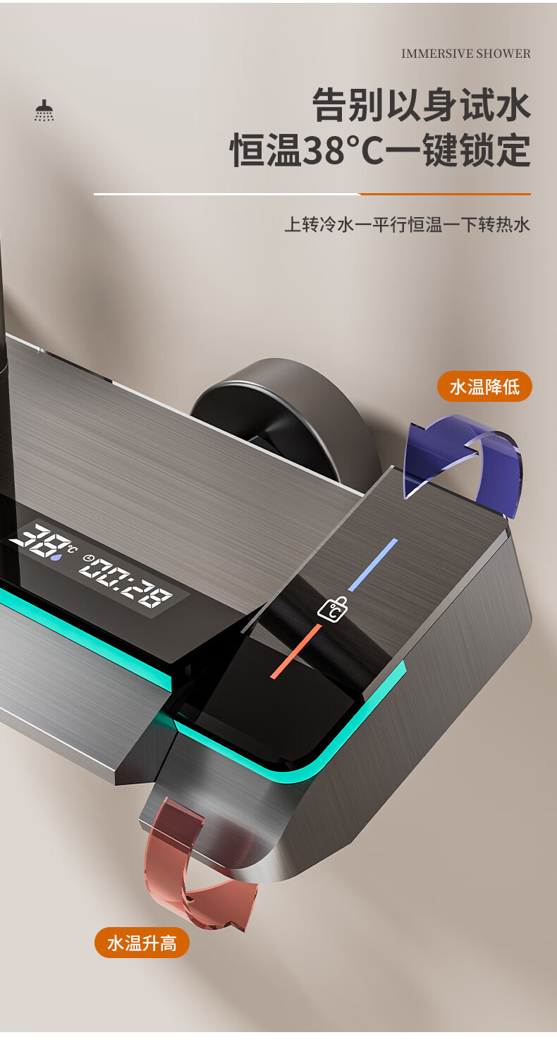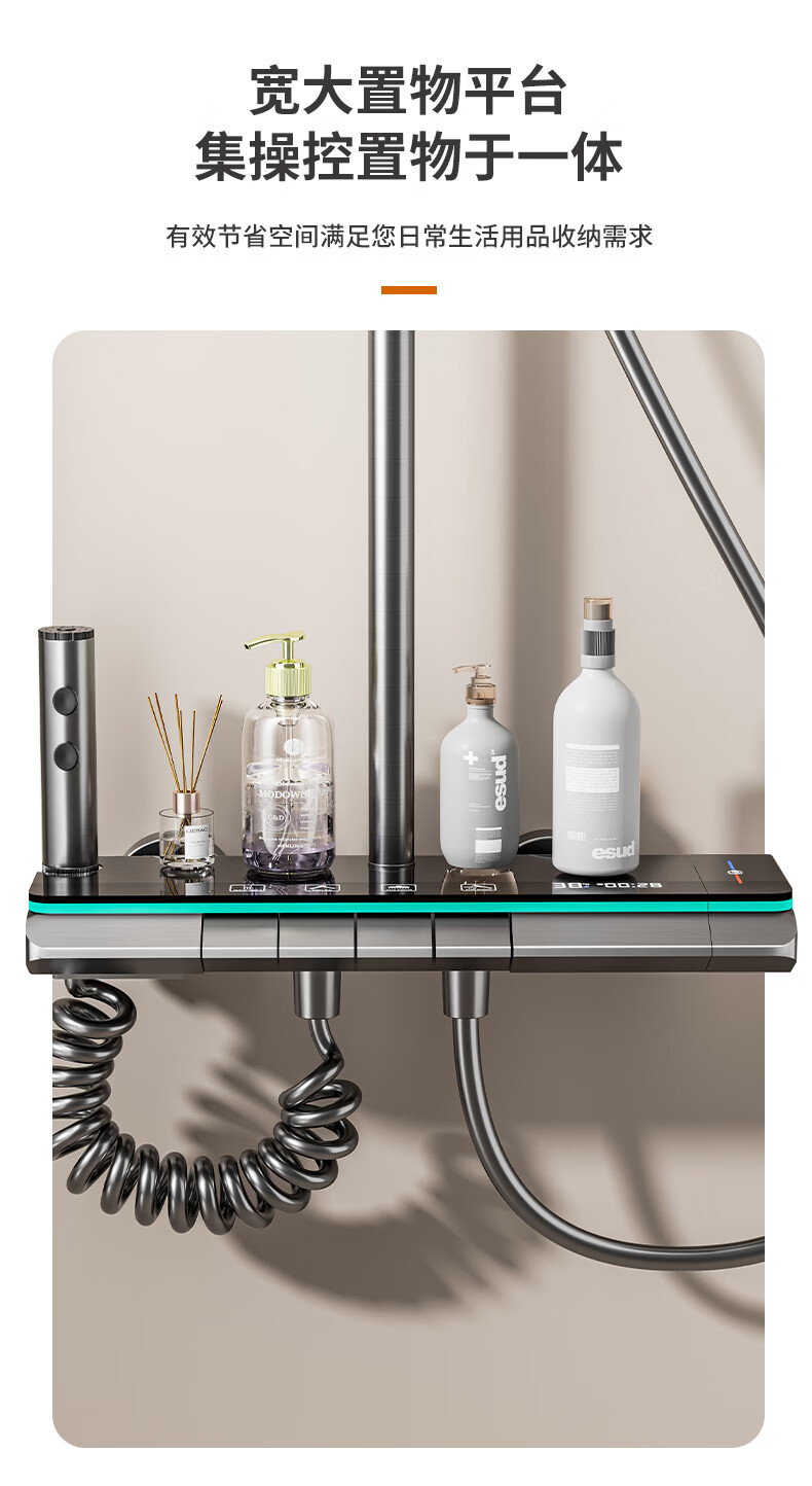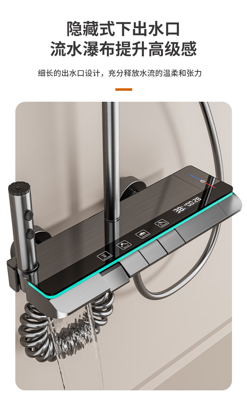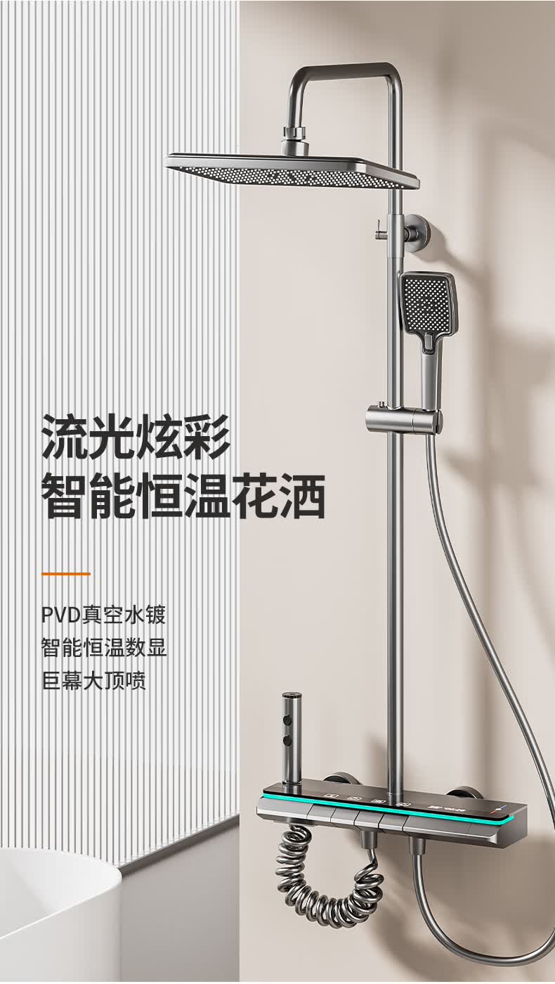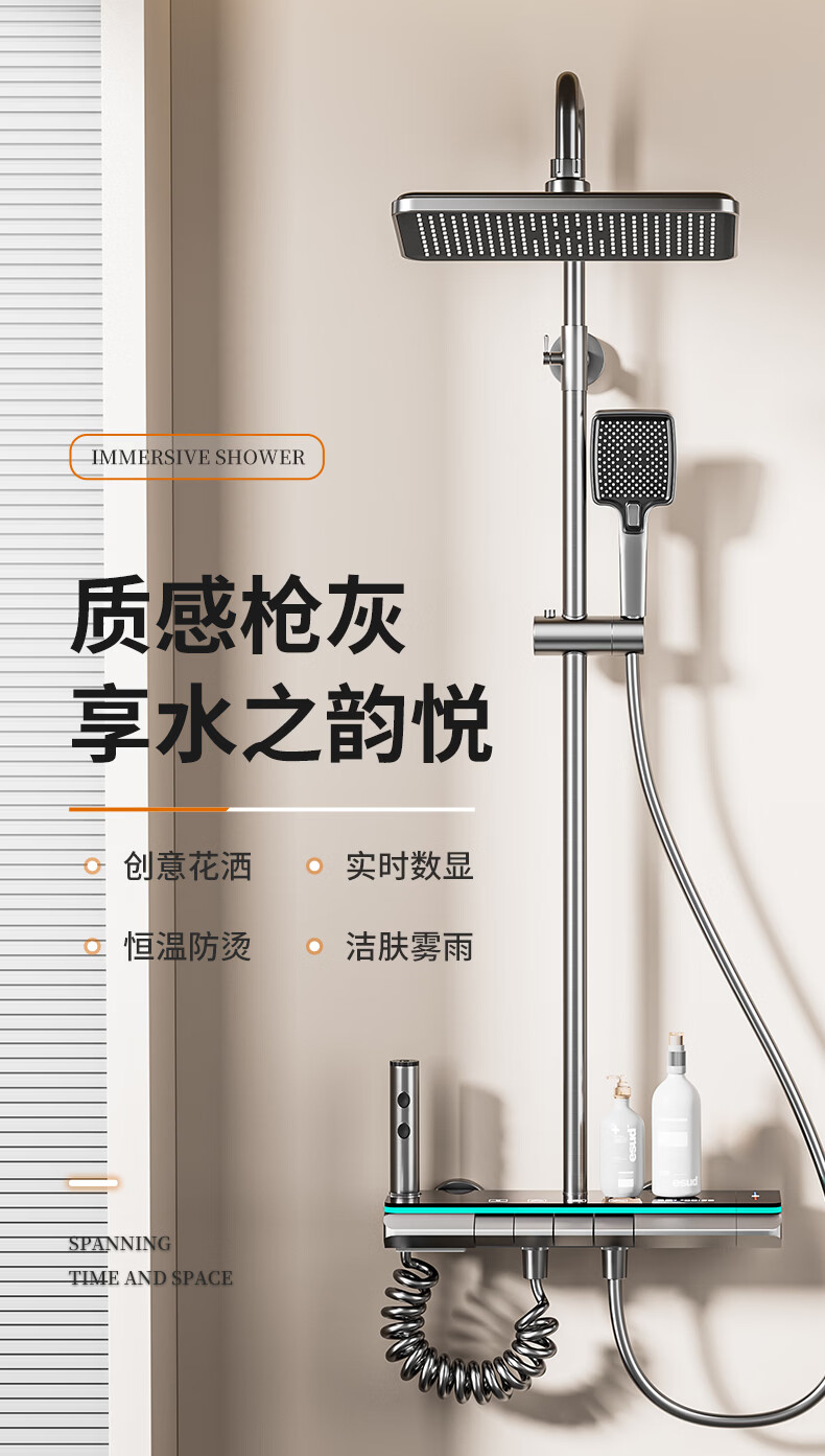 九牧(JOMOO)花洒淋浴套装一体全铜钢琴键恒温增压花洒淋浴喷头 九牧JL5枪灰色【智能恒温+水温实时显示】包安装