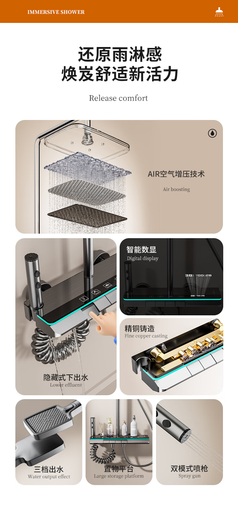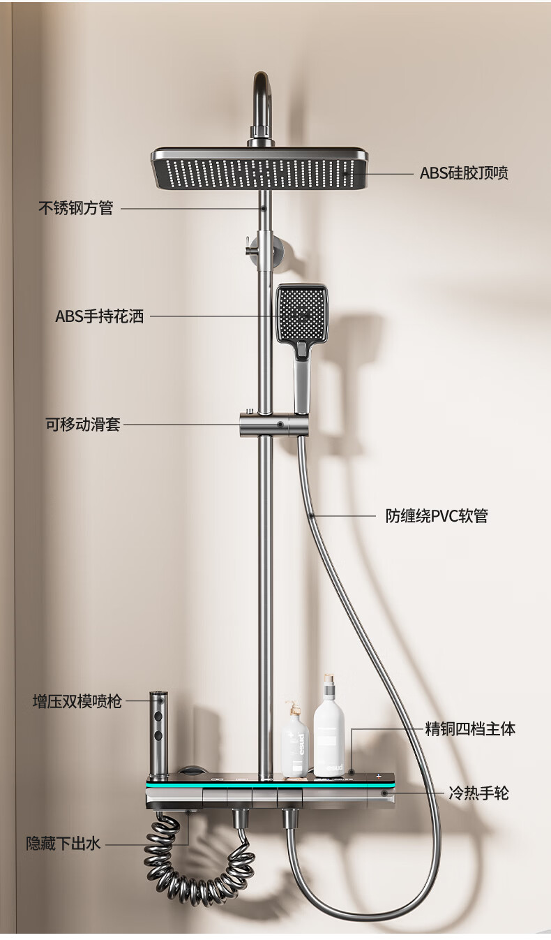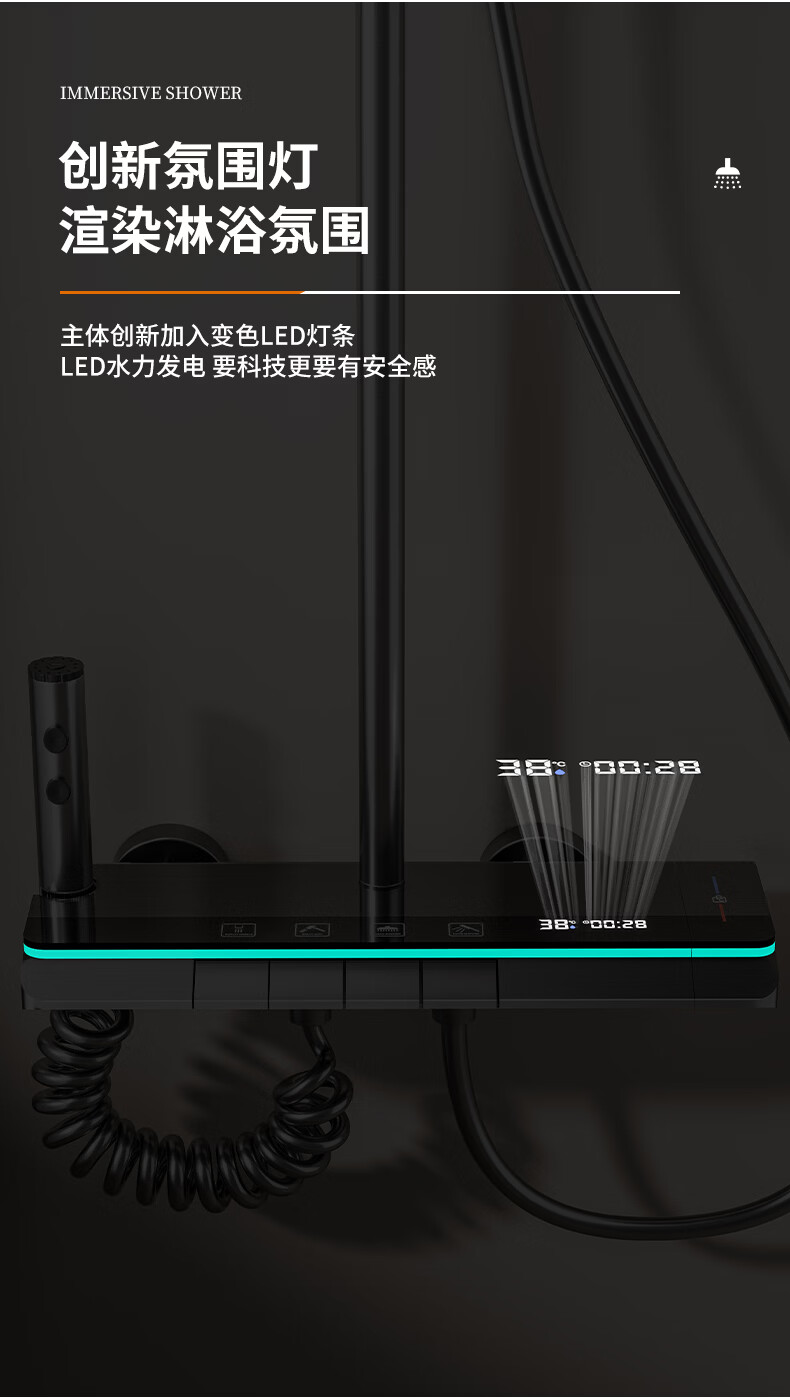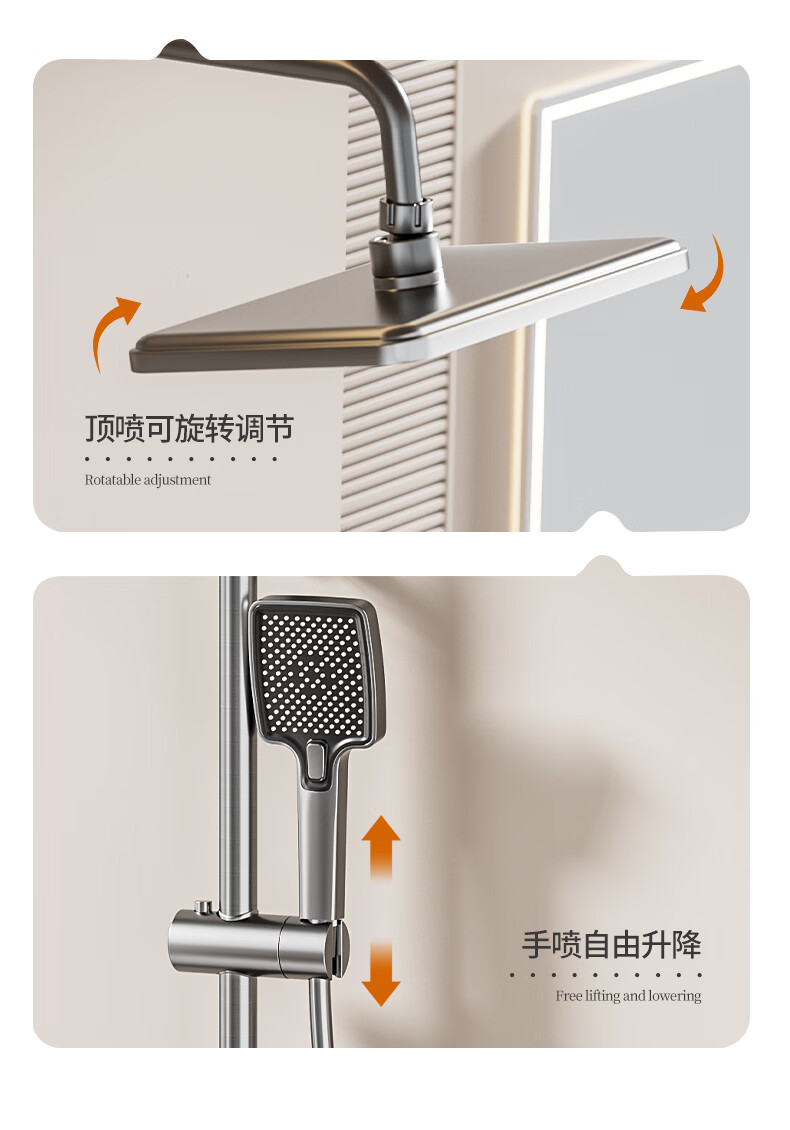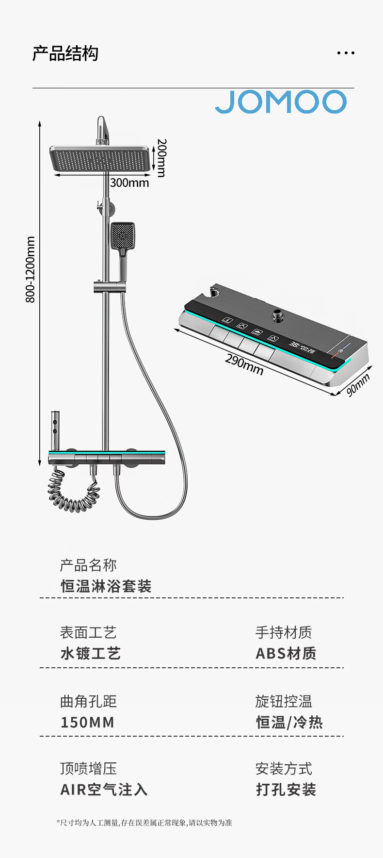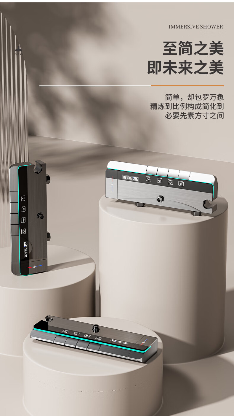 九牧(JOMOO)花洒淋浴套装一体全铜钢琴键恒温增压花洒淋浴喷头 九牧JL5枪灰色【智能恒温+水温实时显示】包安装