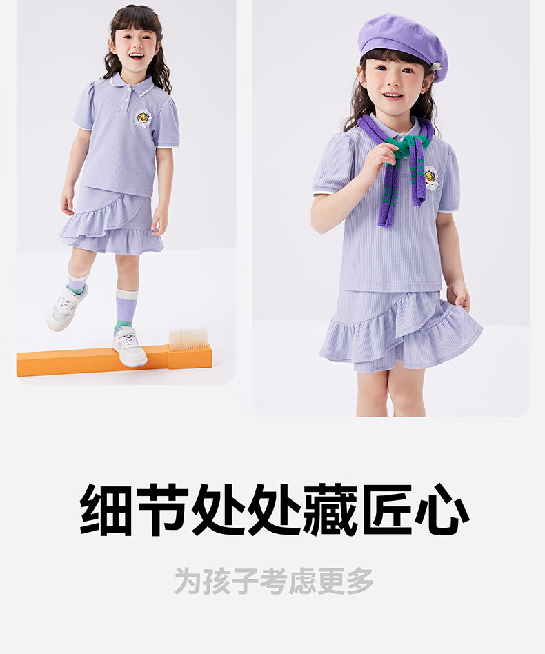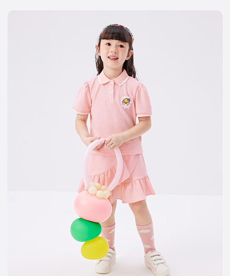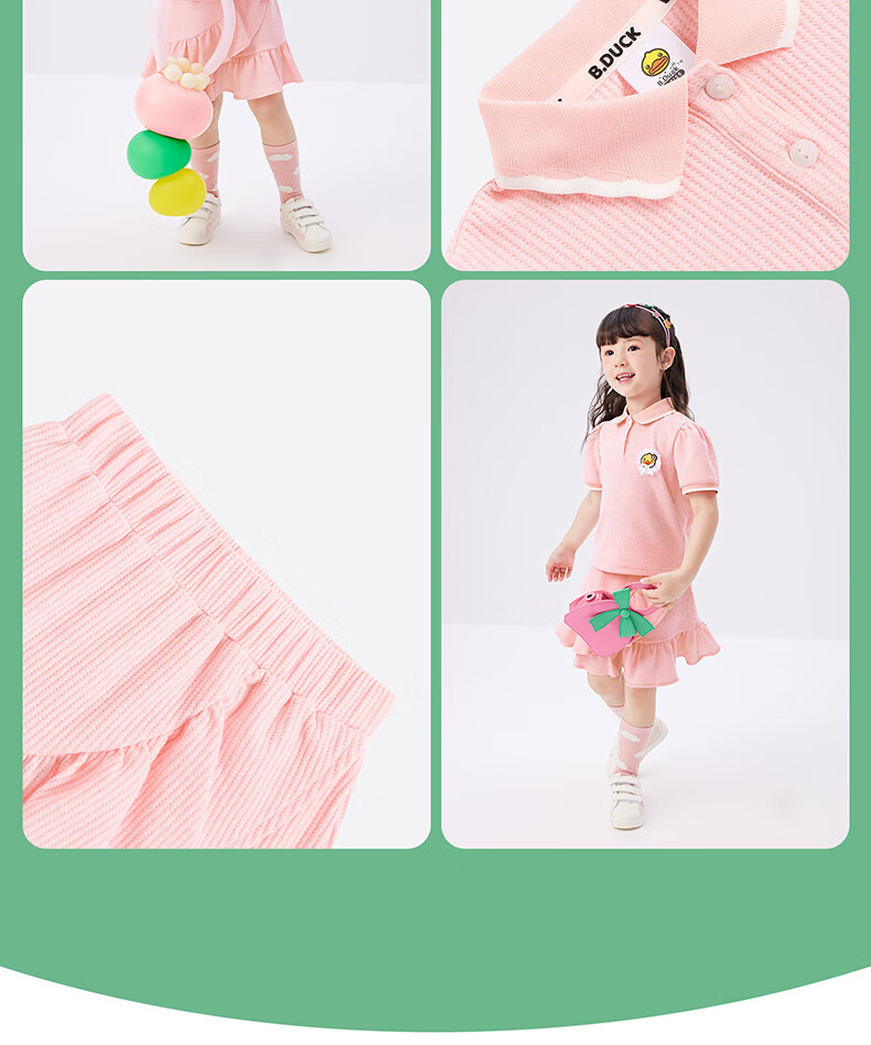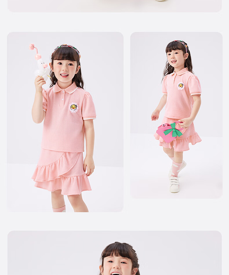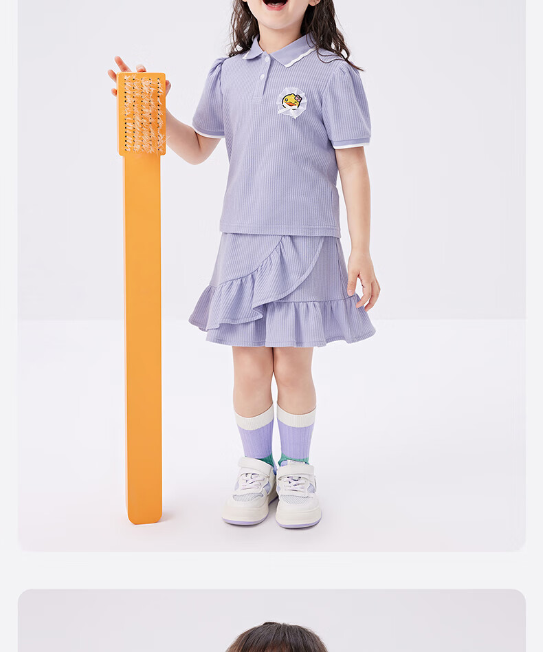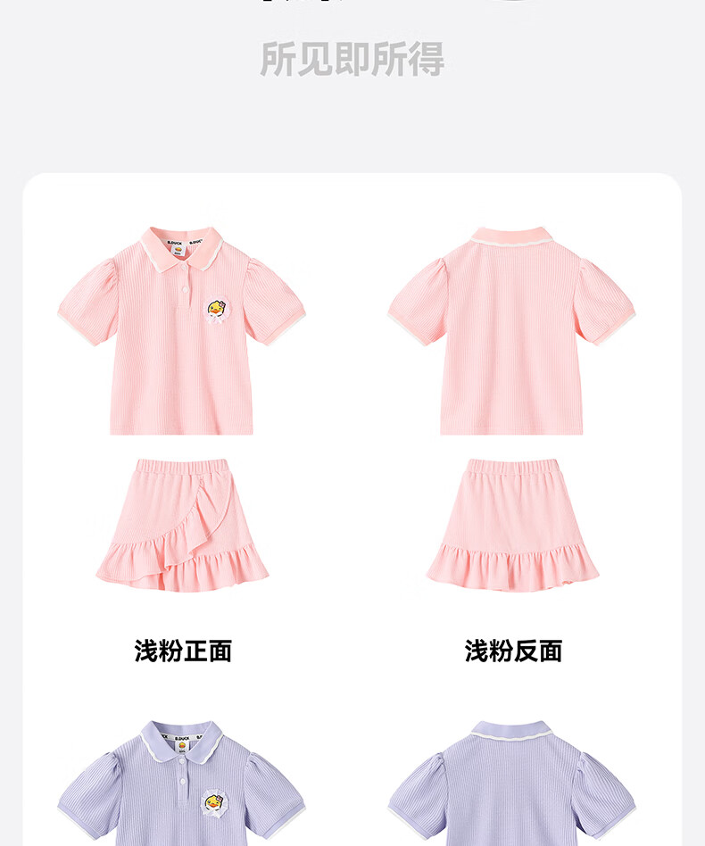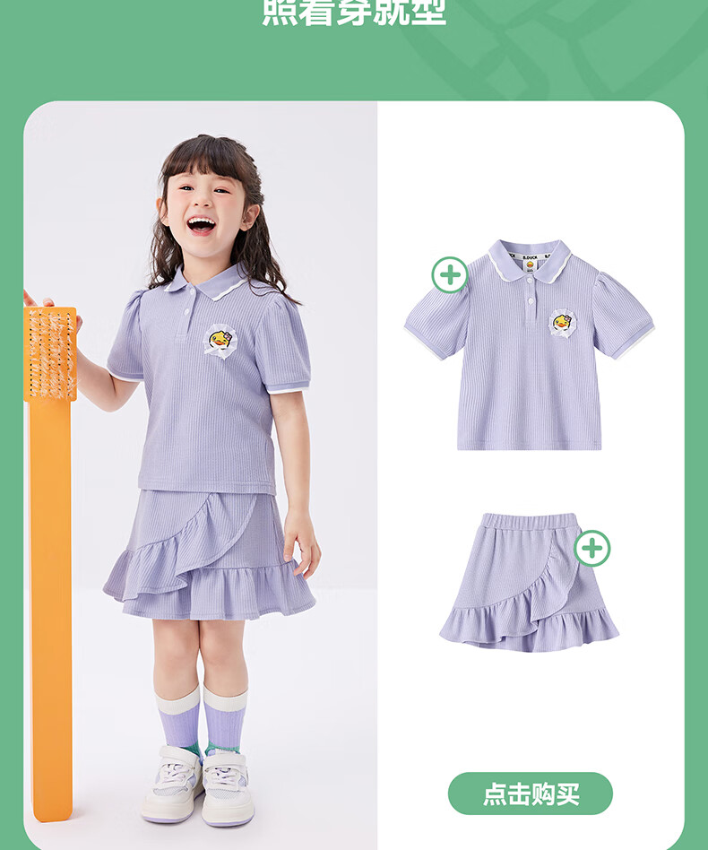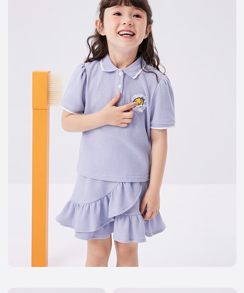 B.Duck【套装】小黄鸭童装女童短袖短裙两件套儿童新款小女孩夏季套 魅力紫 105 cm