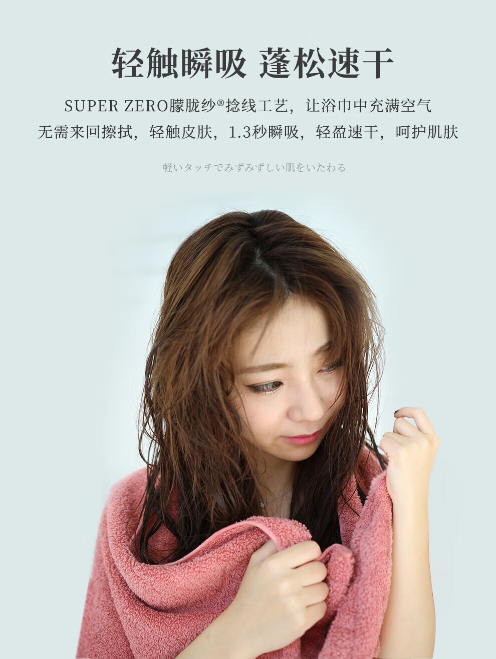 浅野(air kaol)浴巾女士男士加大纯棉100%不掉毛【日本进口】高档成人吸水A类XTC 清水蓝1条(70*140cm)