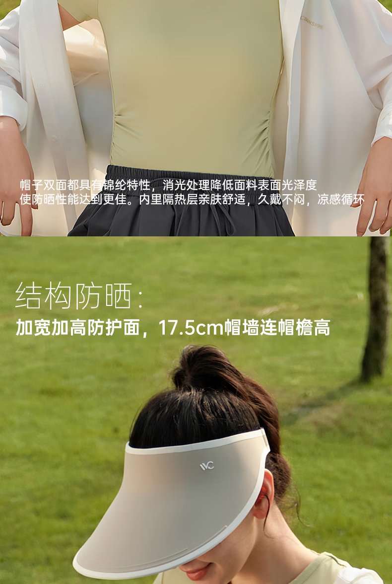 VVC成毅同款防晒帽女夏防紫外线遮阳帽无痕帽户外骑行男女同款太阳帽 茶绿褐
