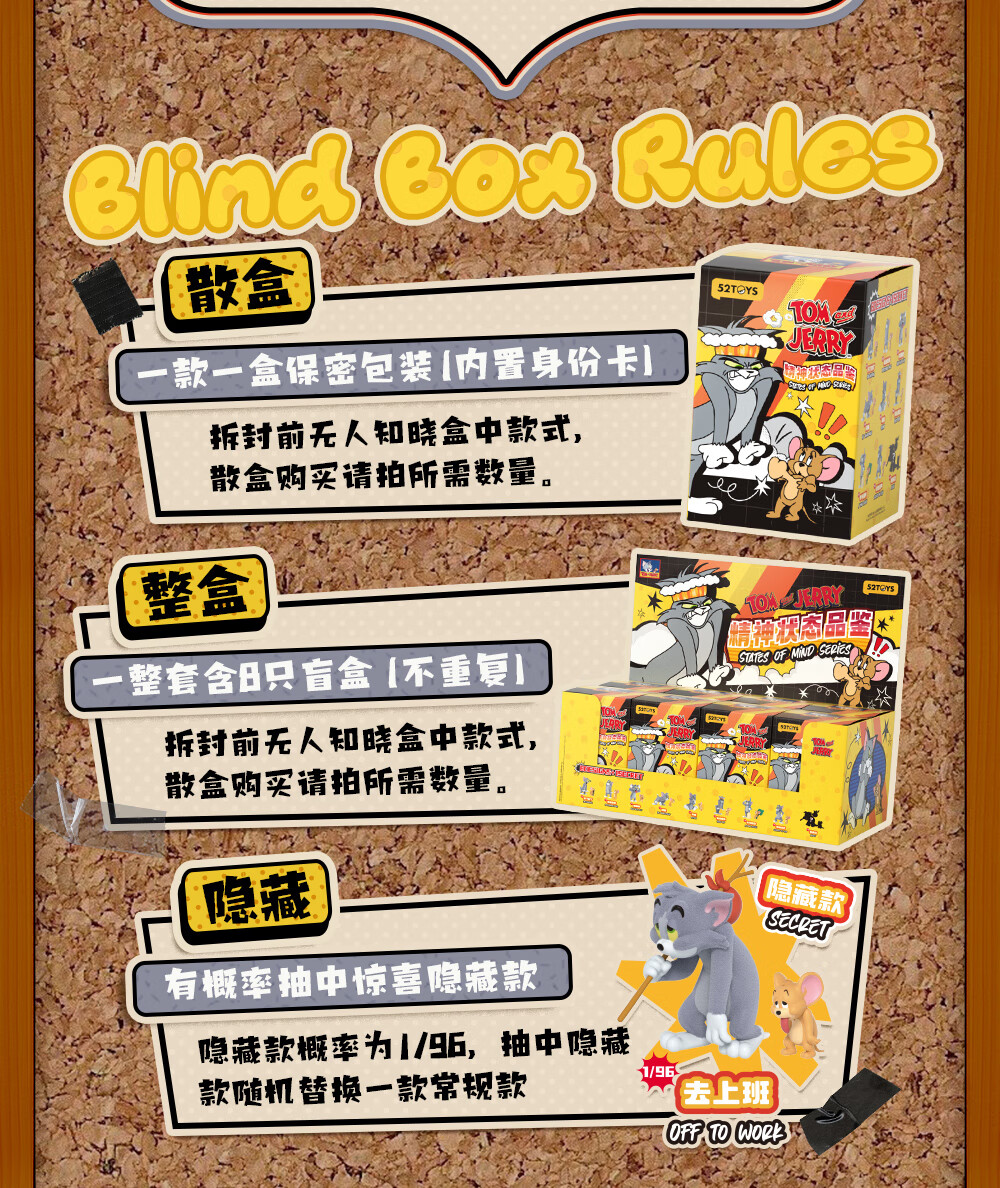 52TOYS TOM and JERRY猫和老鼠 精神状态品鉴系列盲盒手办玩具摆件礼物 单个盲盒(随机发 不接受指定)