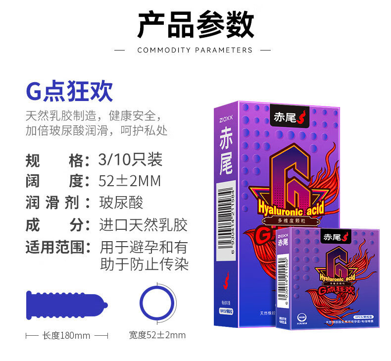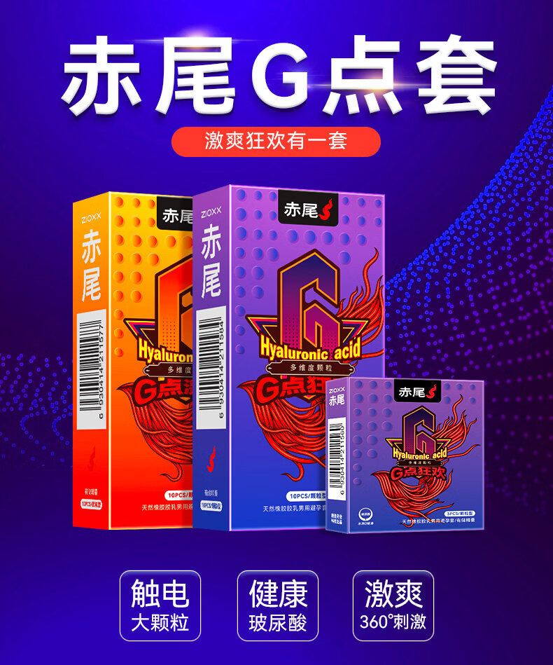 赤尾G点狂欢大颗粒避孕套激爽带刺狼牙玻尿酸安全套情趣男用套套byt 【36只】G点狂欢6+G点激爽10+动感螺纹20