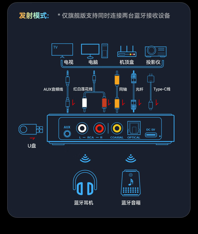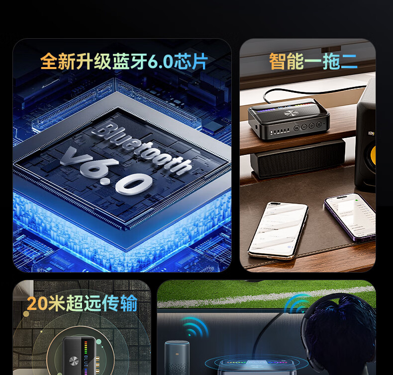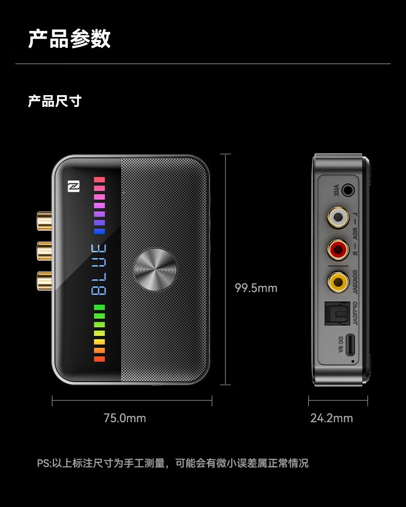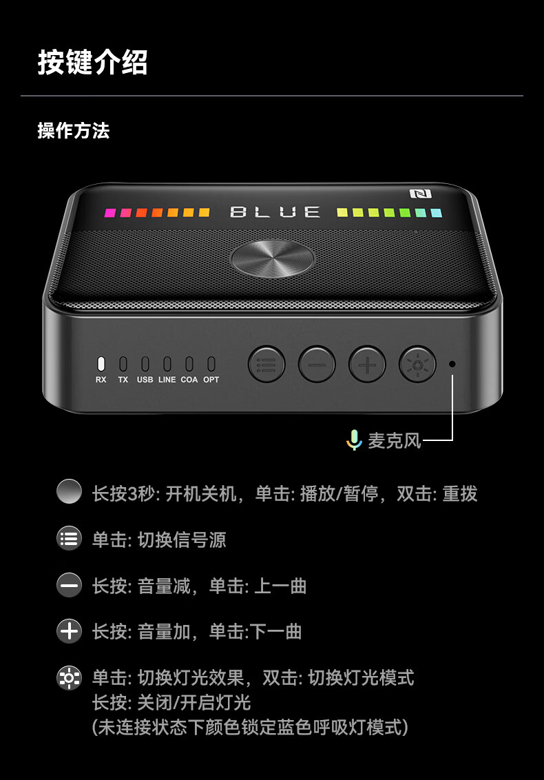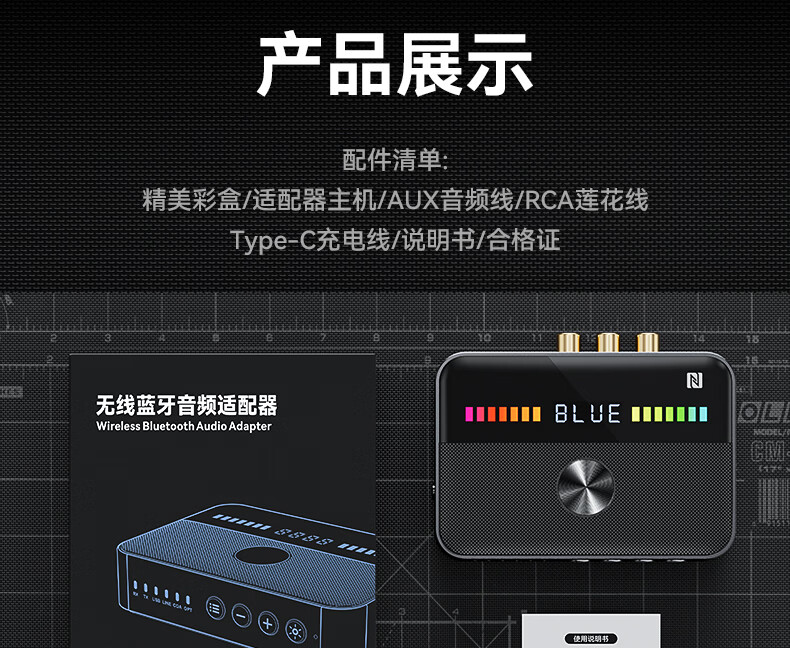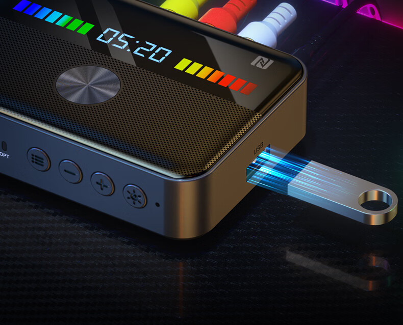 雷翼(RAYEE)蓝牙接收器6.0转音箱响功放机NFC触连U盘TF卡播放同轴光纤接电视电脑发射音频适配器 绅士黑 【升级版】一发两收