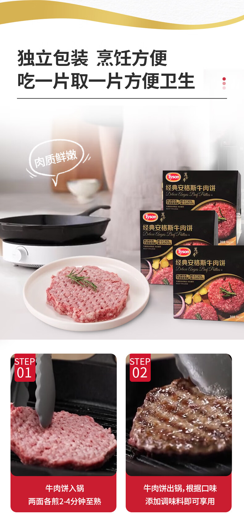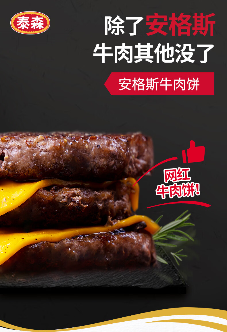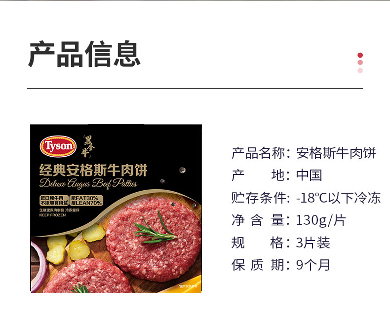 泰森(Tyson)冷冻安格斯牛肉饼汉堡肉饼烧烤空气炸锅早餐半成品生鲜食材 安格斯牛肉饼390g*3盒(共2.34斤)