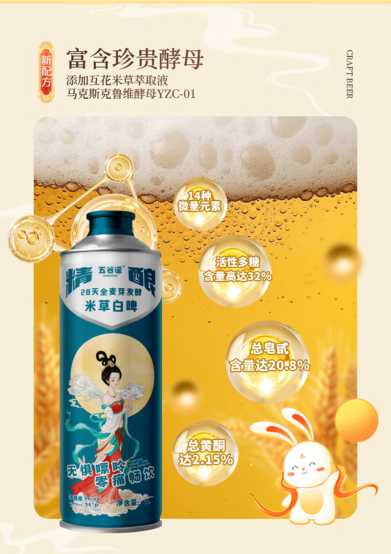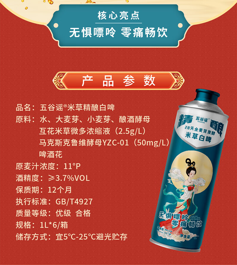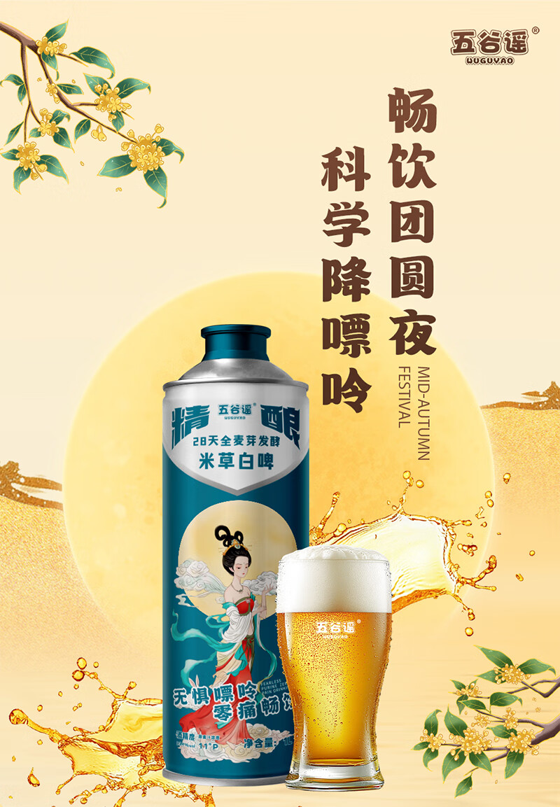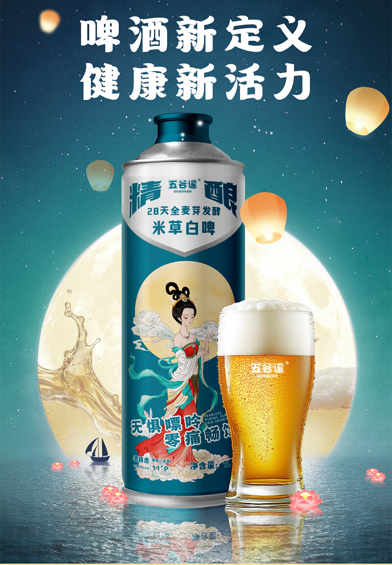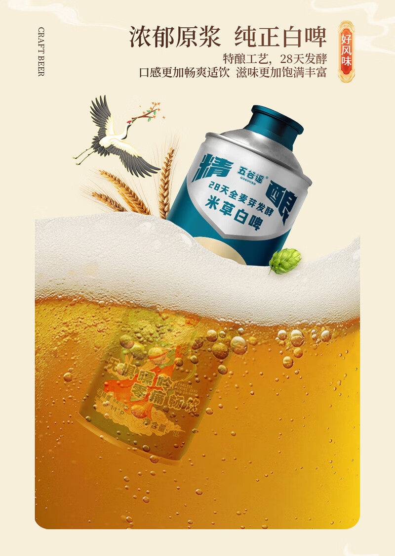 五谷谣米草精酿白啤国风款 互花米草萃取液+益生菌专利配方 啤酒 整箱装