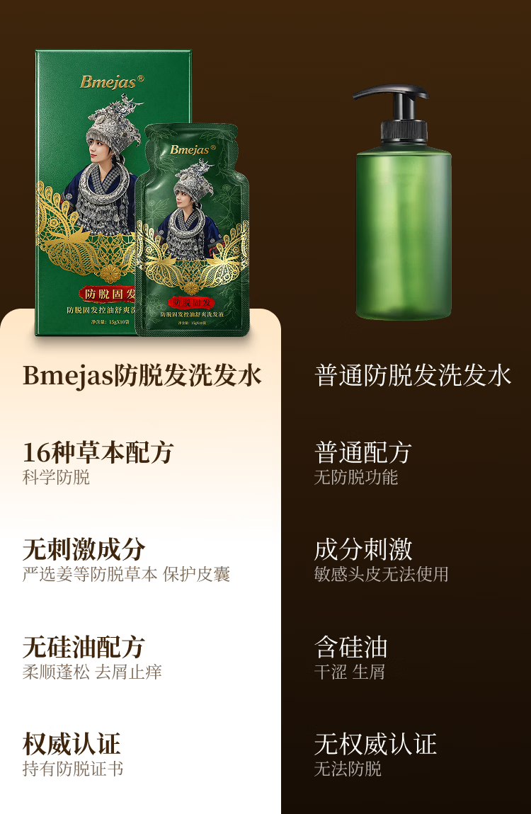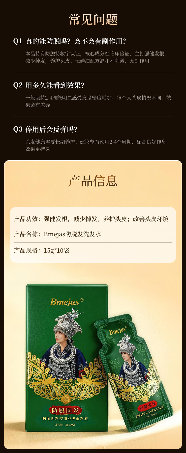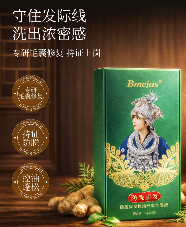 Bmejas美爵仕防脱洗发水袋装生姜洗发水防脱育发固发养发增发密发 古法传承防脱【一盒】
