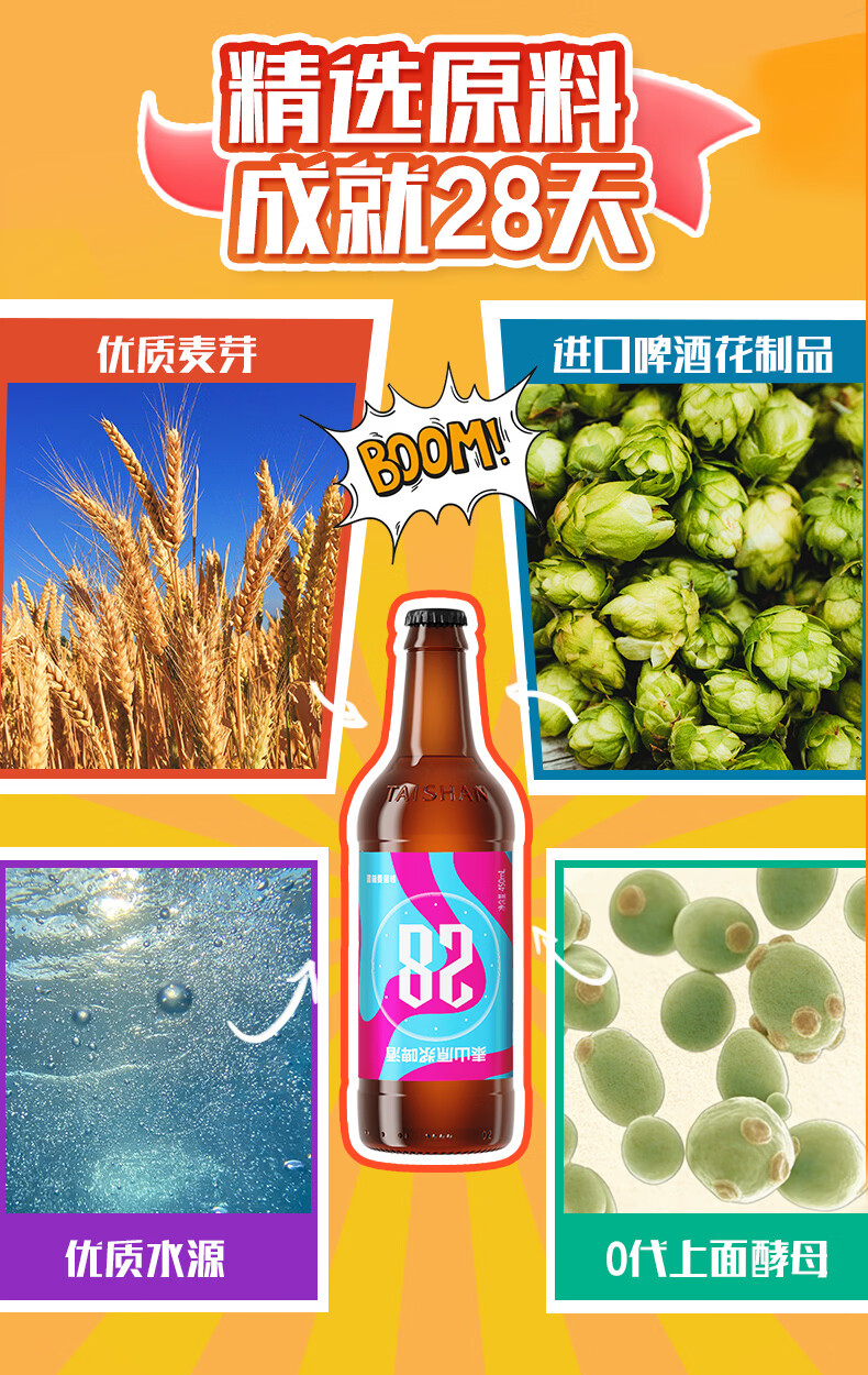 泰山啤酒泰山原浆啤酒9度28天新鲜9度倒标全麦芽酿造啤酒 28天两箱装 450mL