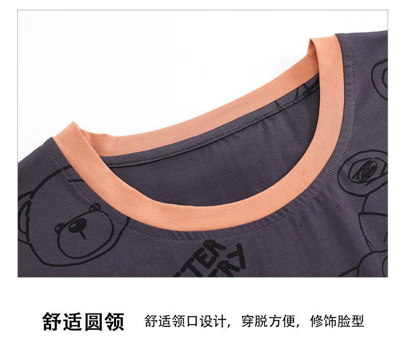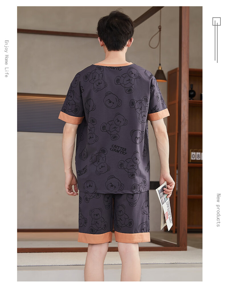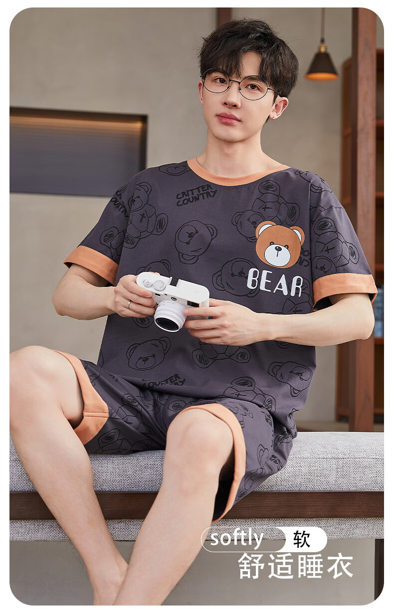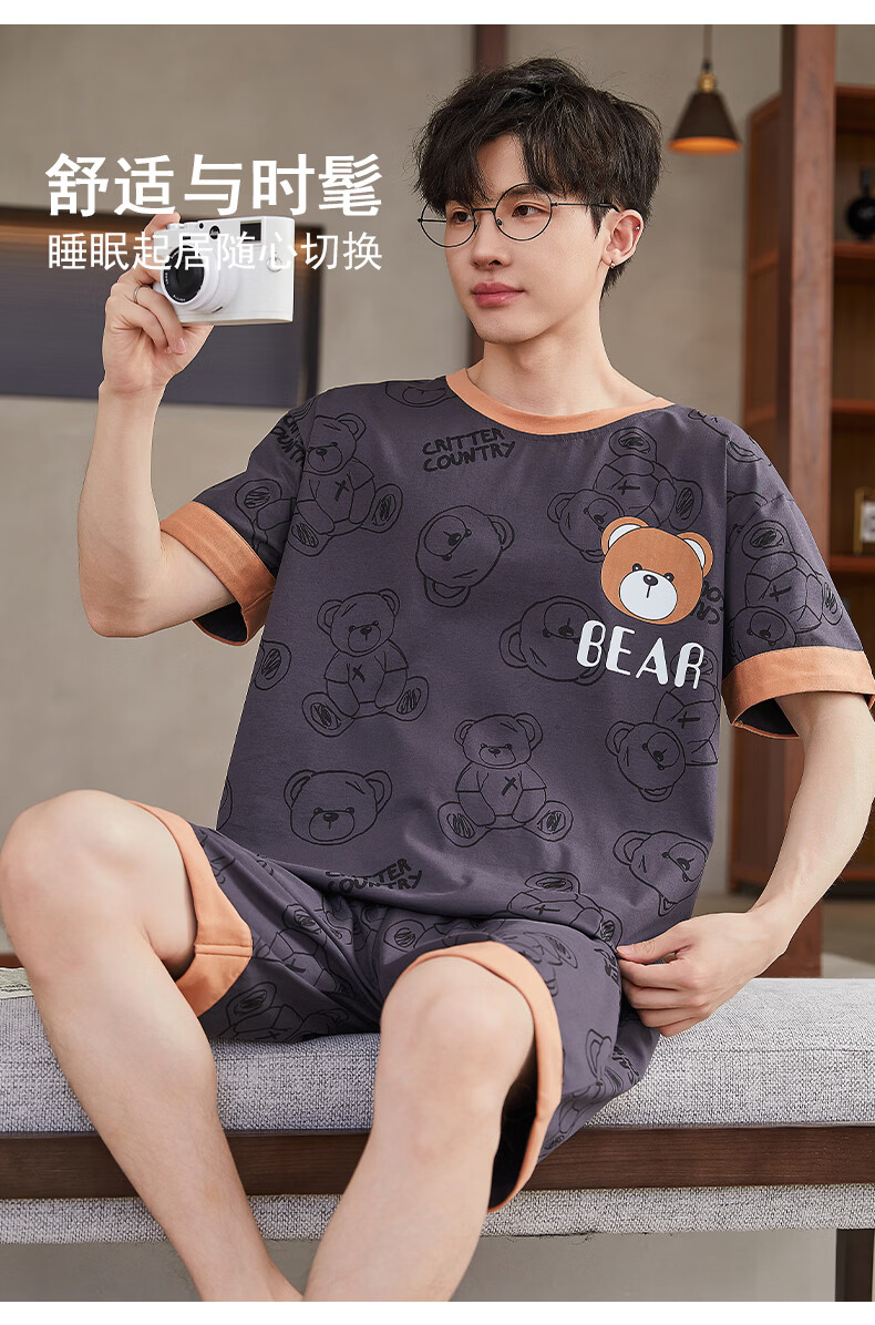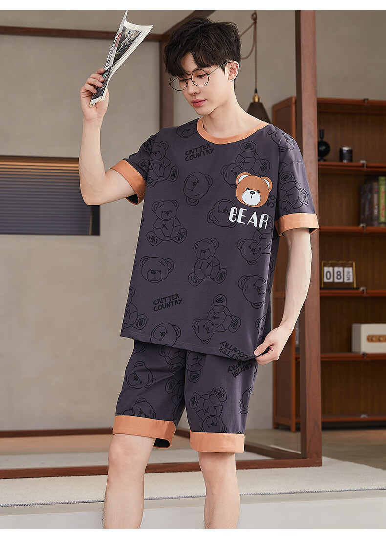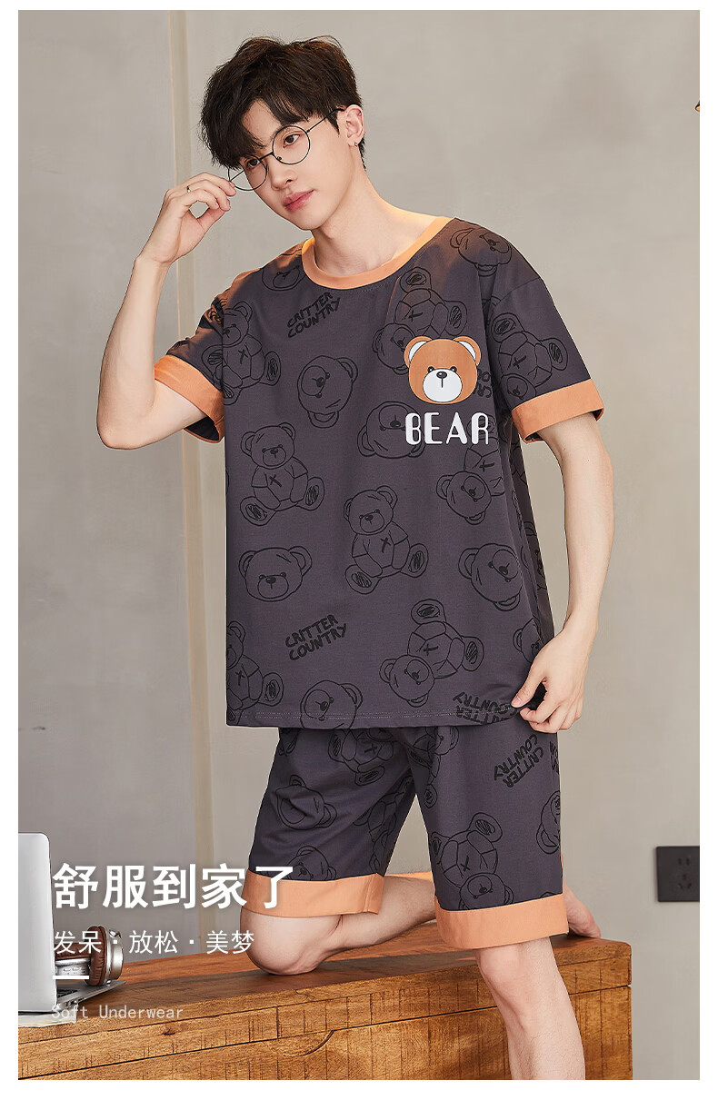 芬腾可安(FENTENGCARE)【N】男士圆领睡衣夏季卡通简约短袖短裤套装宽松大码休闲家居服 57062 M