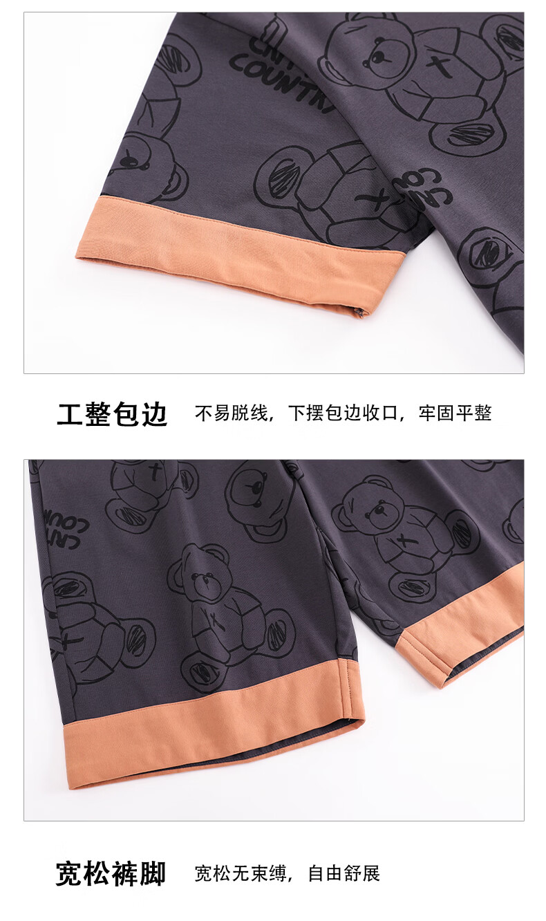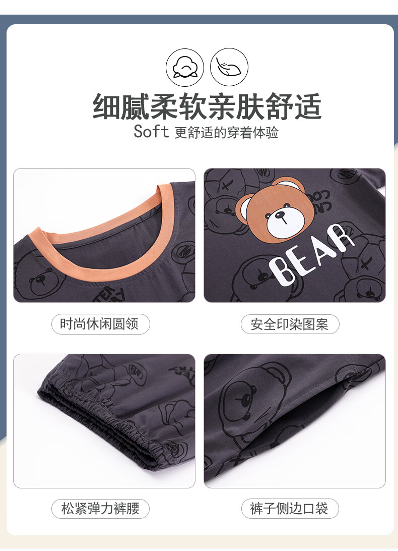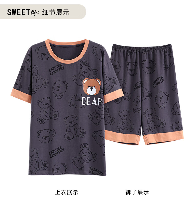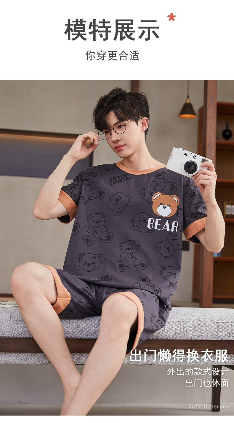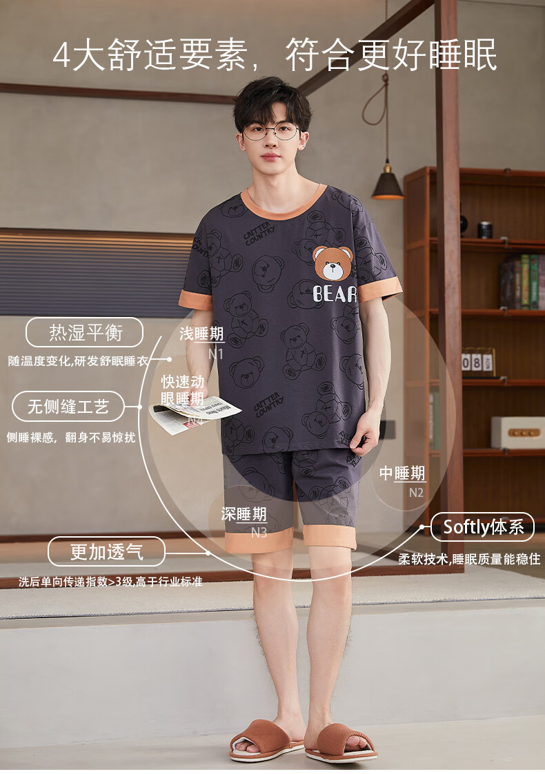芬腾可安(FENTENGCARE)【N】男士圆领睡衣夏季卡通简约短袖短裤套装宽松大码休闲家居服 57062 M