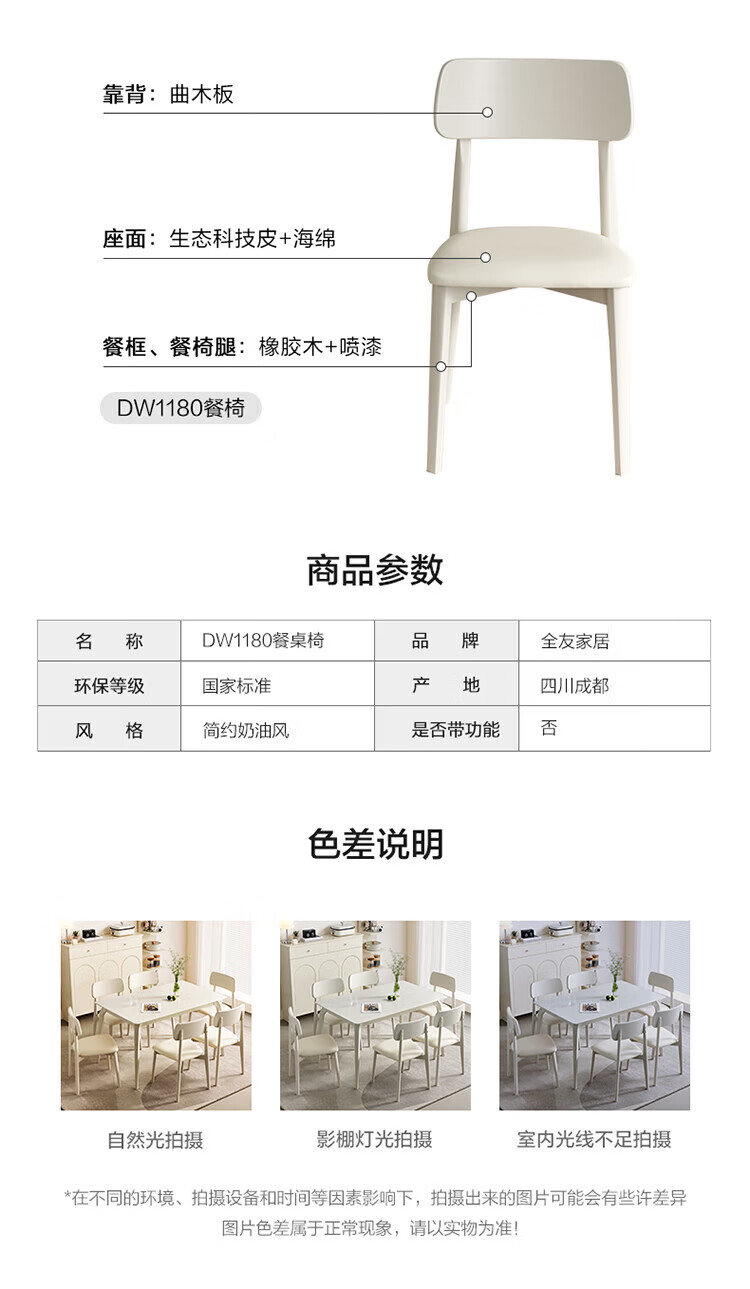 全友家居餐椅现代简约风书桌椅椅子家用靠背椅牛角椅麻将椅【合集】 DW1185餐椅B米灰色(1包2把)