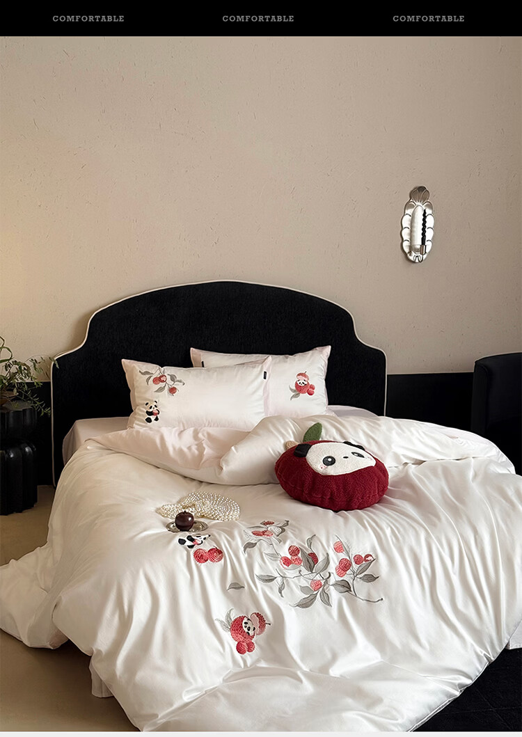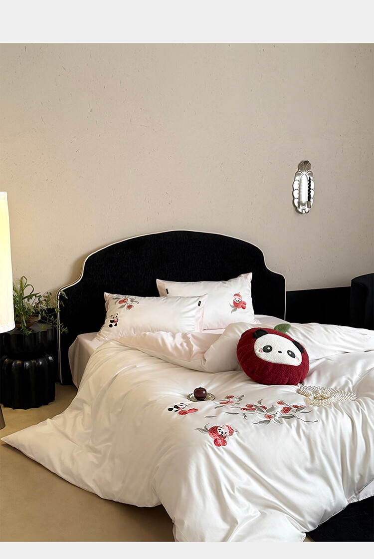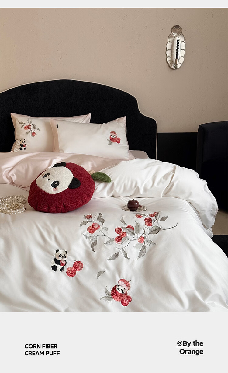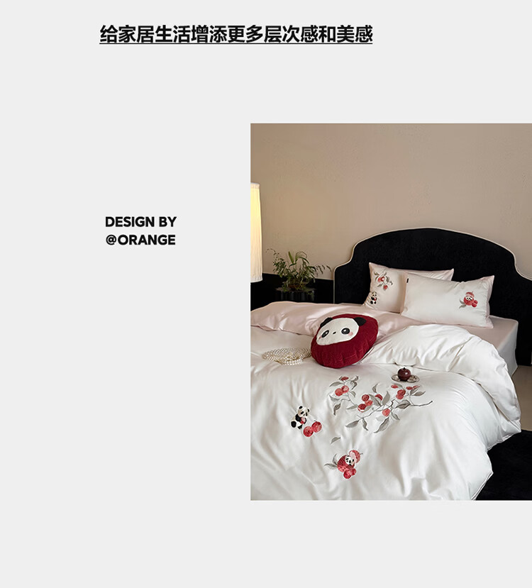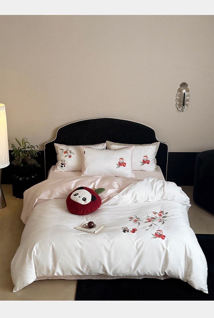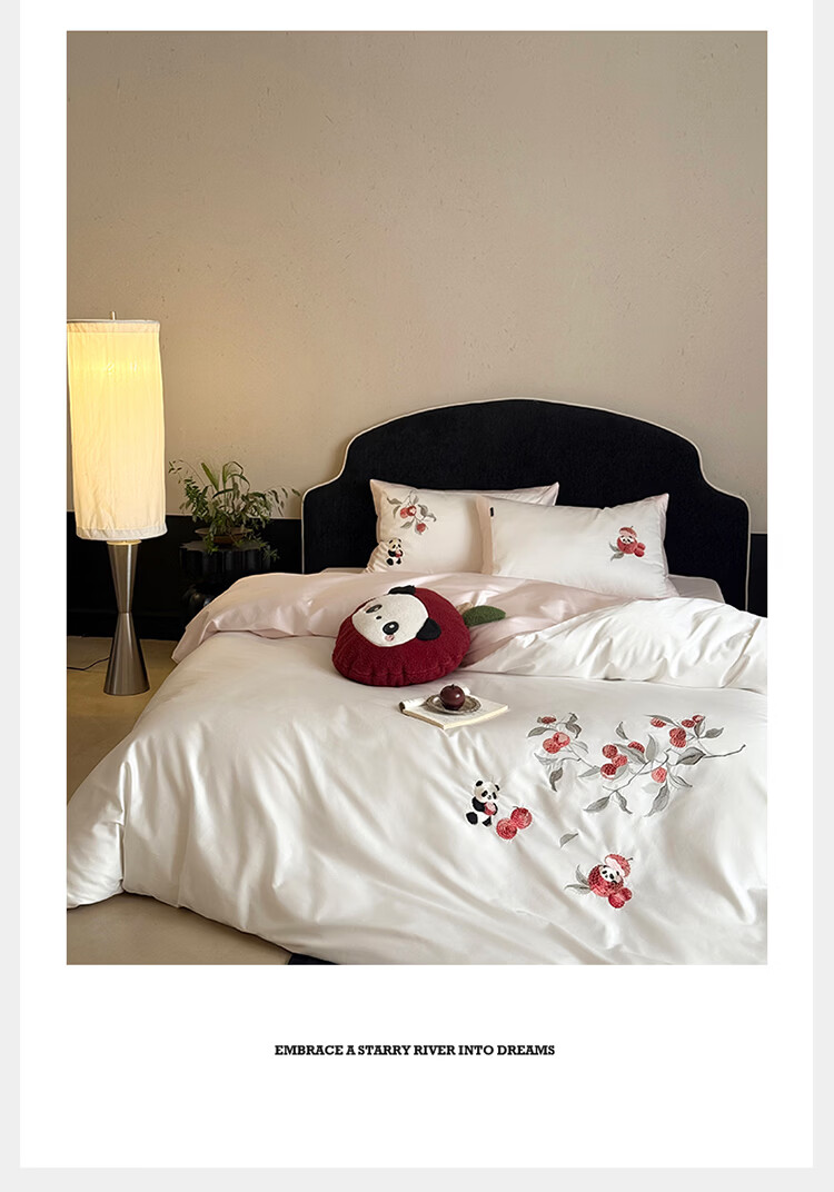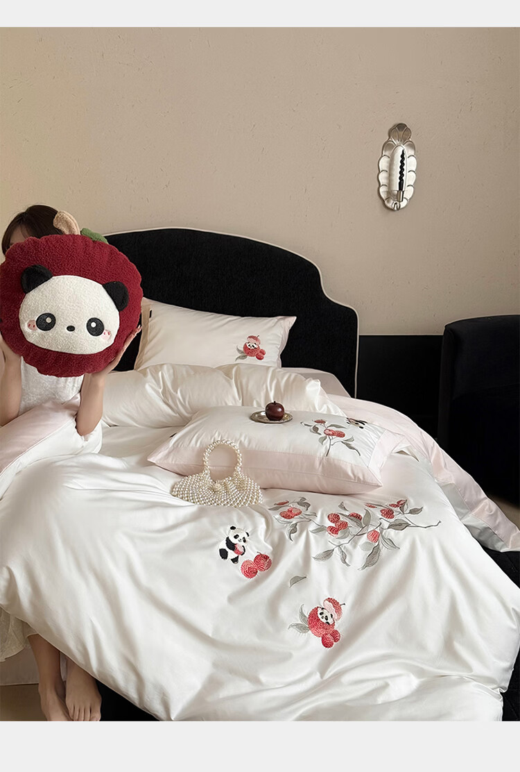 ROLAND LIVE春季新款长绒棉精密刺绣四件套可爱熊猫儿童卧室被套全棉三件套 LB 长绒棉套件-熊猫荔荔粉色 1.2米床 床单款 【被套150*200cm】