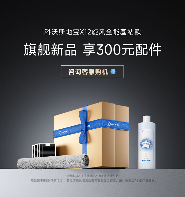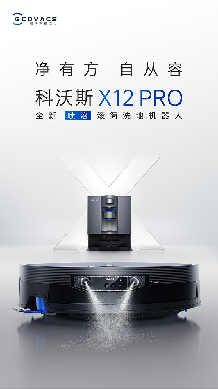 科沃斯X12 旋风集尘扫地机器人【重磅新品】扫拖洗烘一体自动清洗自动集尘灵渍喷溶滚筒洗地机器人水箱版