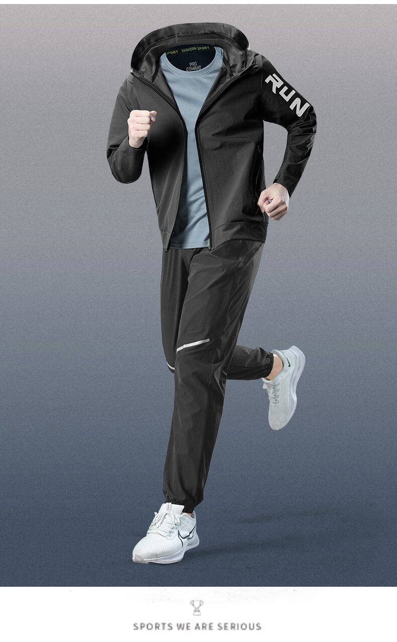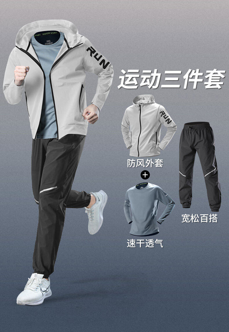 【跑步必备】跑步运动套装男秋季晨跑训练速干长袖长裤健身衣服 三件套、J91绿+T86灰+W281【速干-透气-薄款】 2XL 【140-160斤】