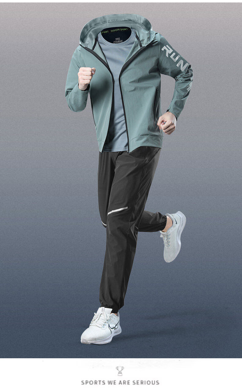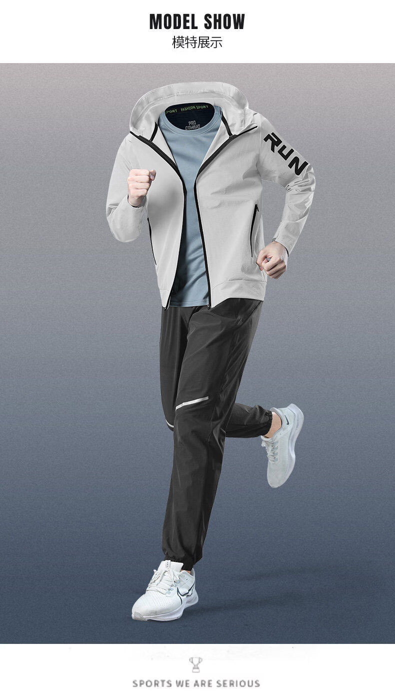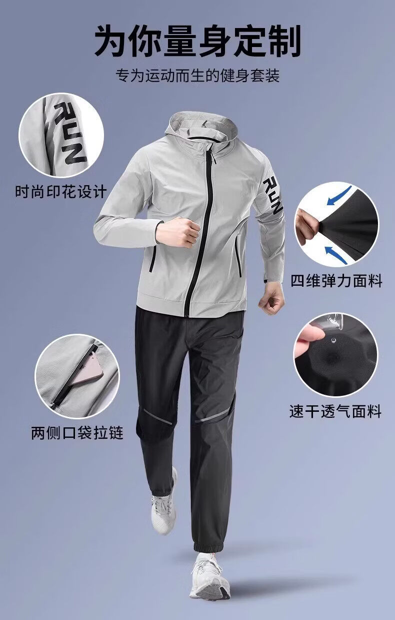 运动外套男薄款单层健身风衣防风训练上衣跑步服速干户外骑行新款 J91绿 【薄款防风】 XL 【120-140斤】