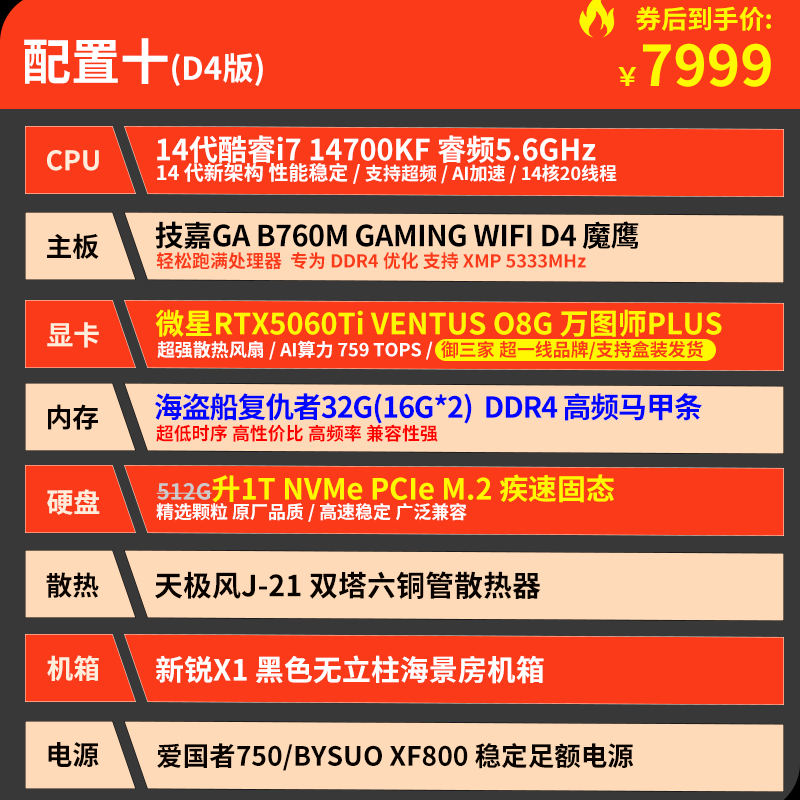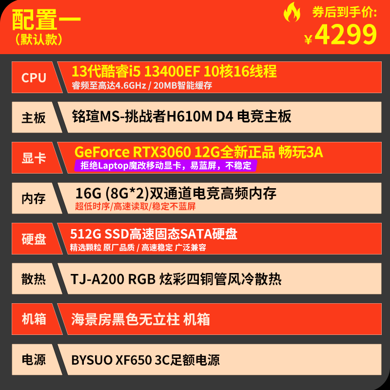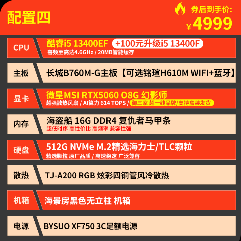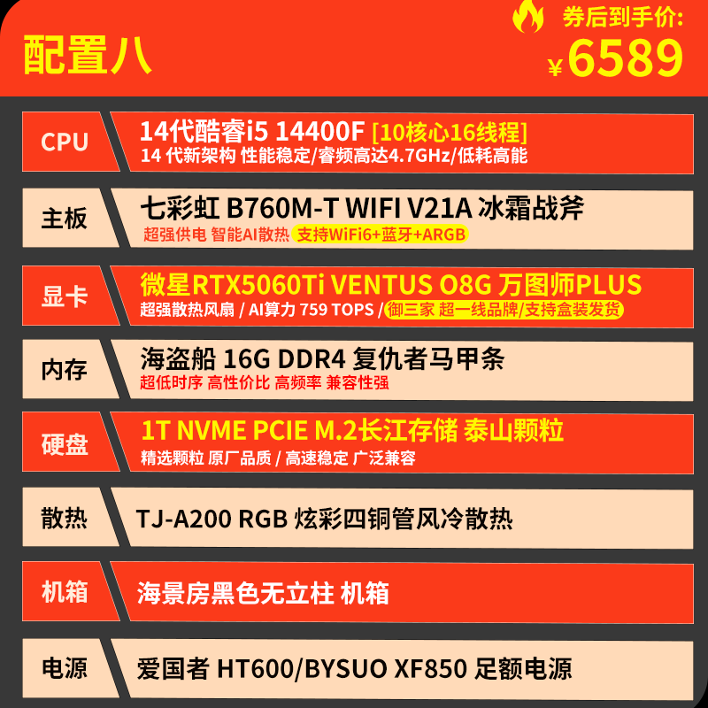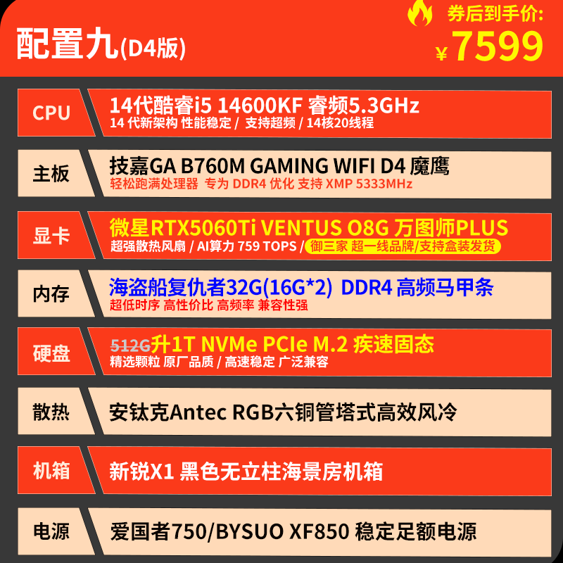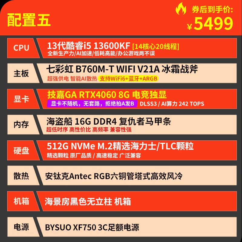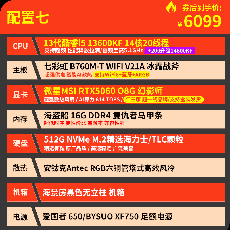 技嘉 酷睿i5 13400F升15代245KF台式组装电脑主机RTX4060Ti/5060Ti游戏高端电竞独显直播设计渲染整机 配置六:U5 230F 丨RTX5060