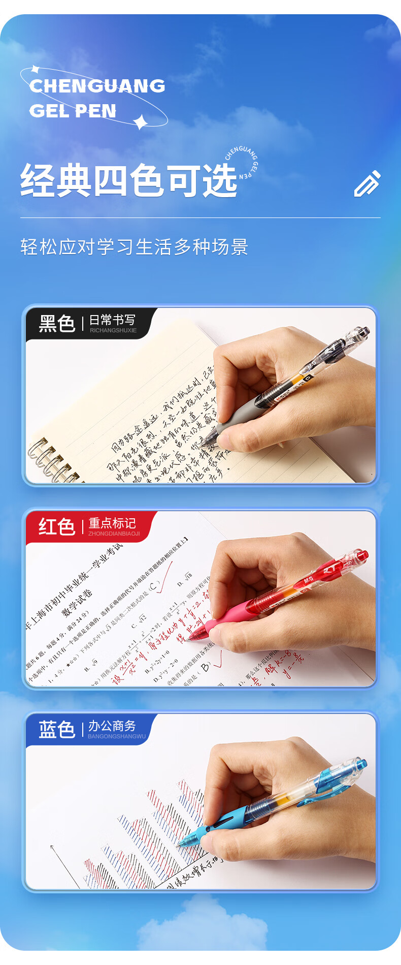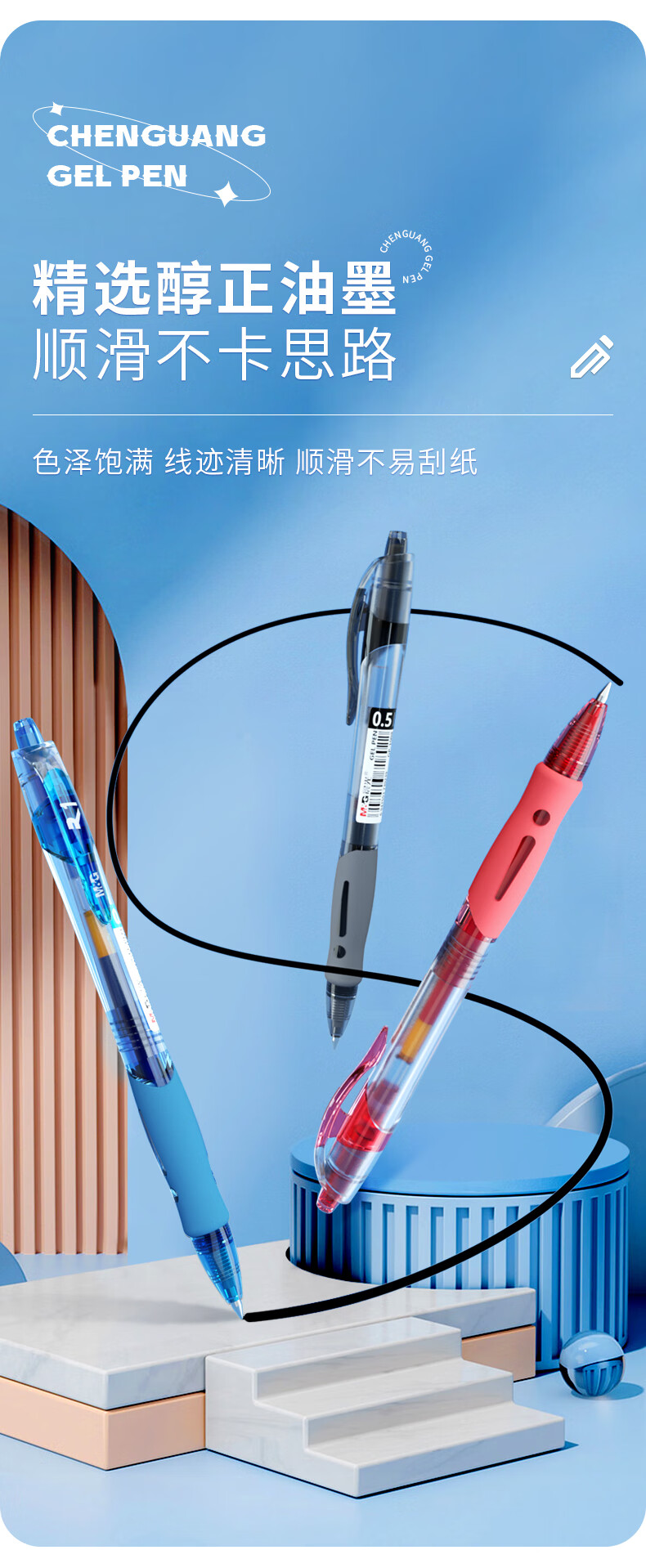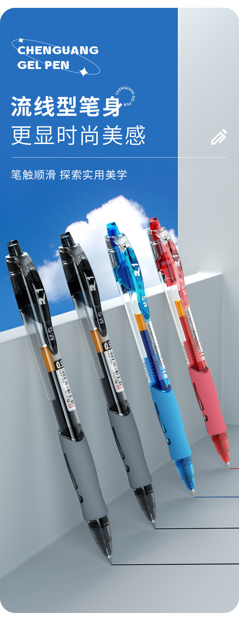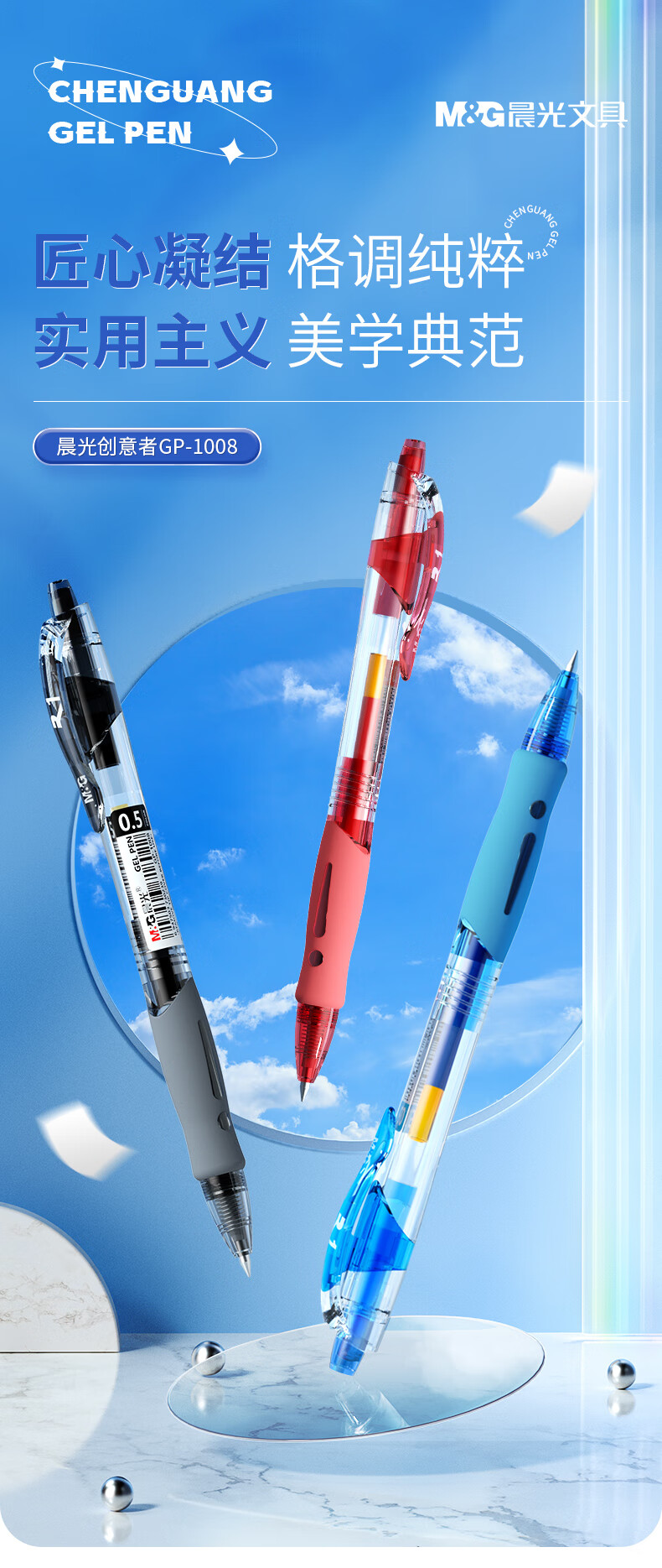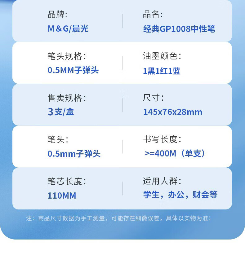 晨光(M&G)文具GP1008按动中性笔学生0.5签字笔商务子弹头考试专用水笔办公用品 1黑1蓝1红 GP1008-ZZ
