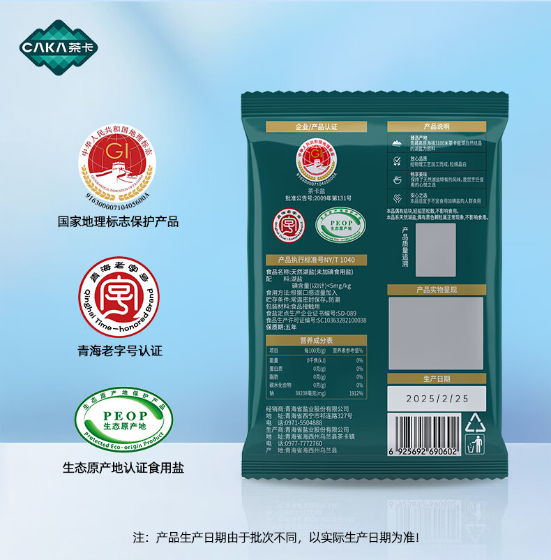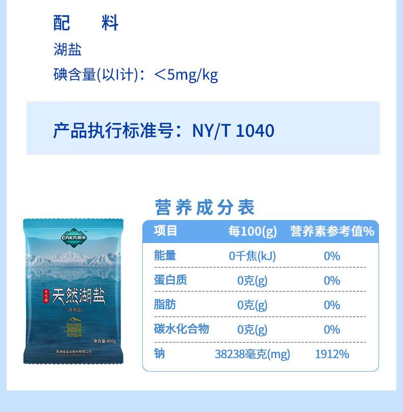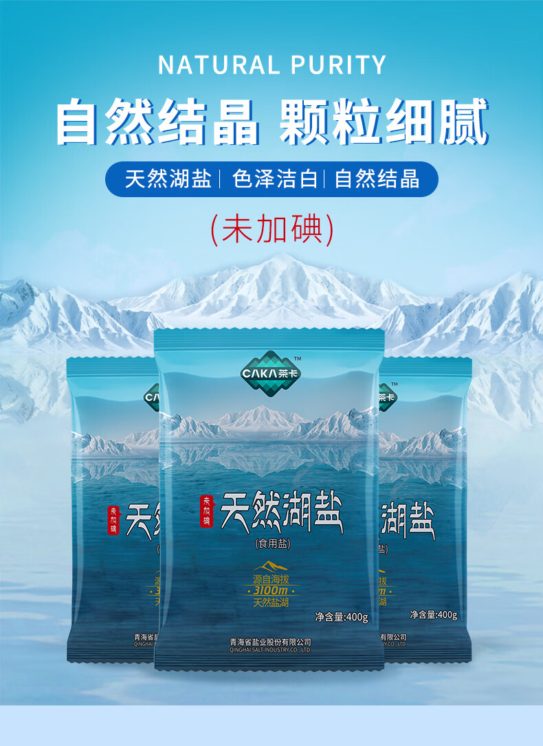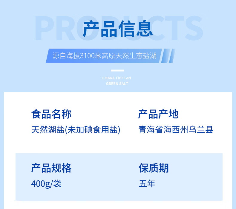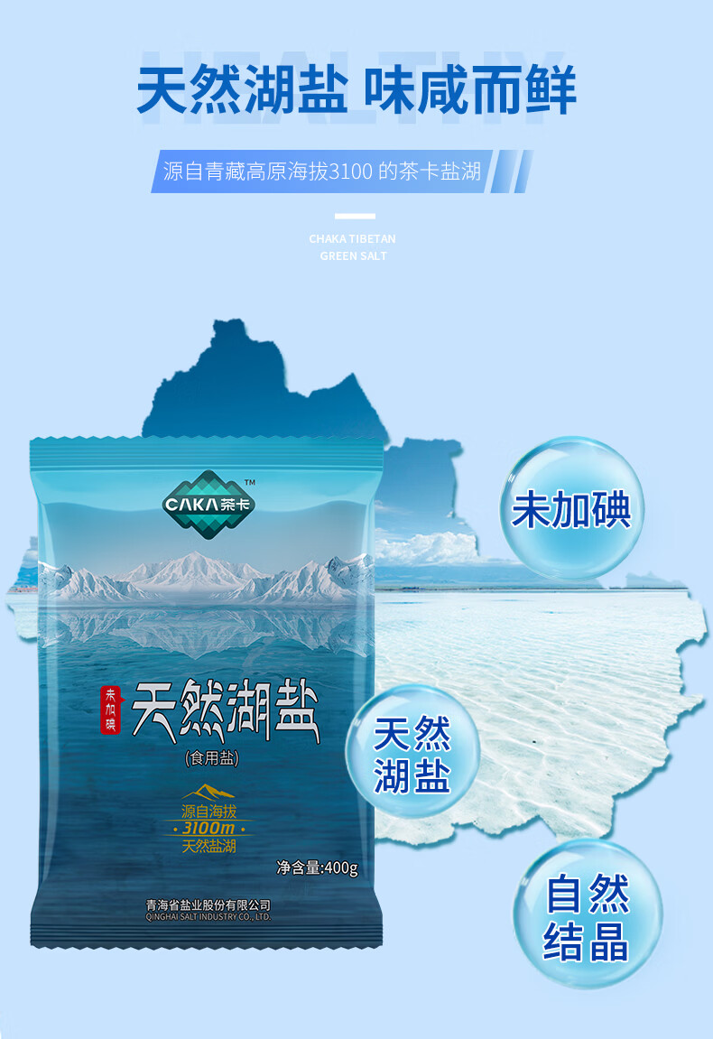 茶卡藏青盐青海湖盐不加碘食用盐家用调料无抗结剂0添加天然湖盐 (未加碘)茶卡天然湖盐400g*8包
