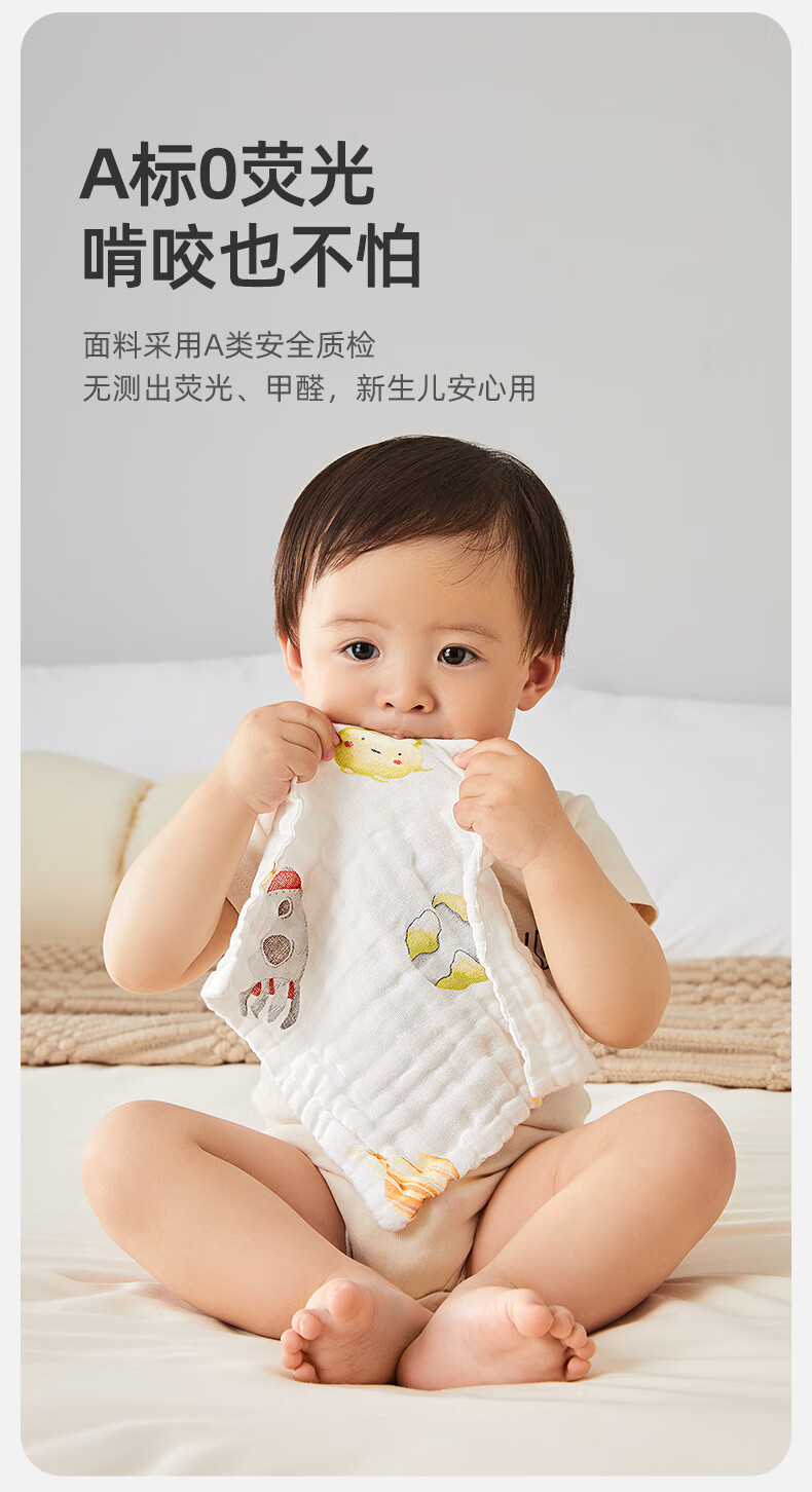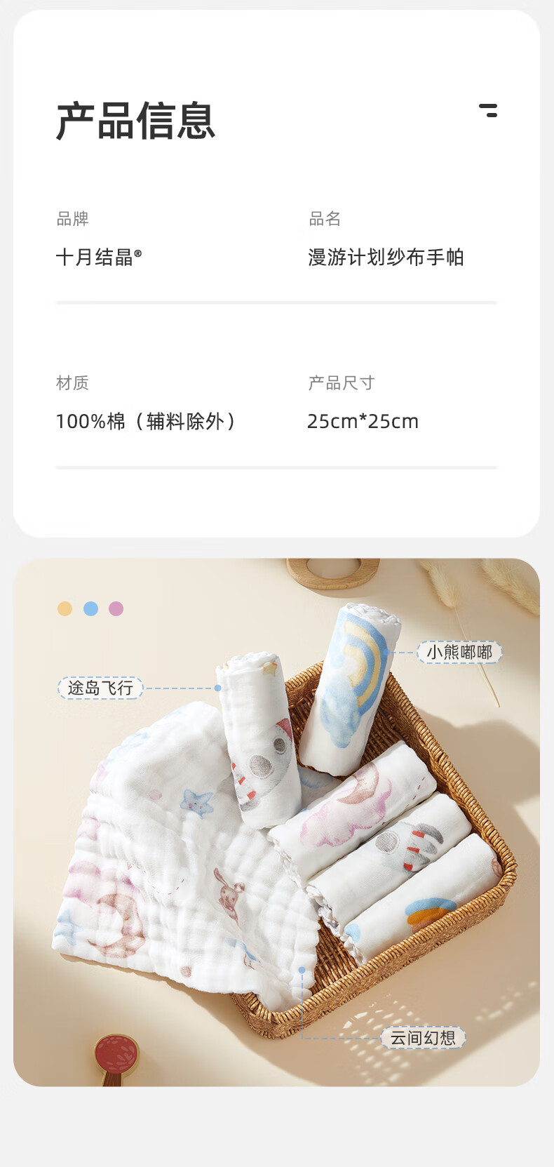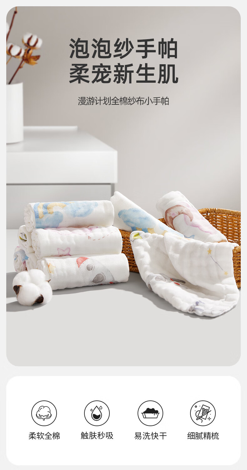 十月结晶婴儿纱布方巾手帕6层6条装纯棉口水巾超柔软可水洗 漫游计划25*25