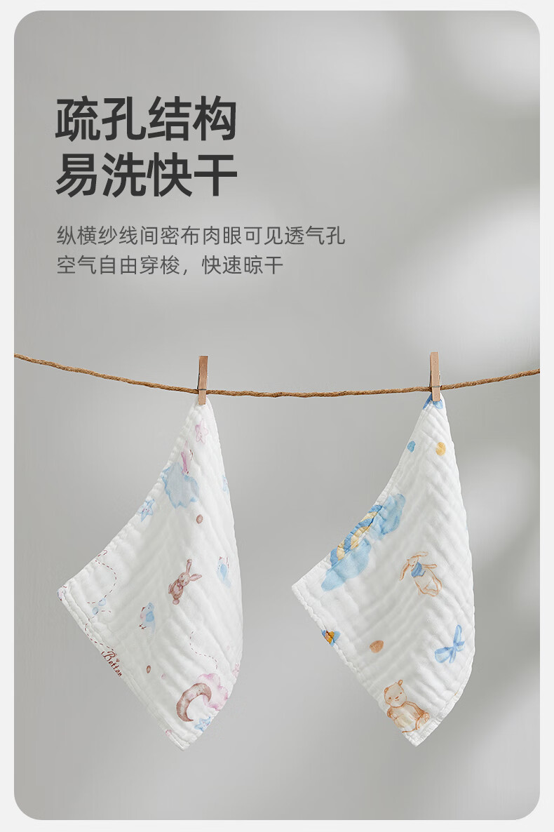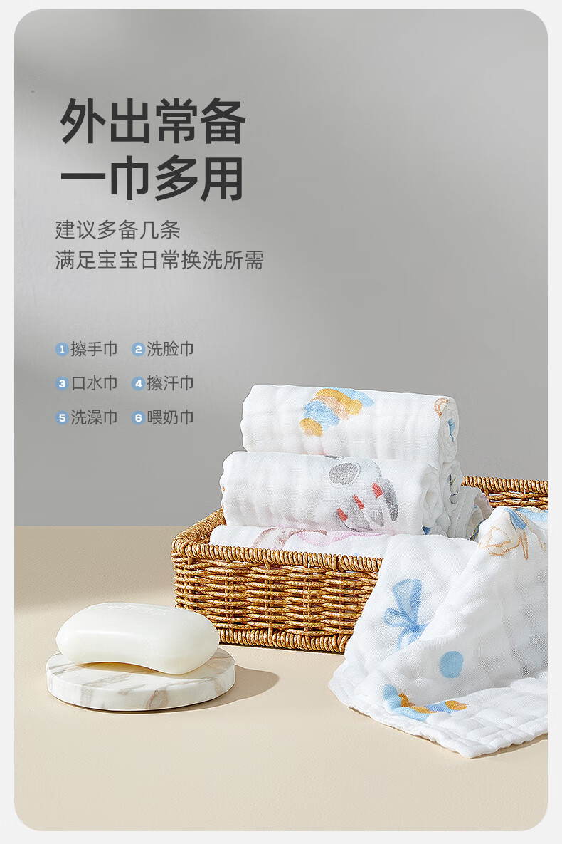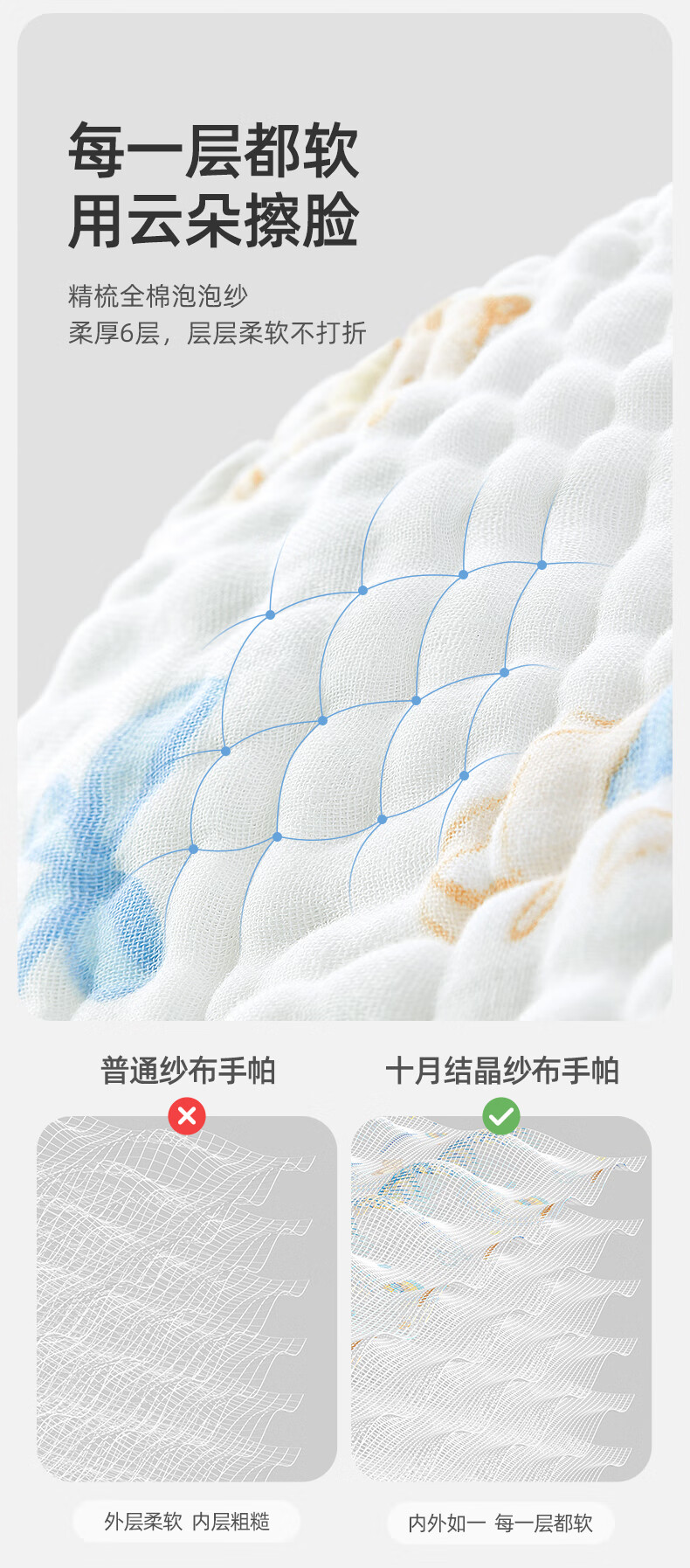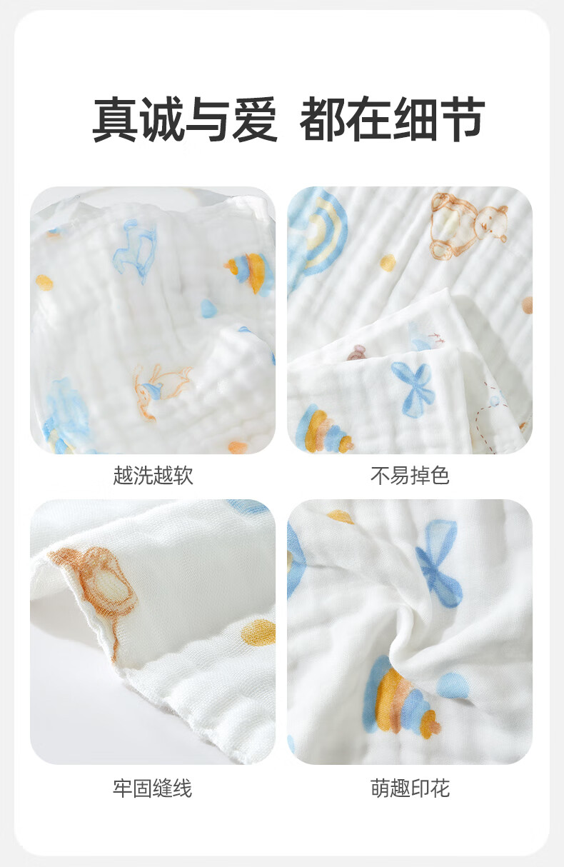 十月结晶婴儿纱布方巾手帕6层6条装纯棉口水巾超柔软可水洗 漫游计划25*25