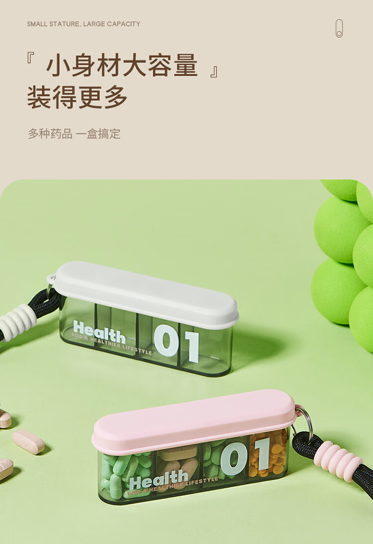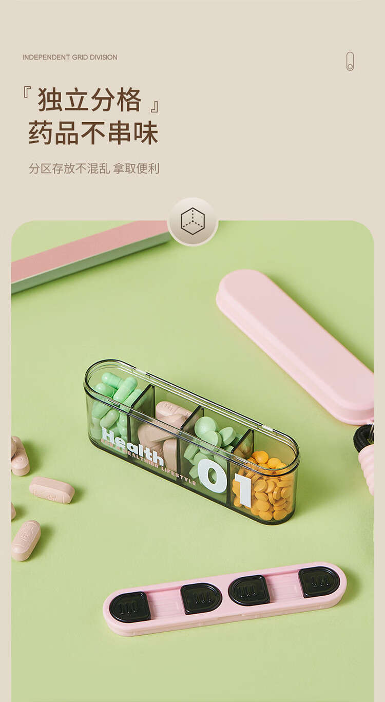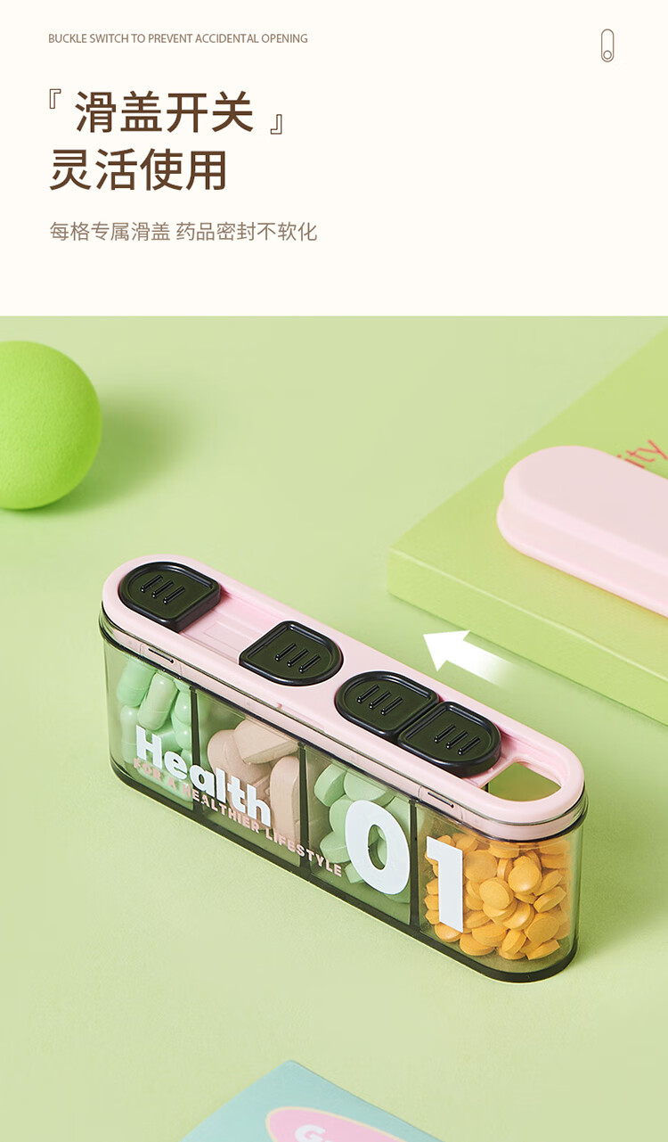 金隆兴便携式药盒分装盒旅行随身迷你药品药丸盒早中晚大容量4格七天装
