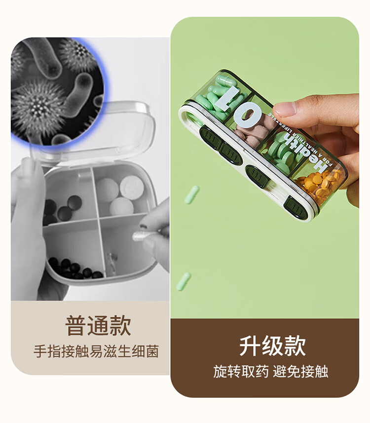 妙馨思药品分装药盒子便携吃药提醒器七天一周每日收纳盒随身分药器