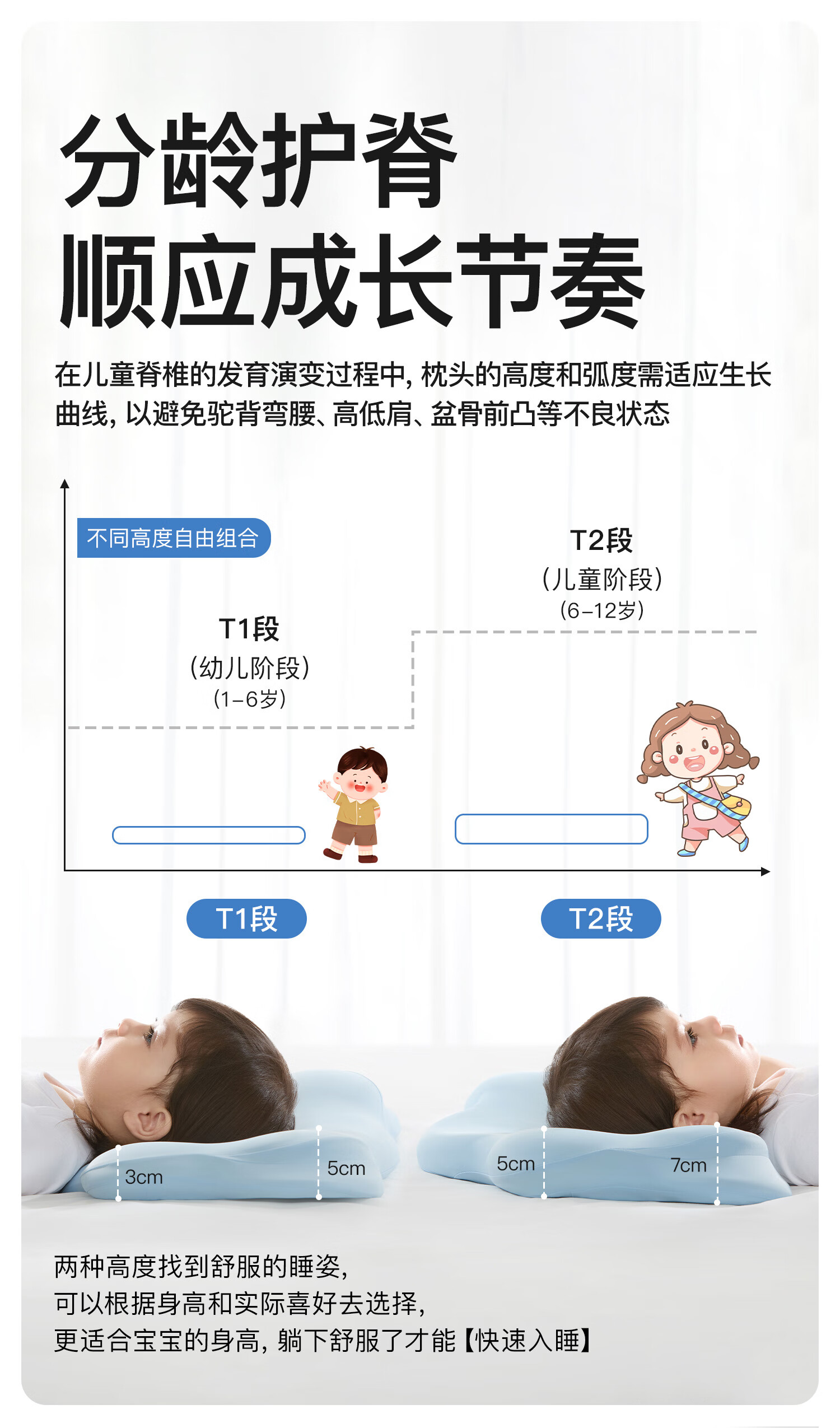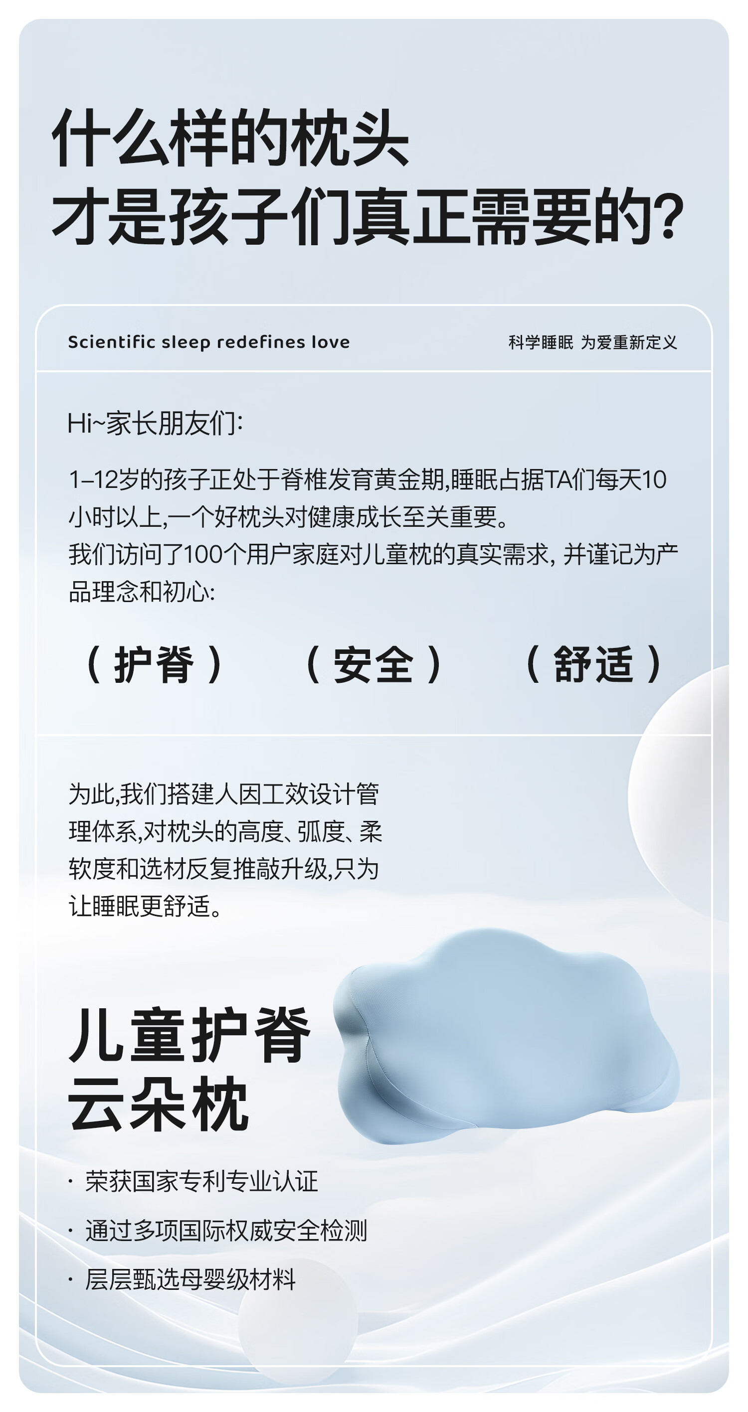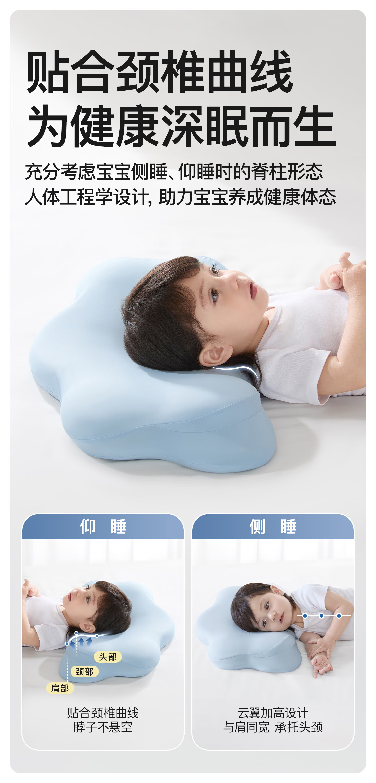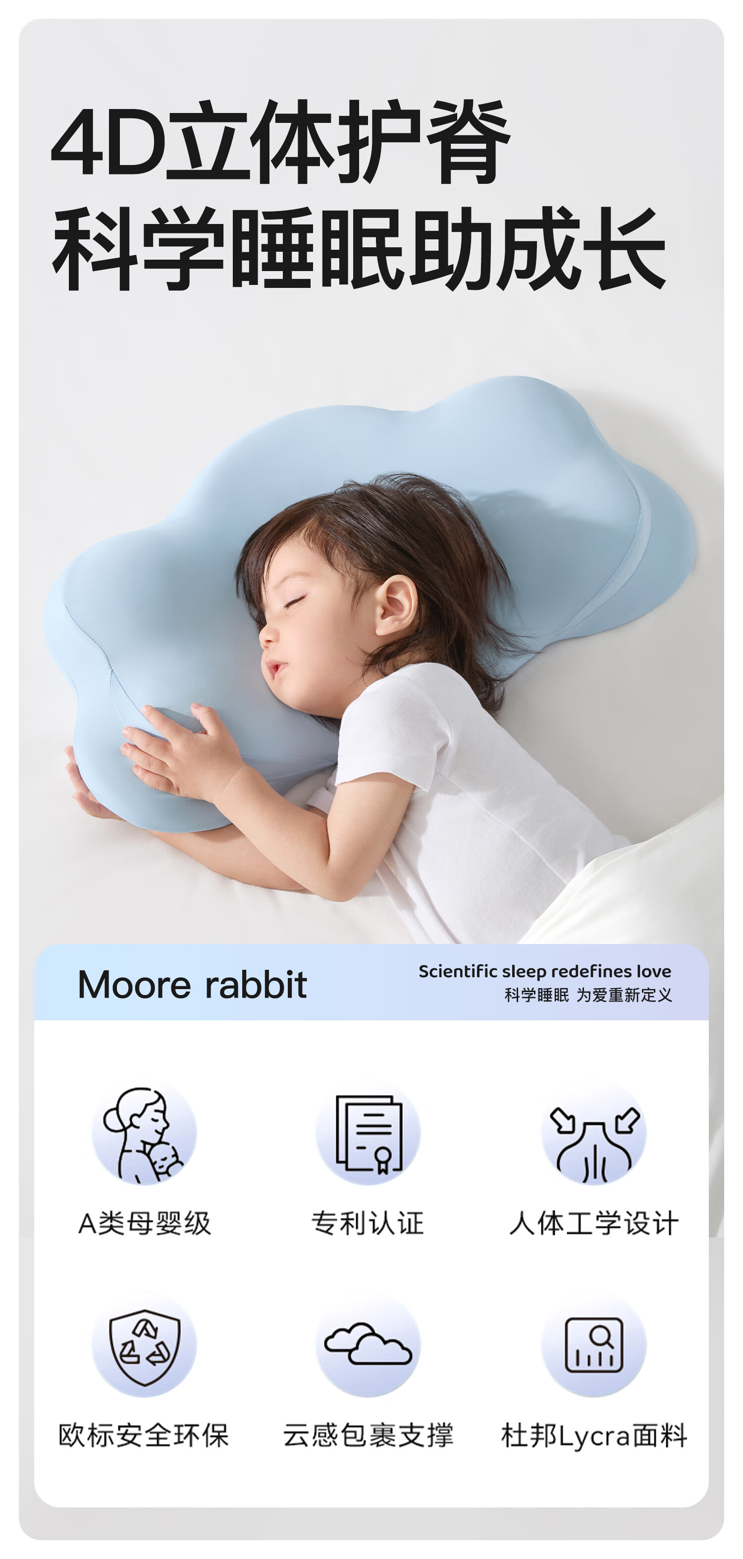 莫尔兔 儿童枕头云朵护脊枕凉感透气1-6岁四季婴儿男女宝宝记忆枕礼盒装