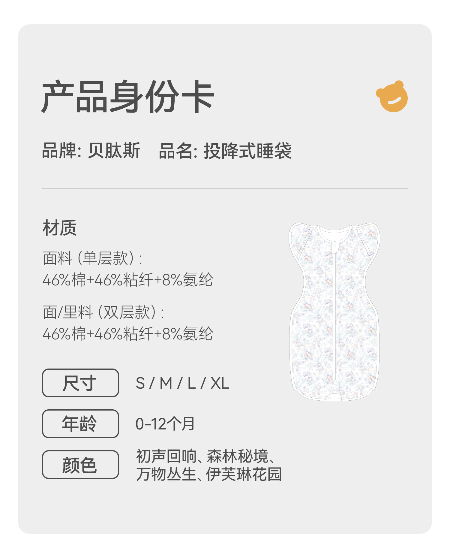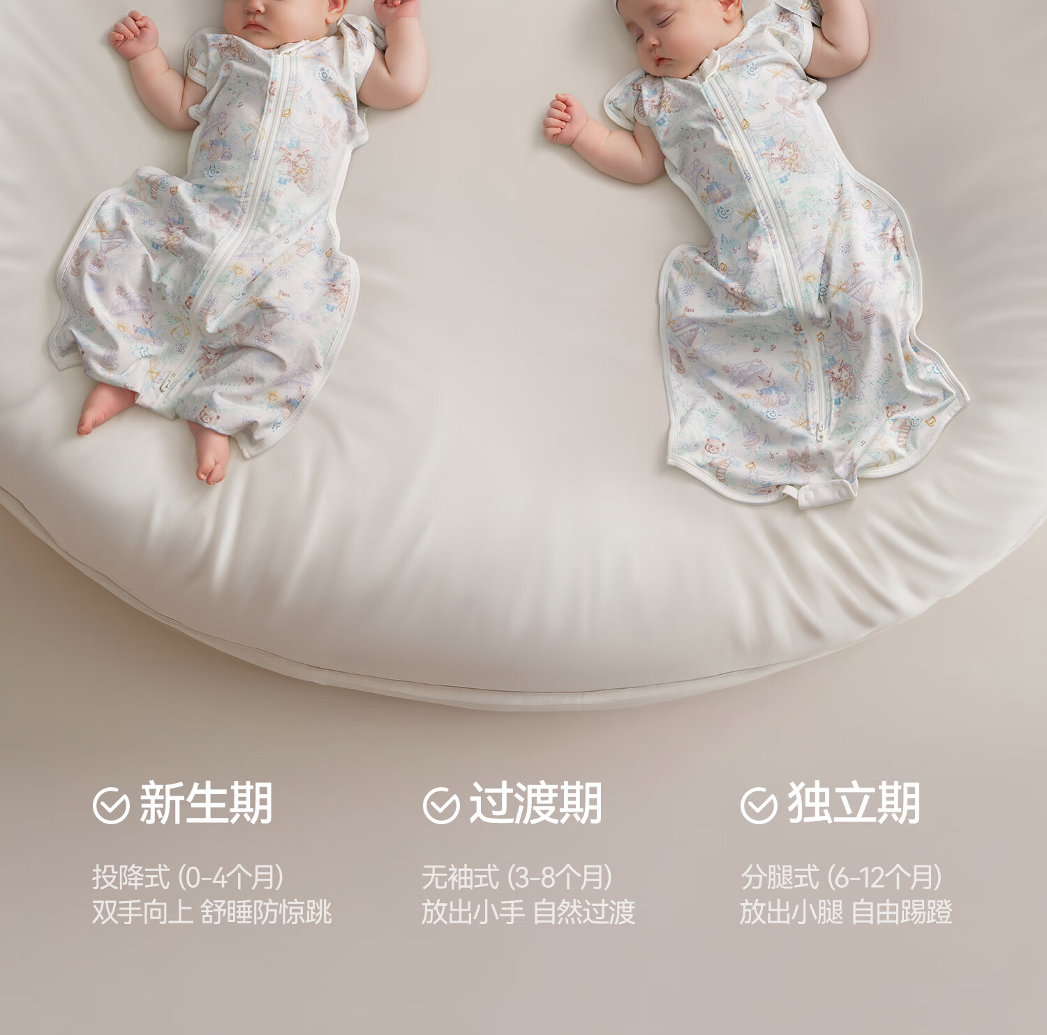 贝肽斯新生婴儿防惊跳睡袋胎脂皮投降式睡袋婴幼儿防踢被秋冬双层 秘境L