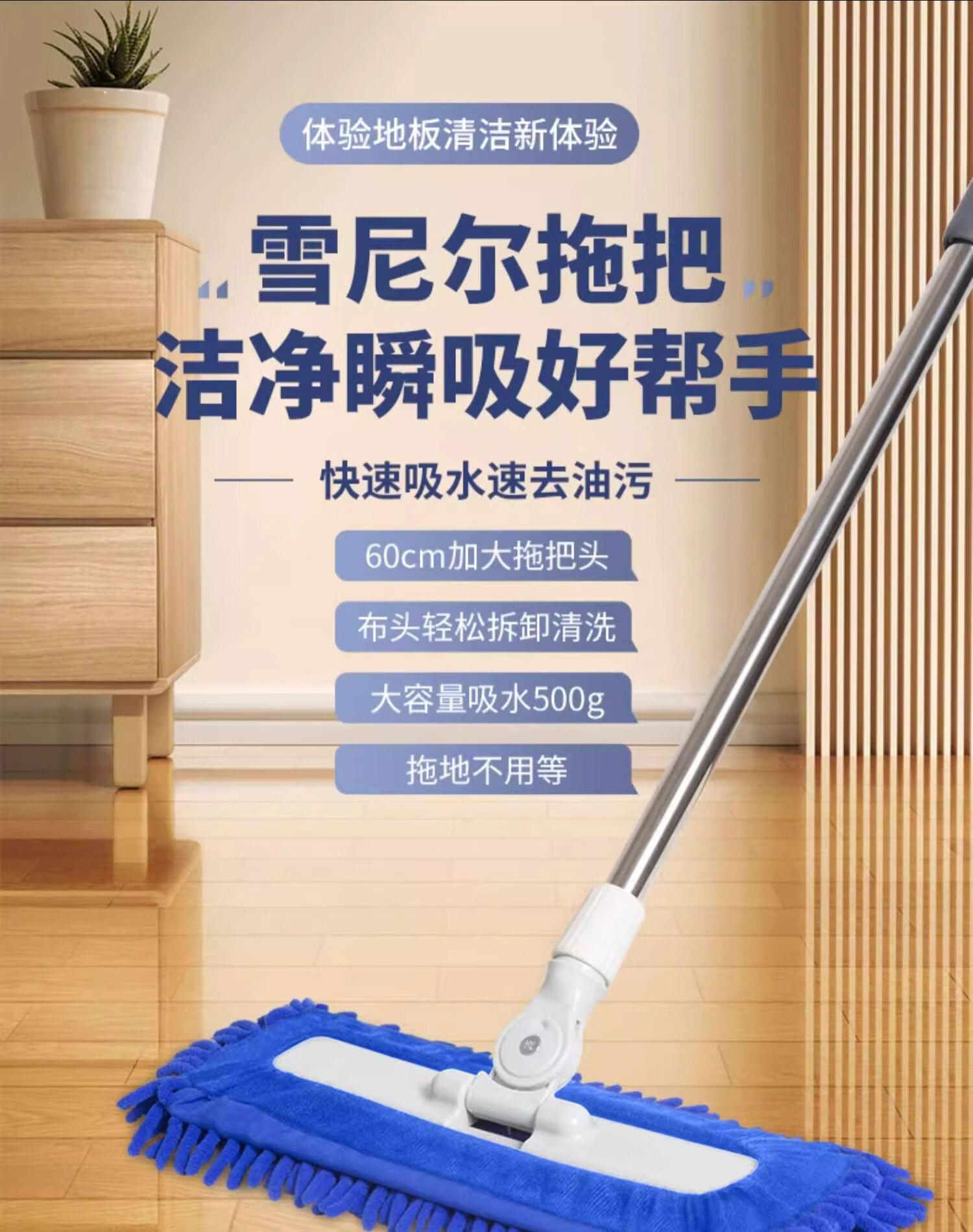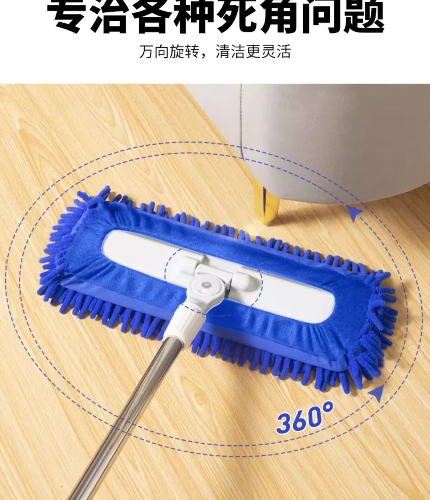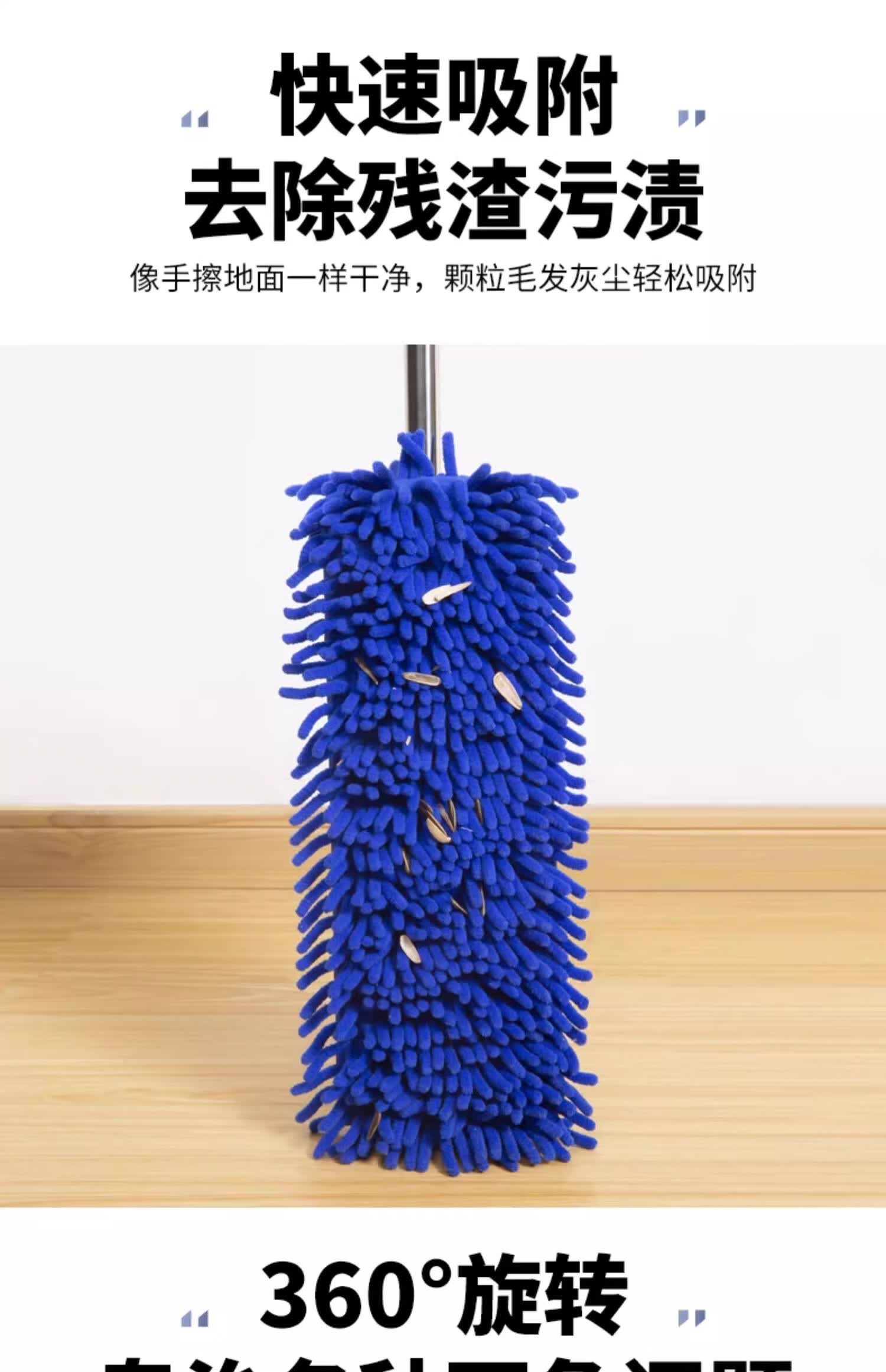贝净洁雪尼尔拖把2026新款平板毛毛虫家用吸水大面积商家政保洁专用尘推 40CM蓝色【加宽强劲吸水】共2布