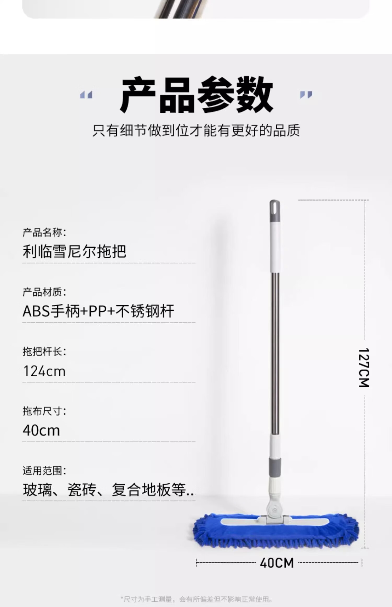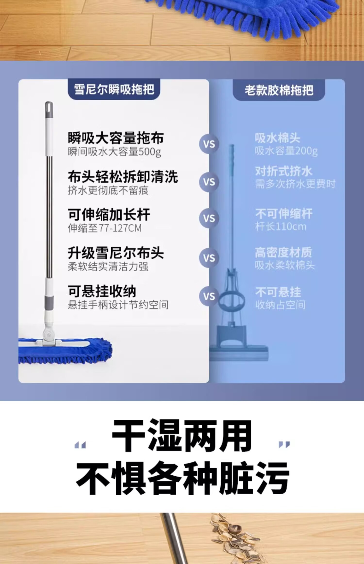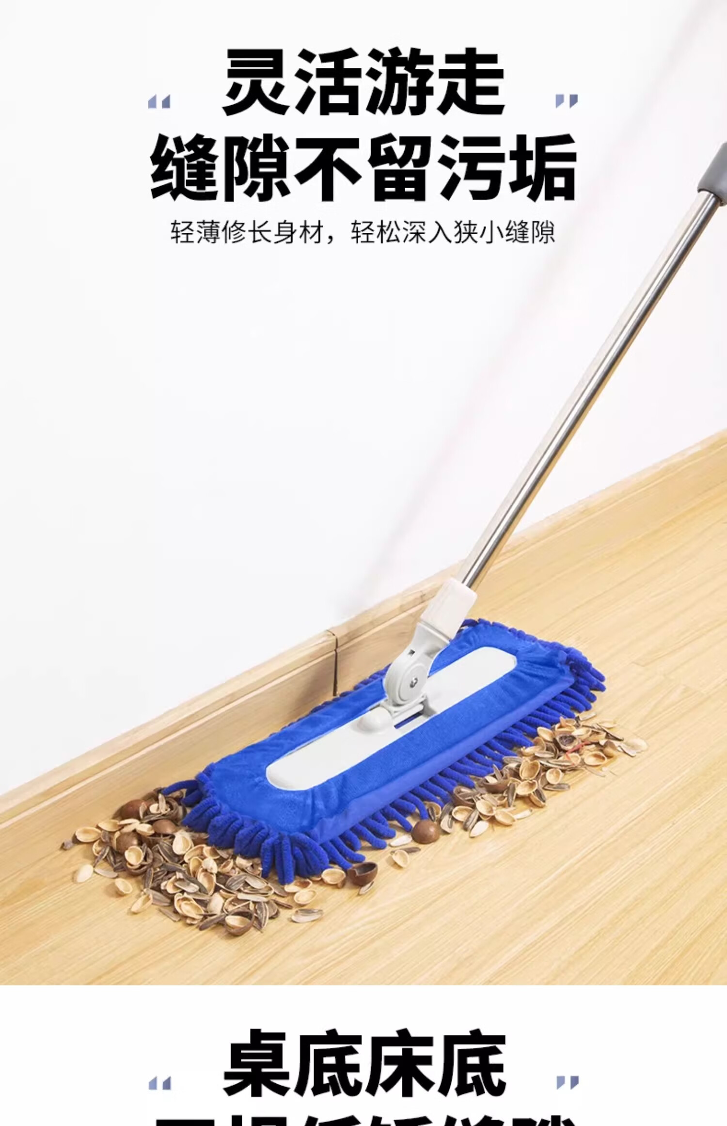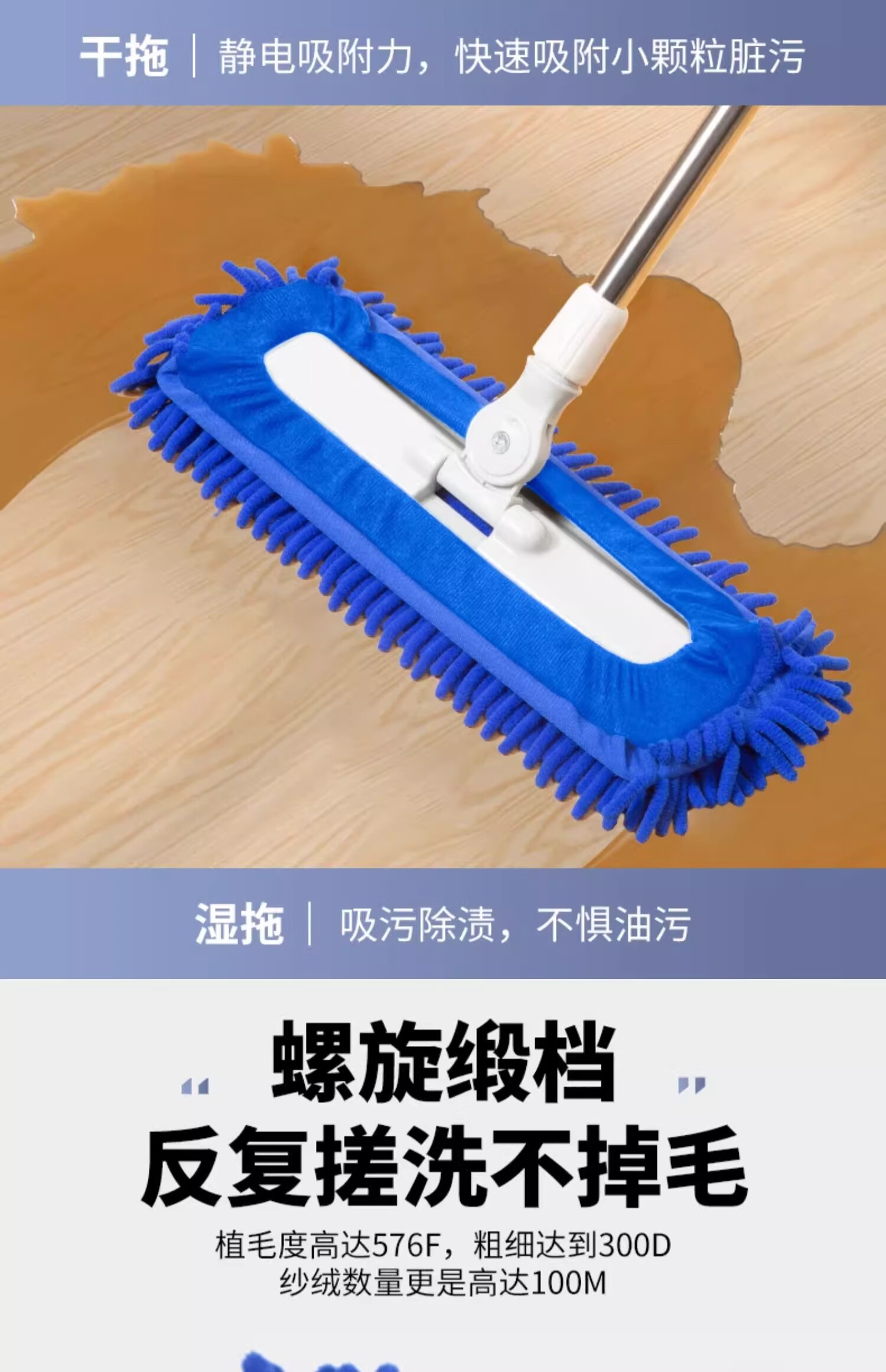 贝净洁雪尼尔拖把2026新款平板毛毛虫家用吸水大面积商家政保洁专用尘推 40CM蓝色【加宽强劲吸水】共2布