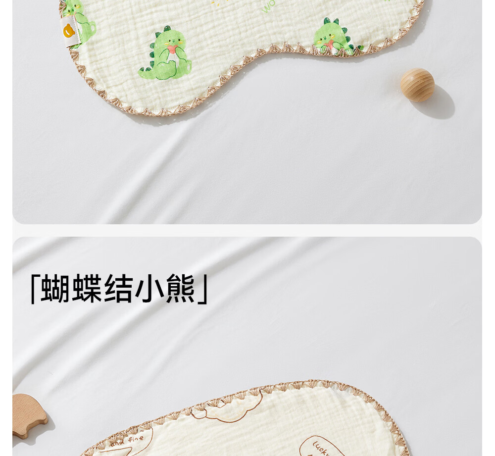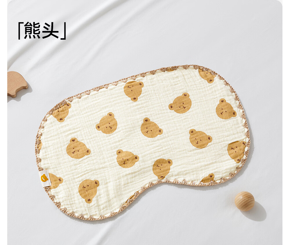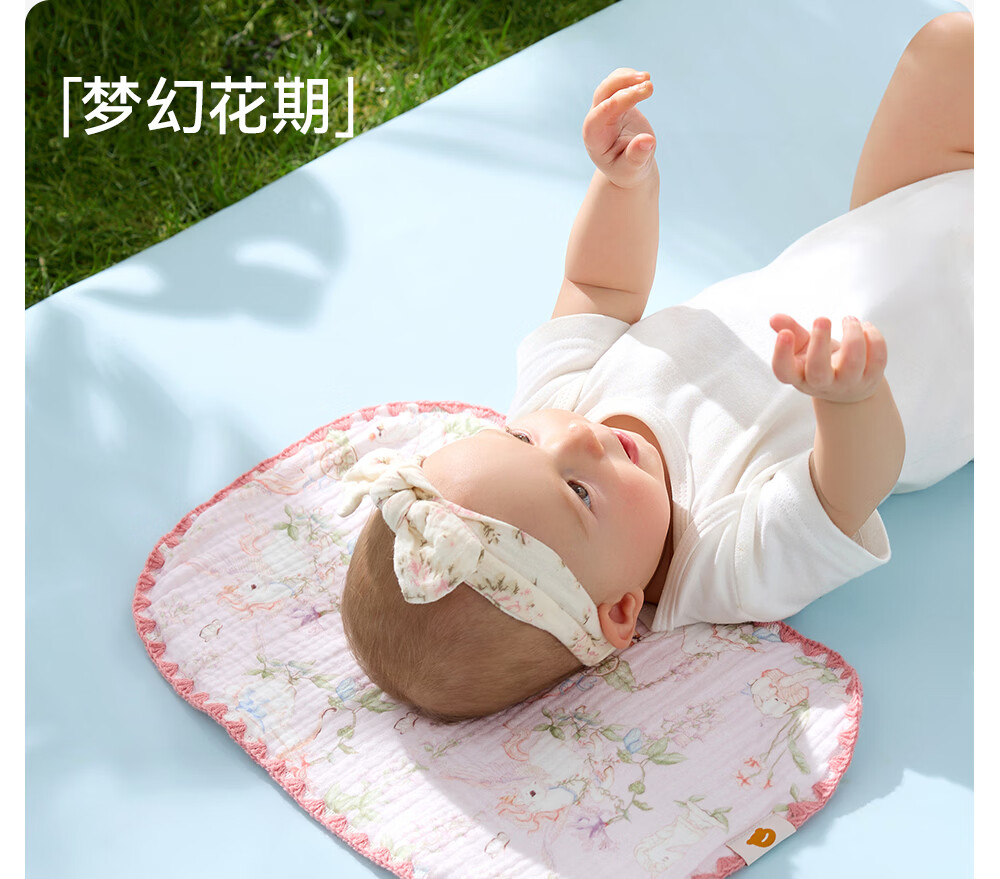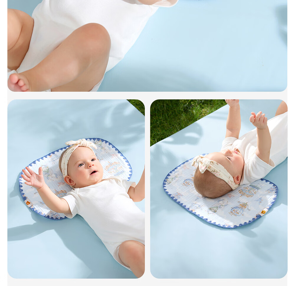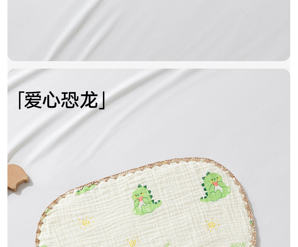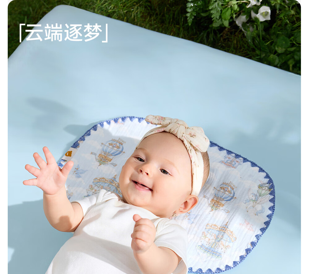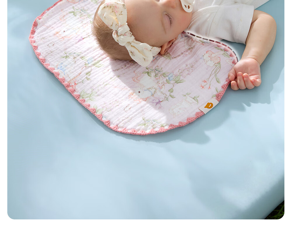 贝肽斯新生儿云片枕头婴儿春秋0到6个月宝宝吸汗透气纯棉纱布枕巾 爱心恐龙【10A抗菌,10层纱布】