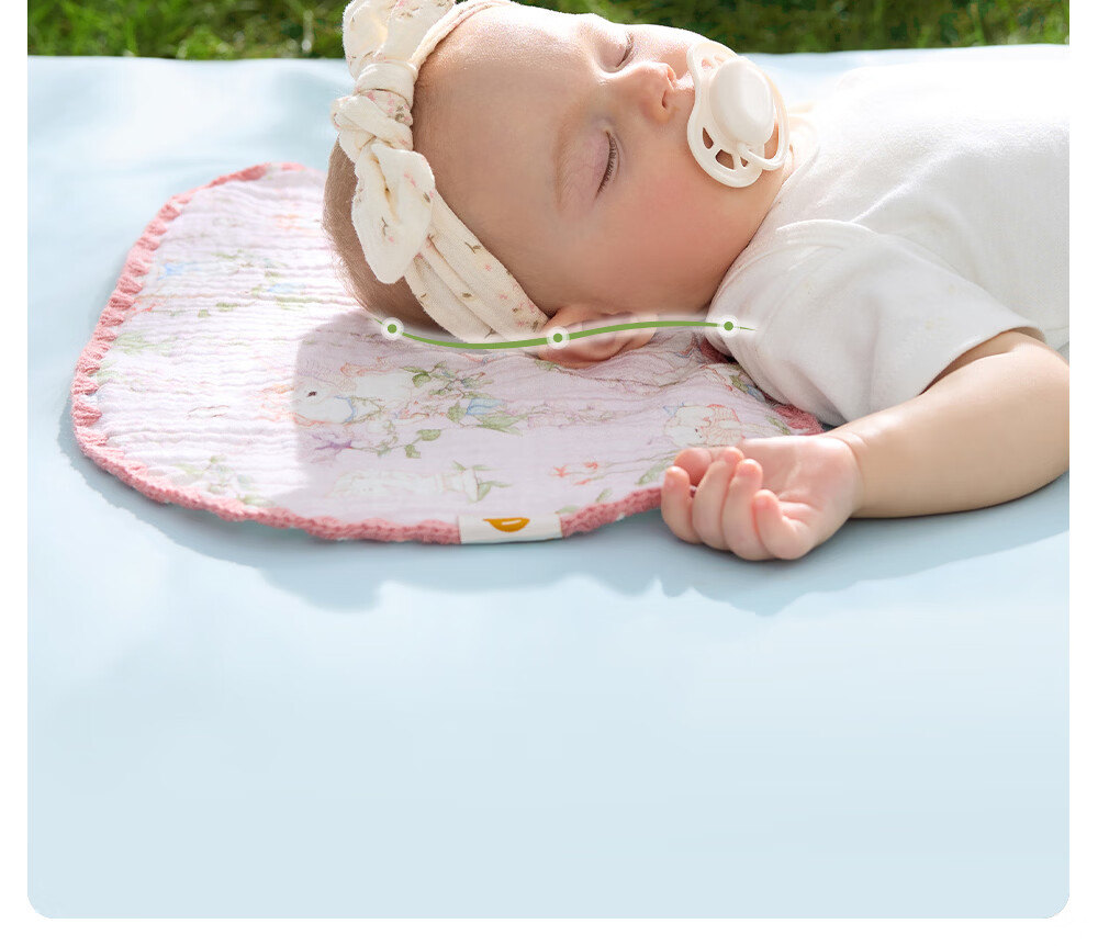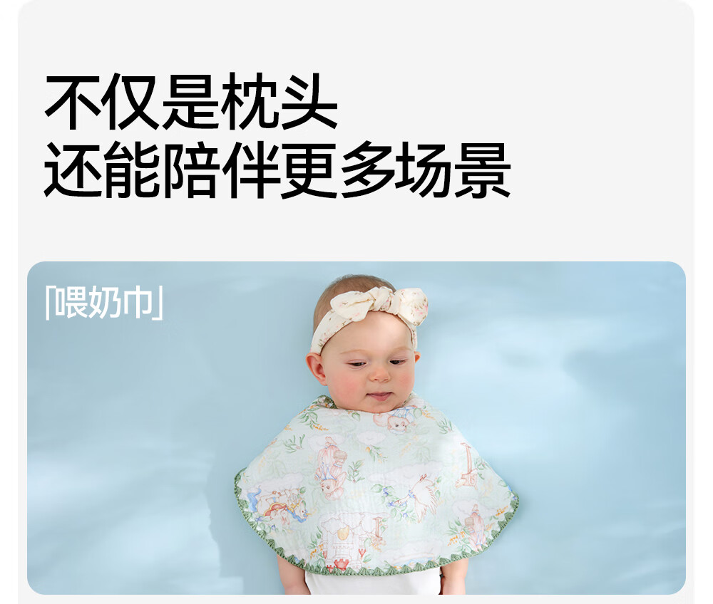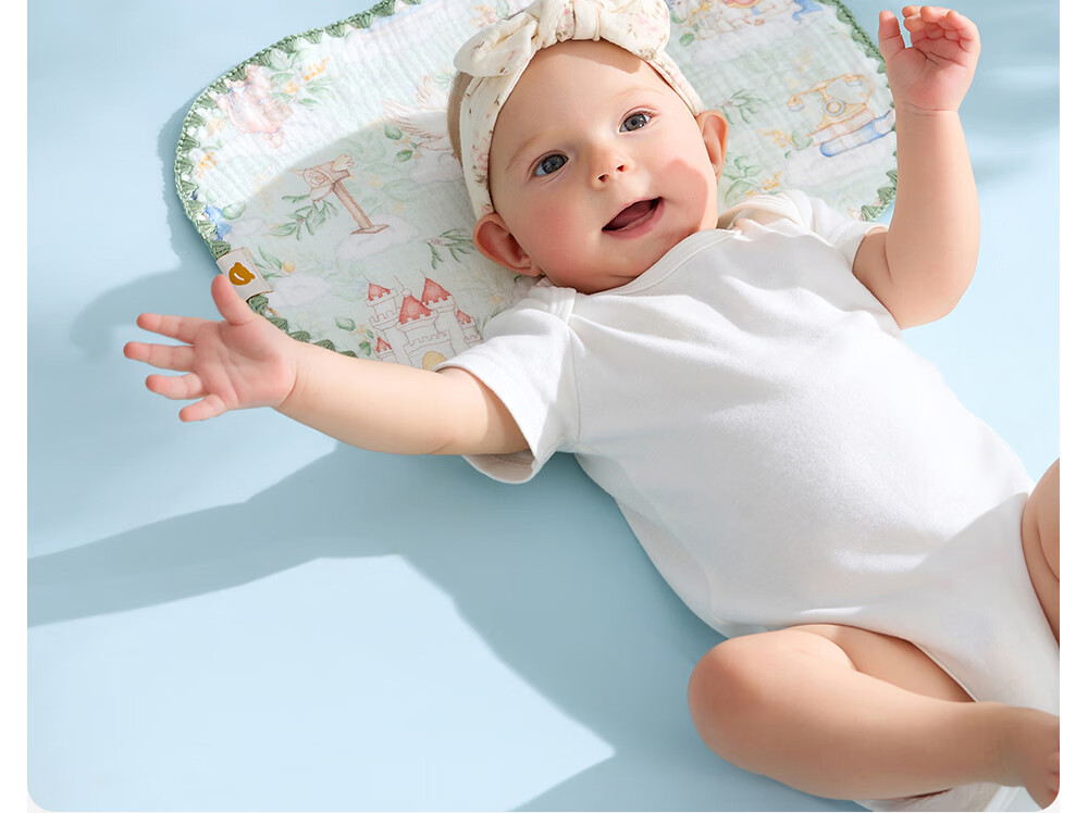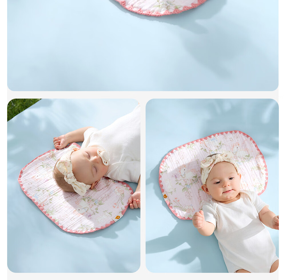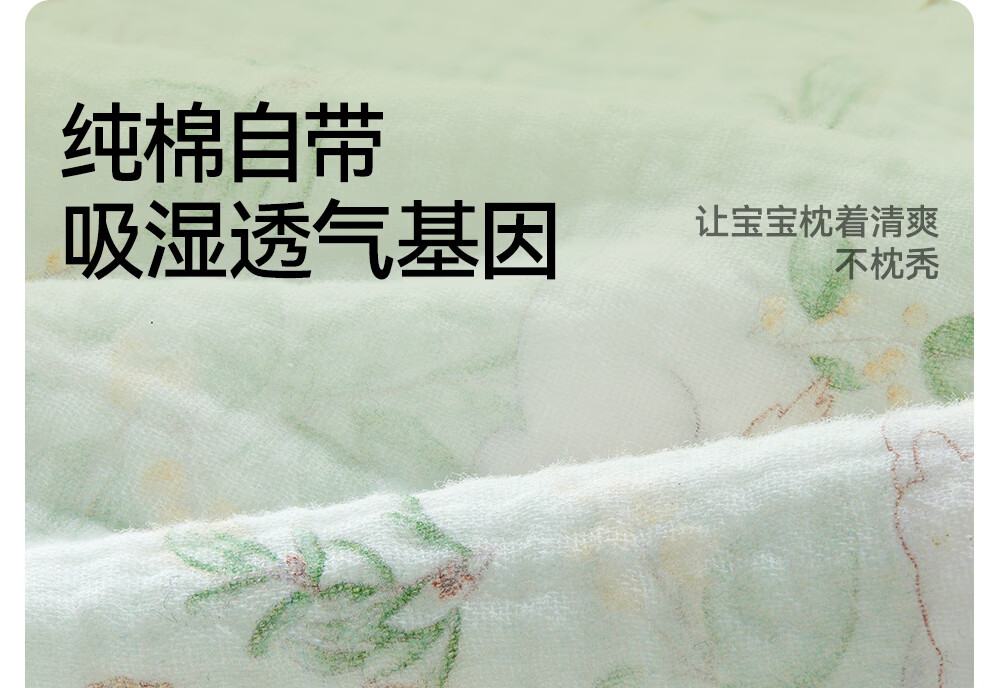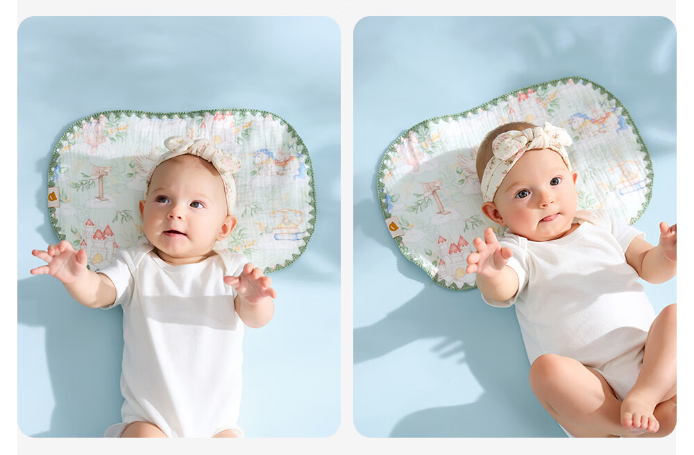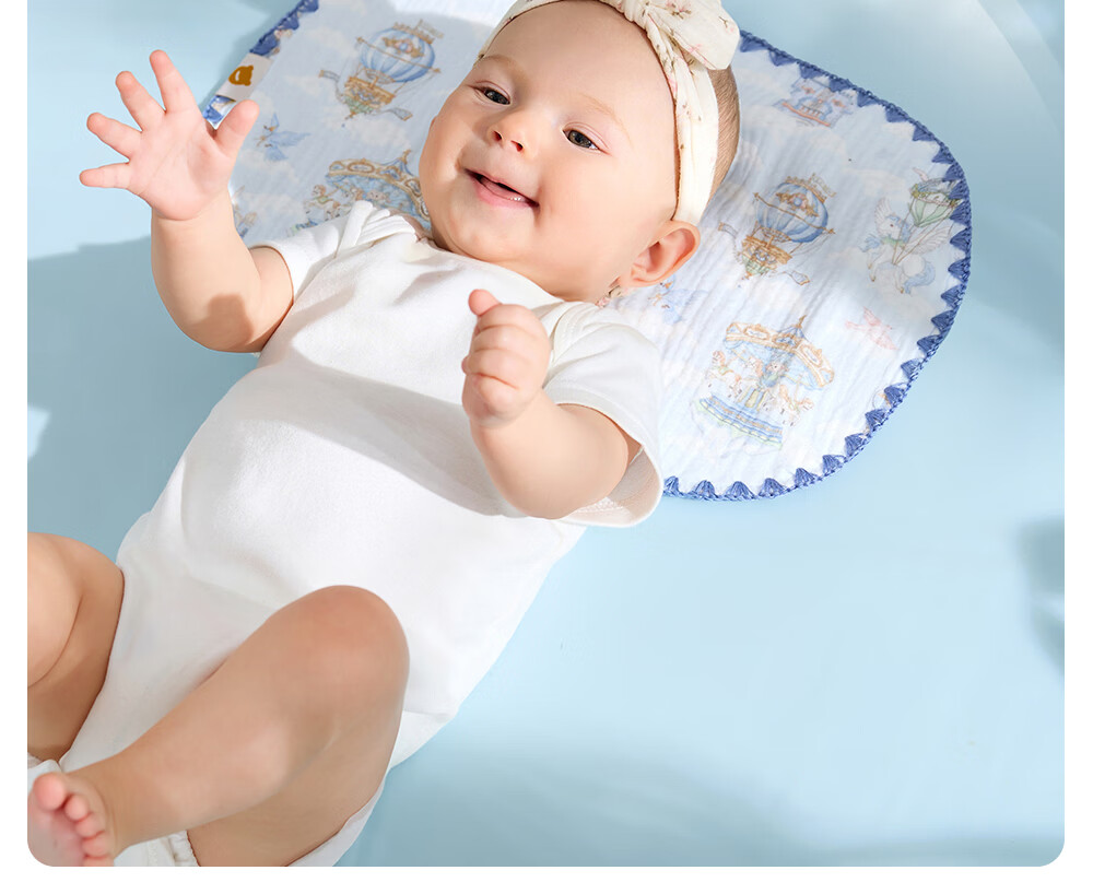 贝肽斯新生儿云片枕头婴儿春秋0到6个月宝宝吸汗透气纯棉纱布枕巾 爱心恐龙【10A抗菌,10层纱布】